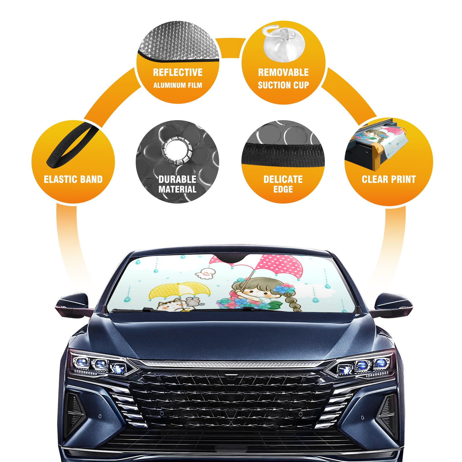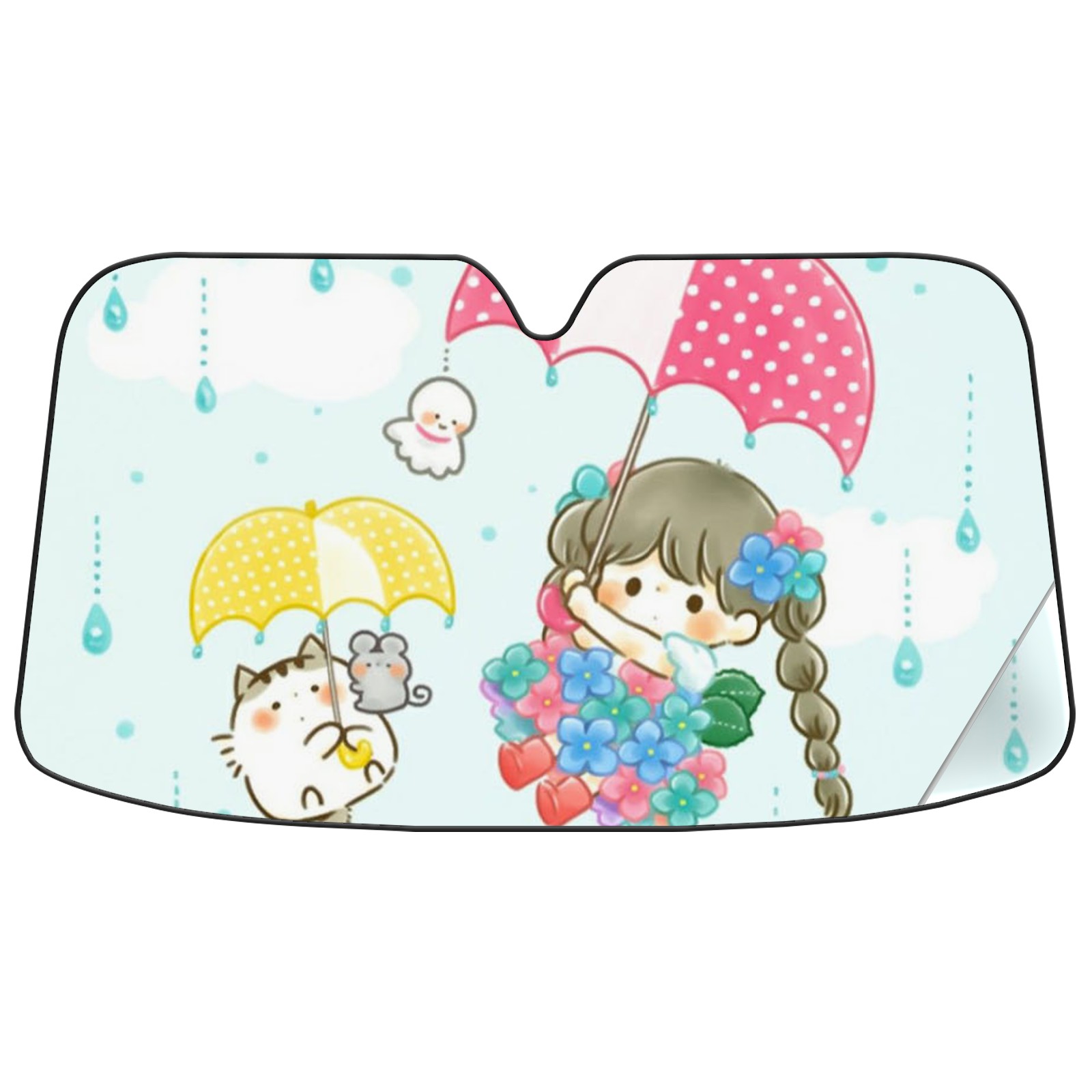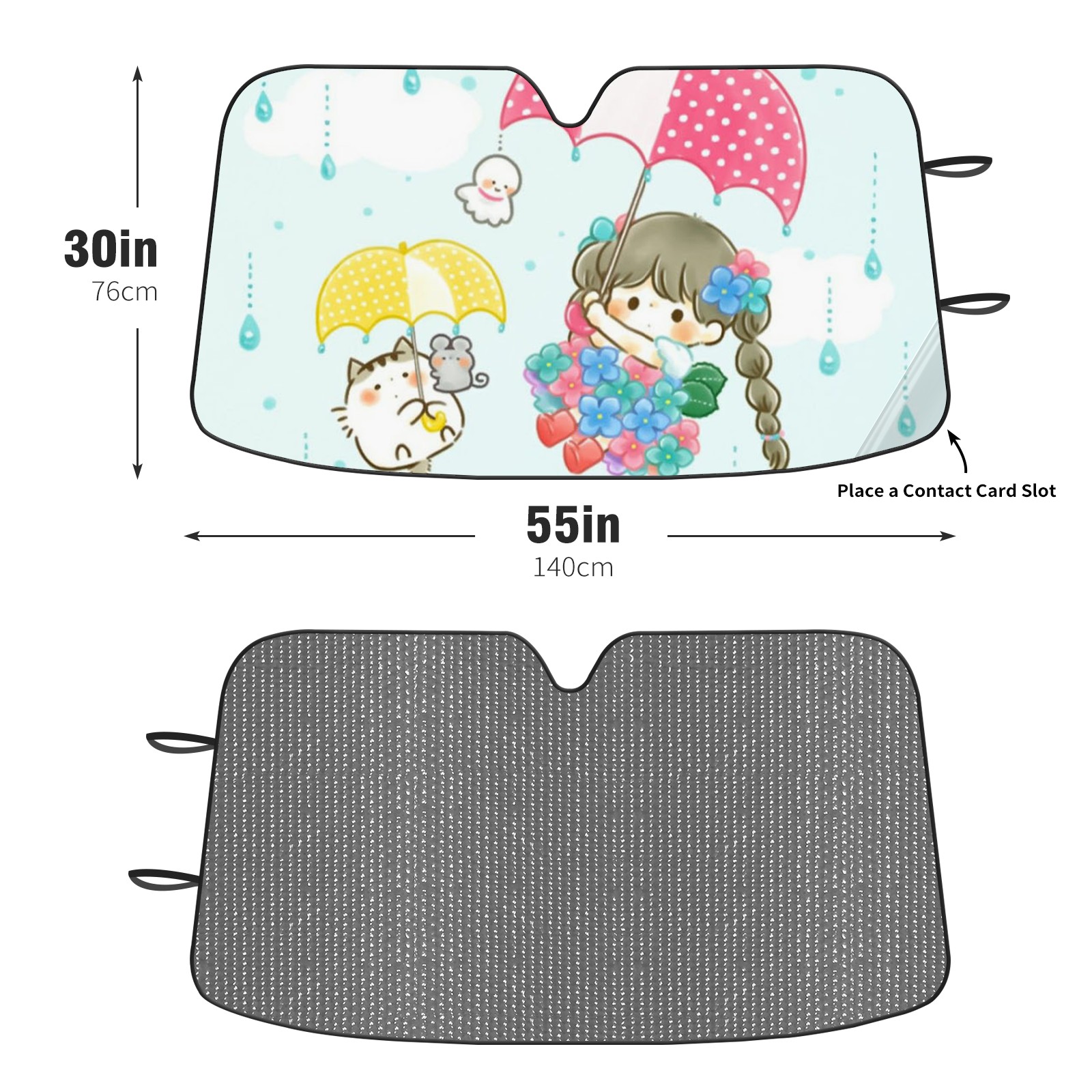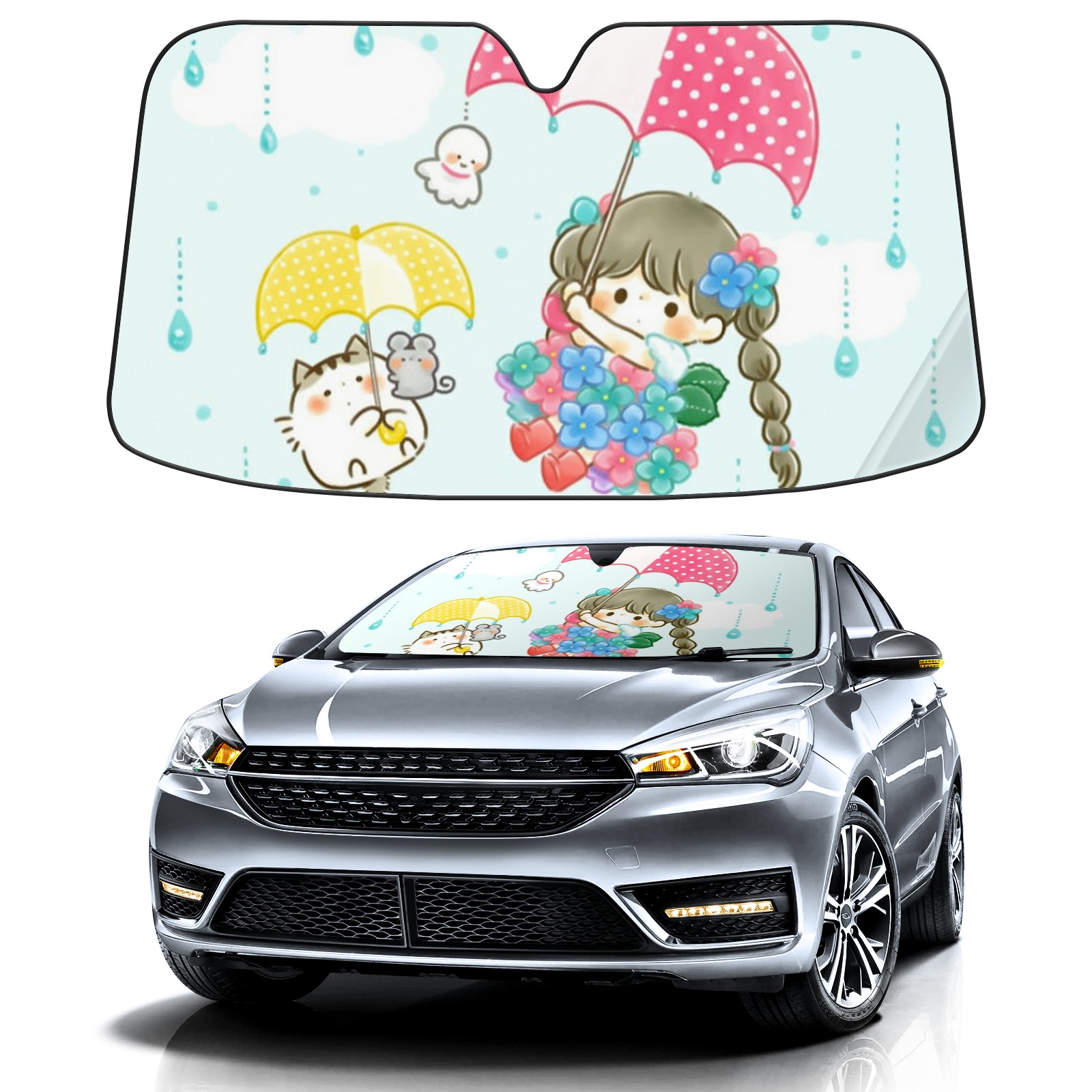 Car Windshield Sun Shade For Front Window Little Girl And Little Cat Holding Umbrella Foldable Vehicle Windshield Car Sun Visor Covers Automotive Window Protector Car Camping Privacy Sun Blocker