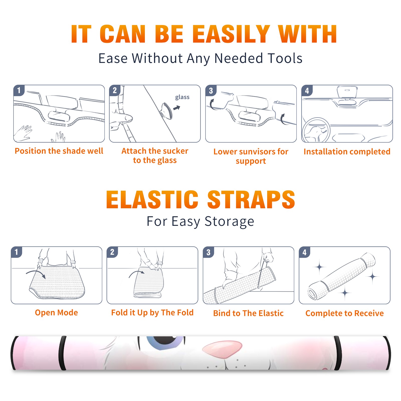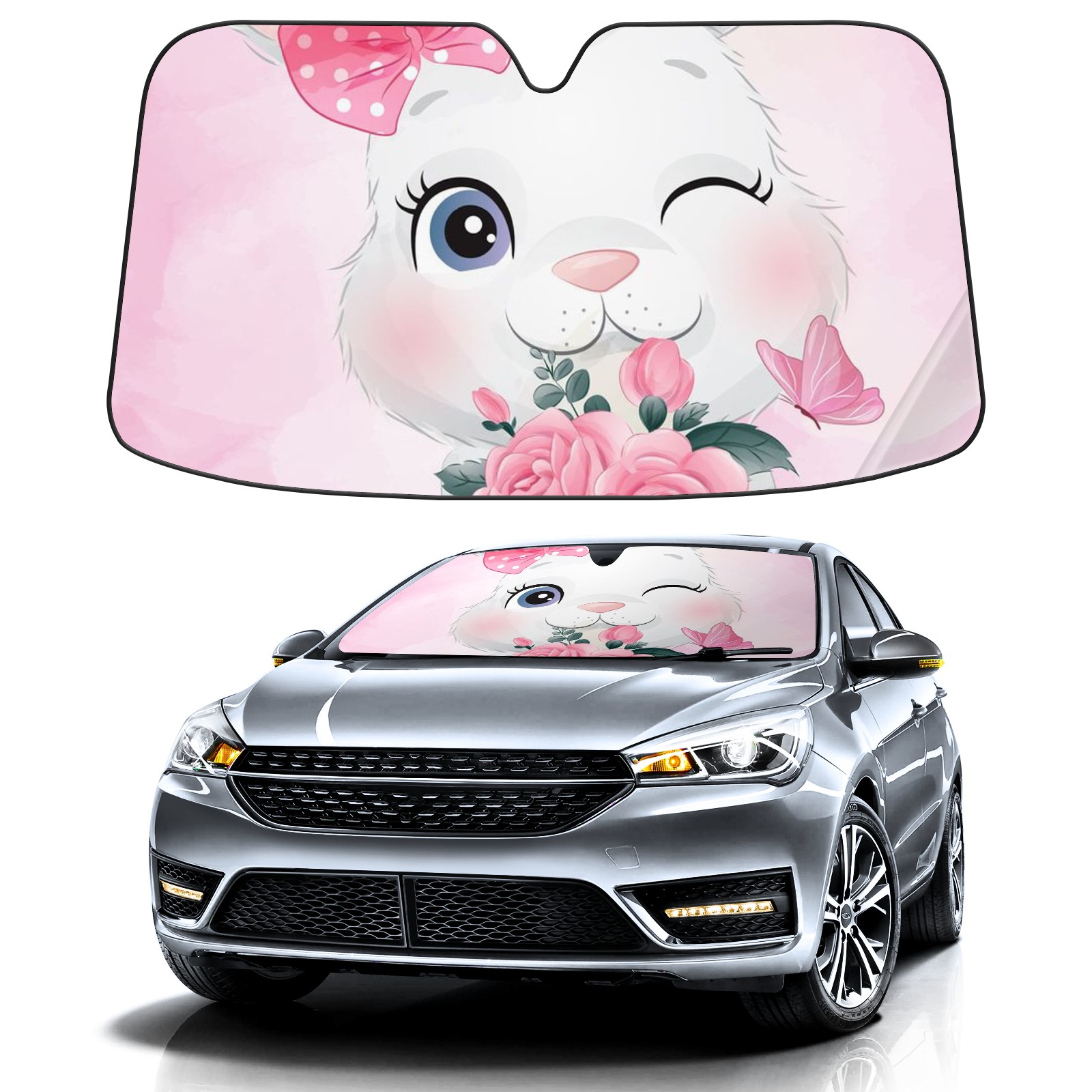 Car Windshield Sun Shade For Front Window Cute Bunny Girl Foldable Vehicle Windshield Car Sun Visor Covers Automotive Window Protector Car Camping Privacy Sun Blocker