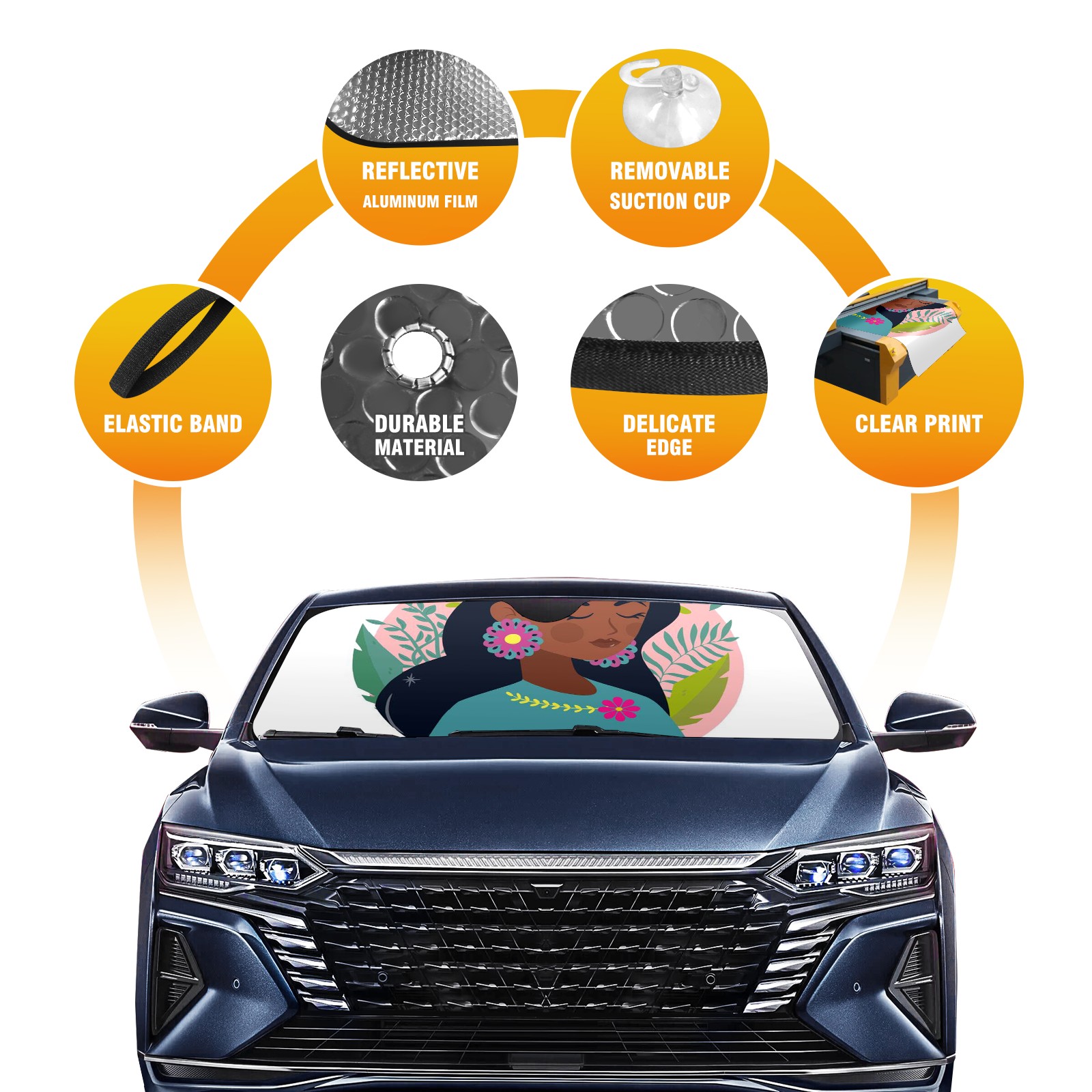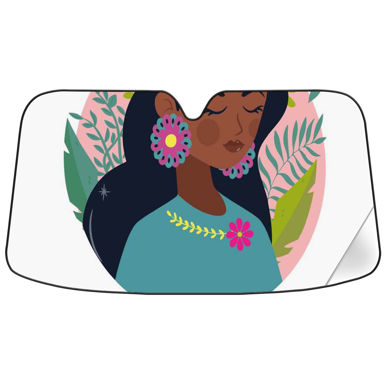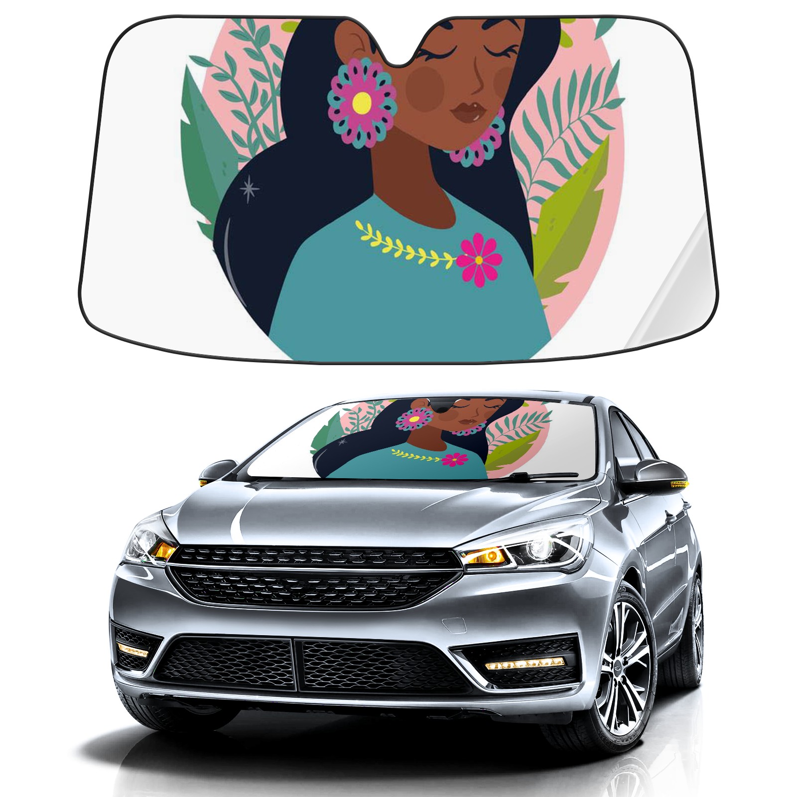 Car Windshield Sun Shade For Front Window African Girl Art Foldable Vehicle Windshield Car Sun Visor Covers Automotive Window Protector Car Camping Privacy Sun Blocker