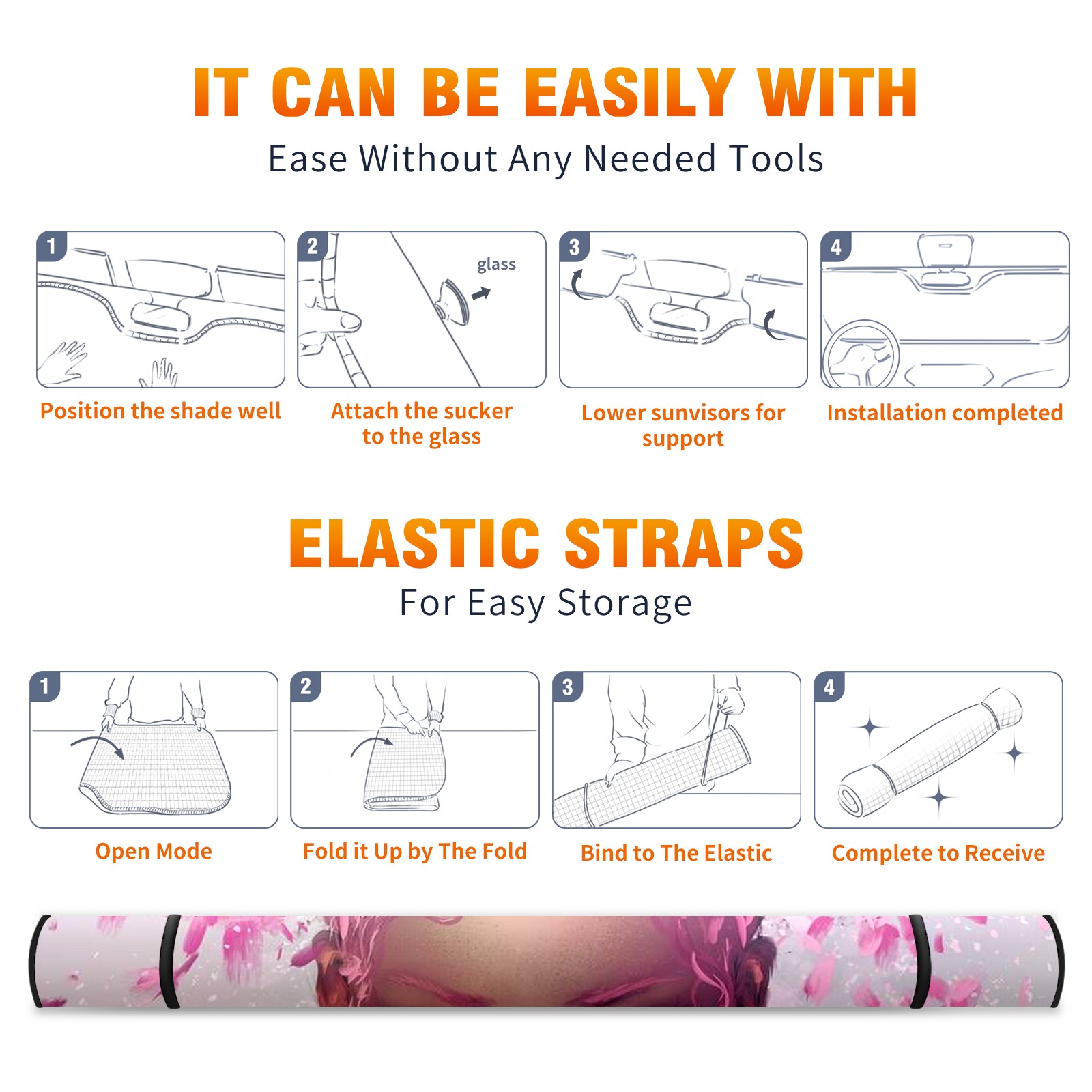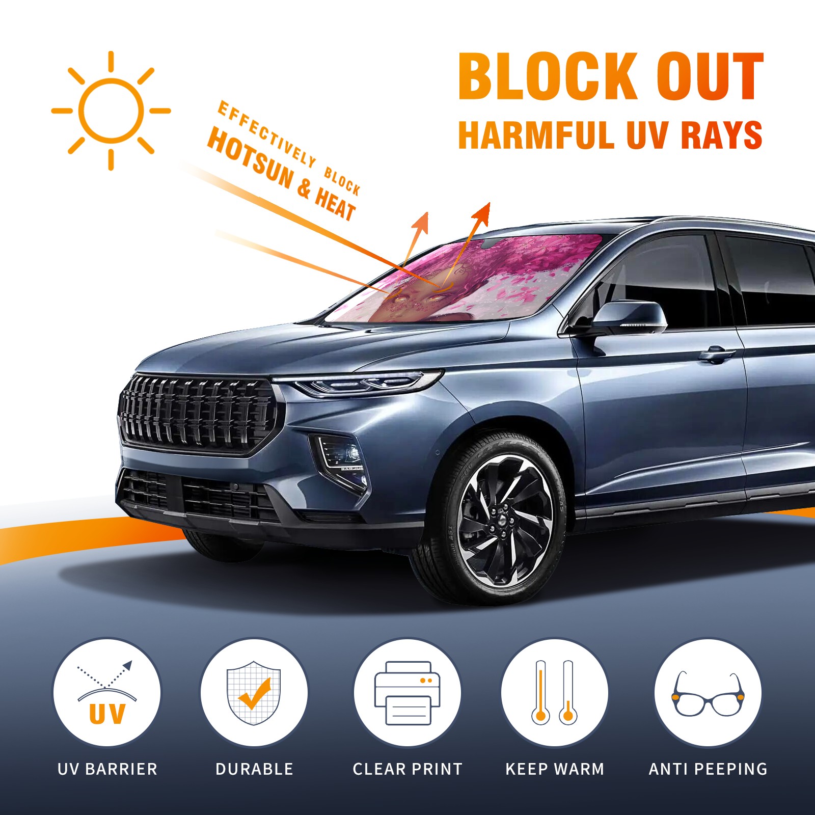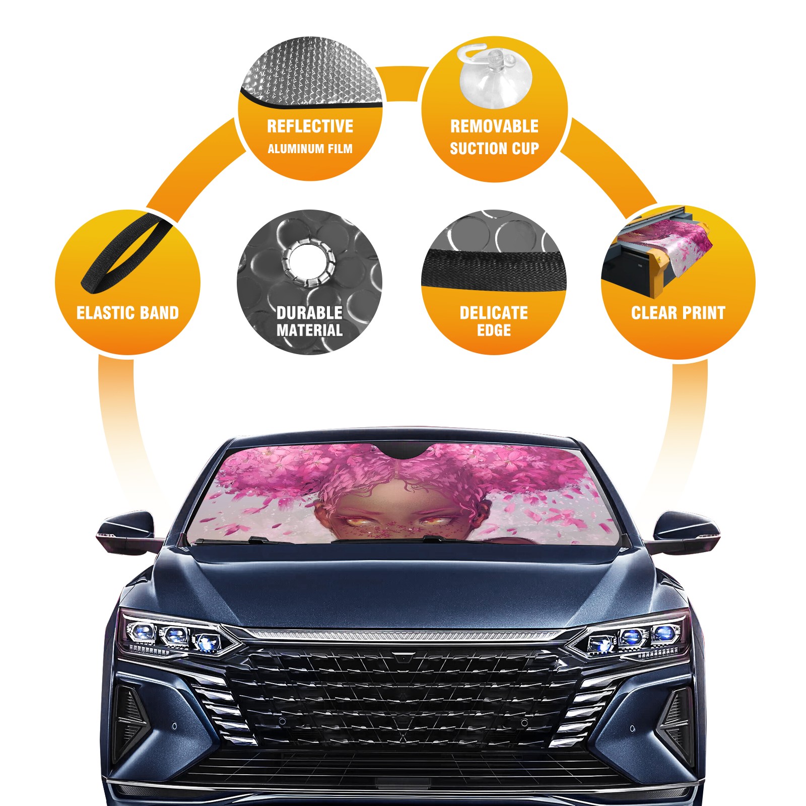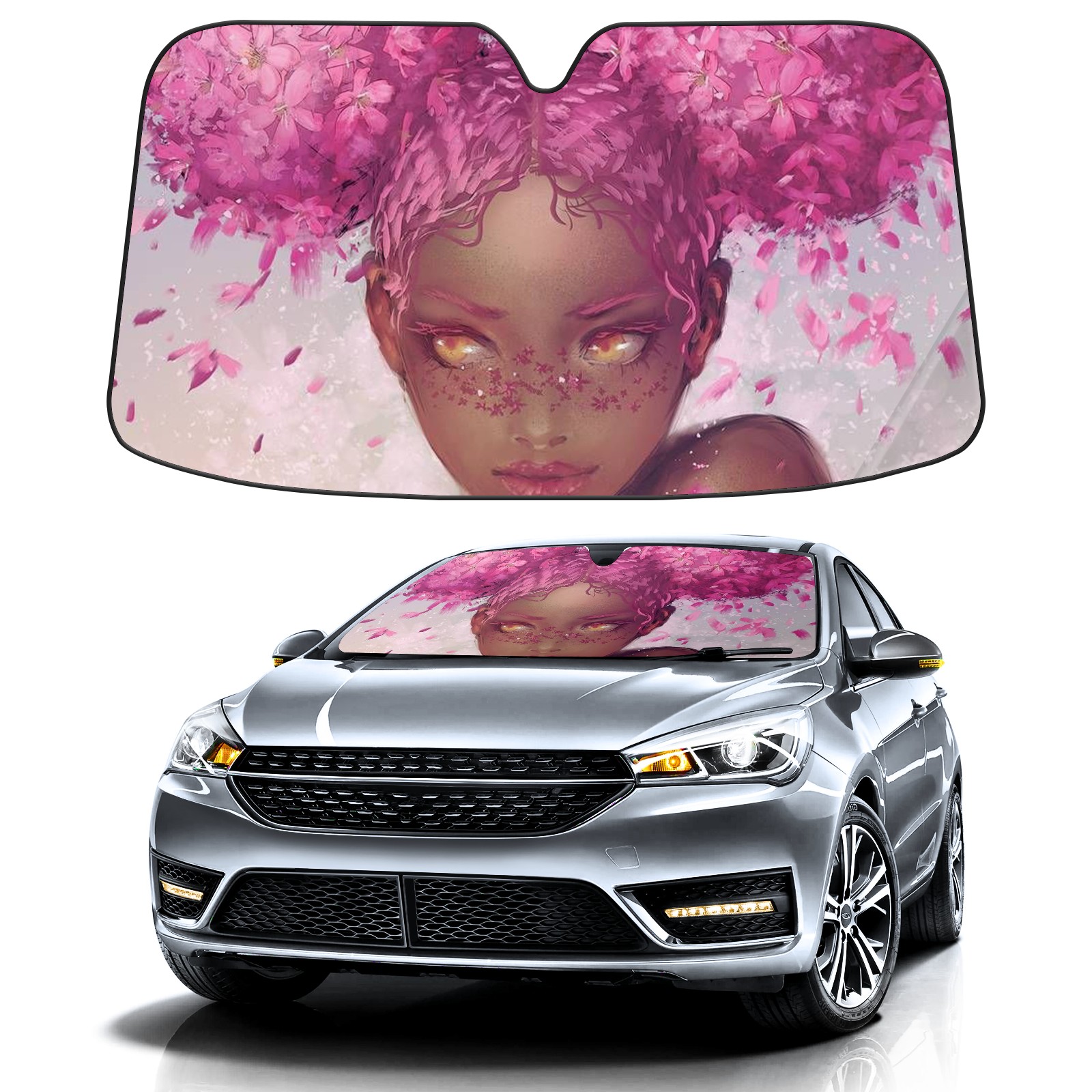 Car Windshield Sun Shade For Front Window Pink Flower Girl Foldable Vehicle Windshield Car Sun Visor Covers Automotive Window Protector Car Camping Privacy Sun Blocker