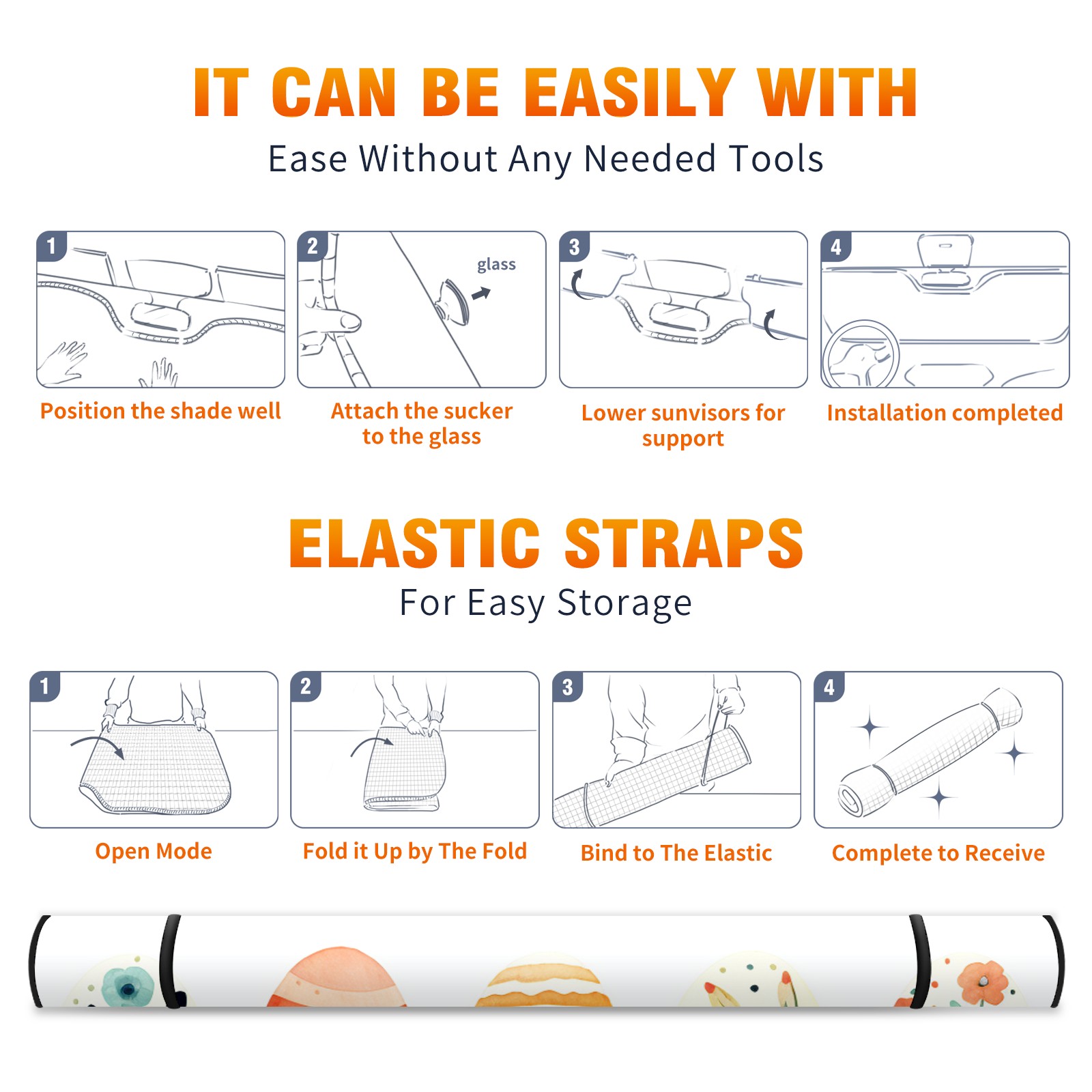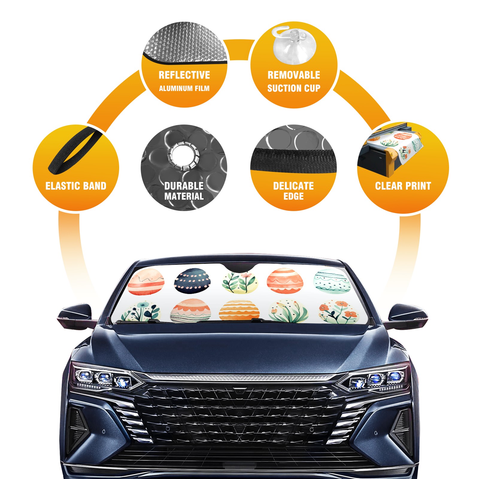 Car Windshield Sun Shade For Front Window Adorable Easter Eggs Foldable Vehicle Windshield Car Sun Visor Covers Automotive Window Protector Car Camping Privacy Sun Blocker