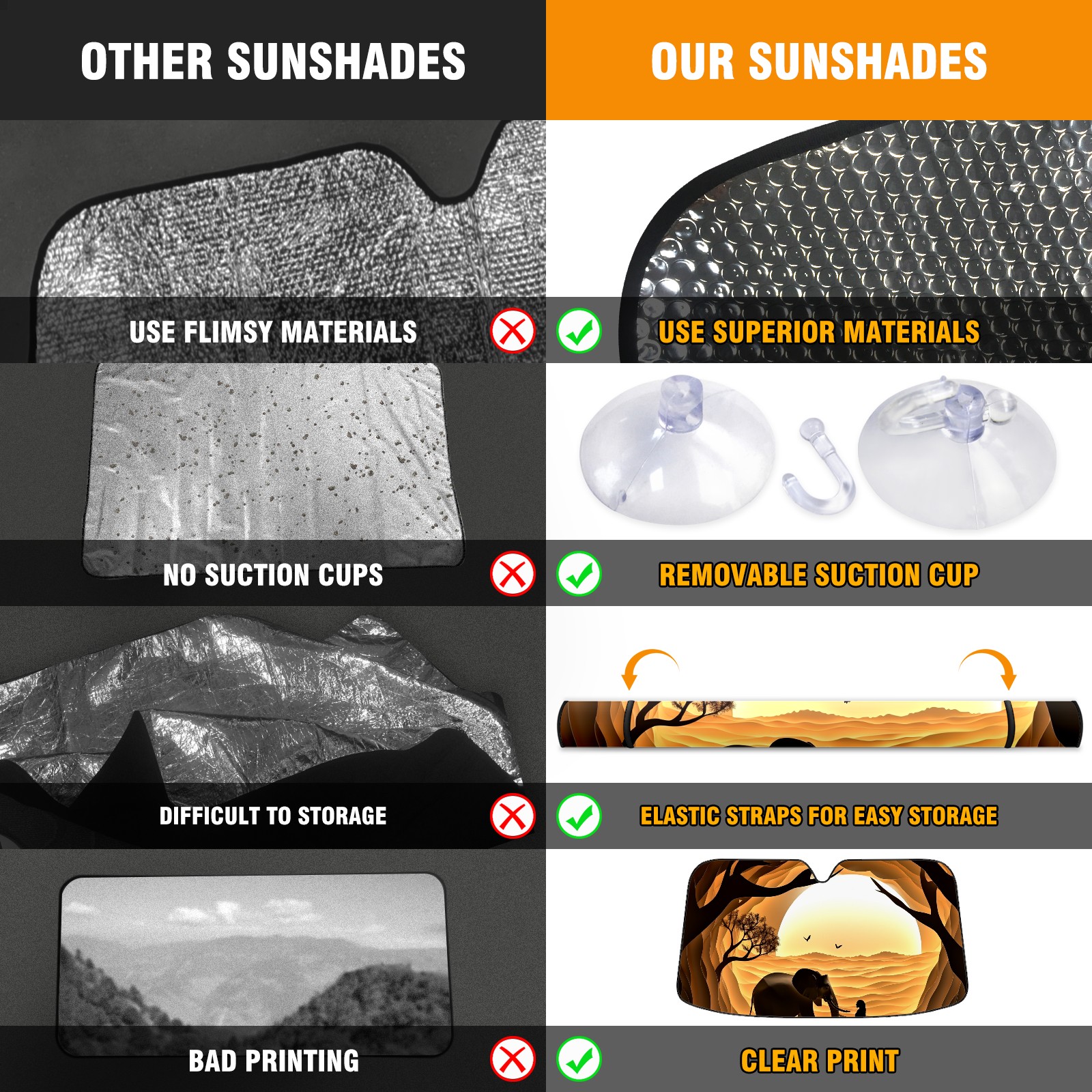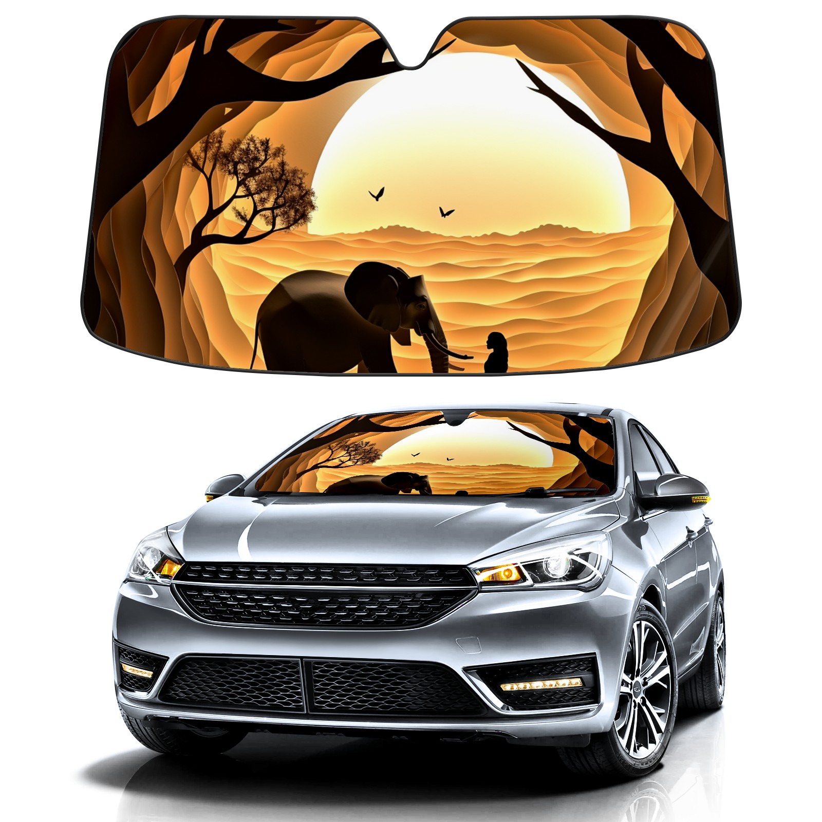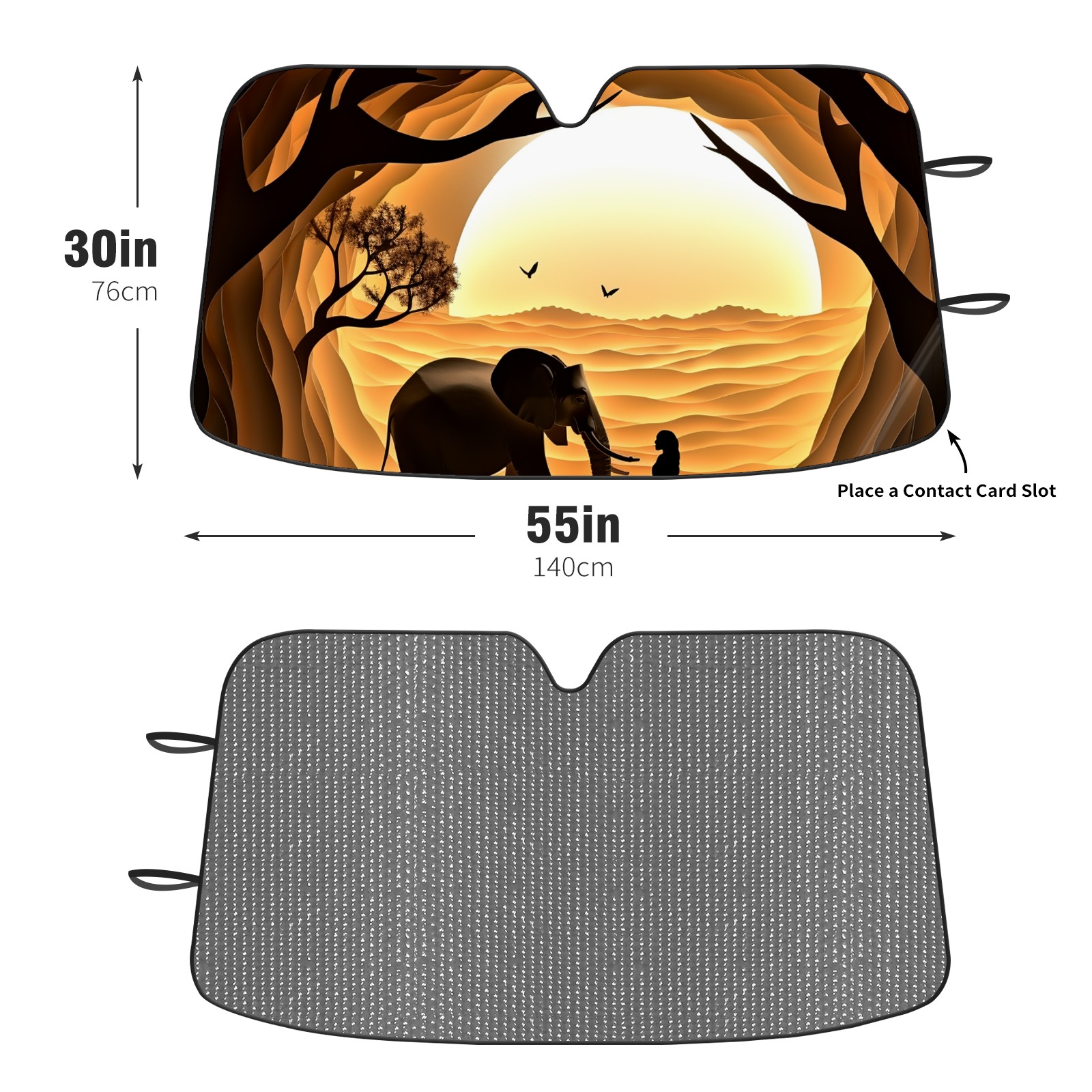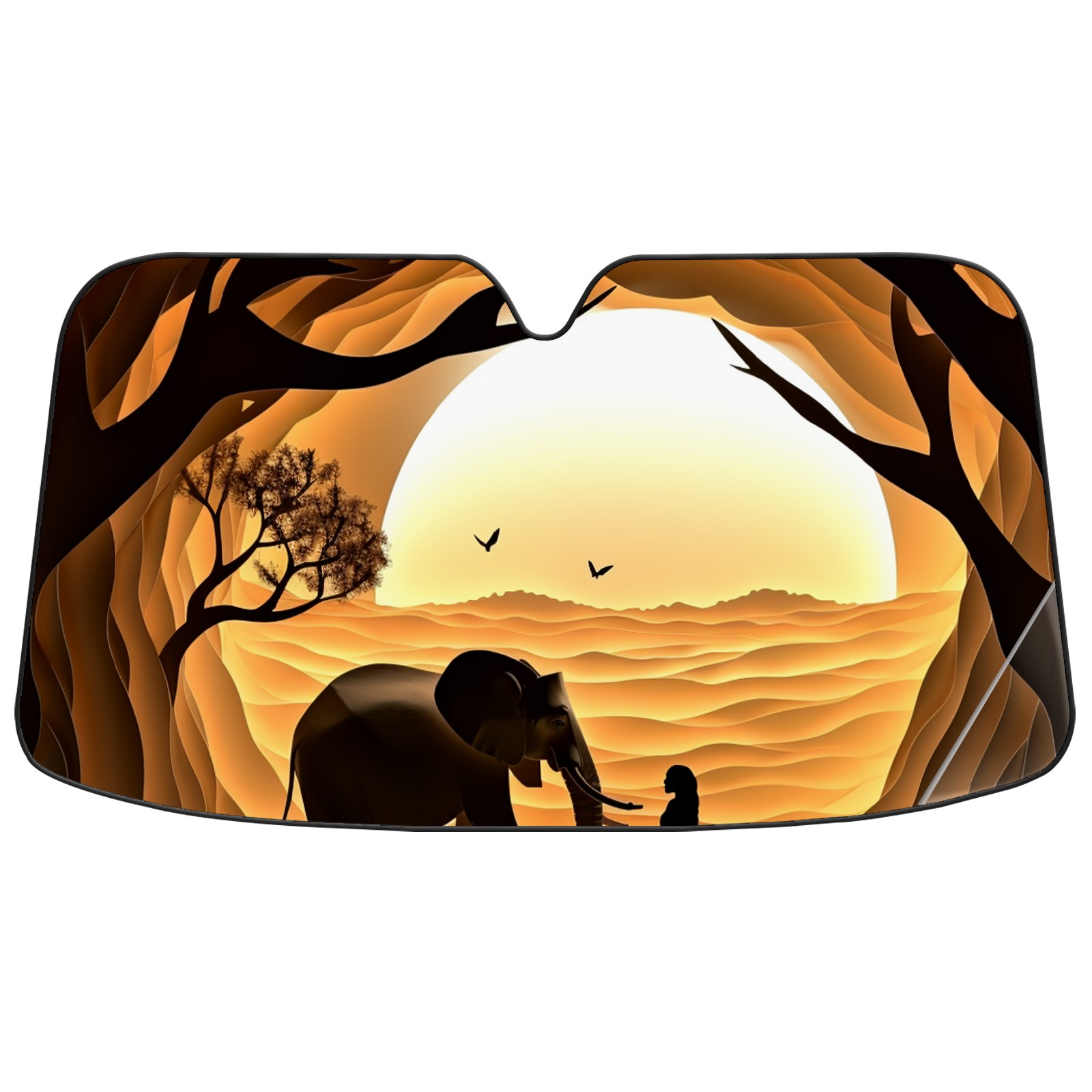 Car Windshield Sun Shade For Front Window Silhouette Paper Sculpture Elephant Foldable Vehicle Windshield Car Sun Visor Covers Automotive Window Protector Car Camping Privacy Sun Blocker