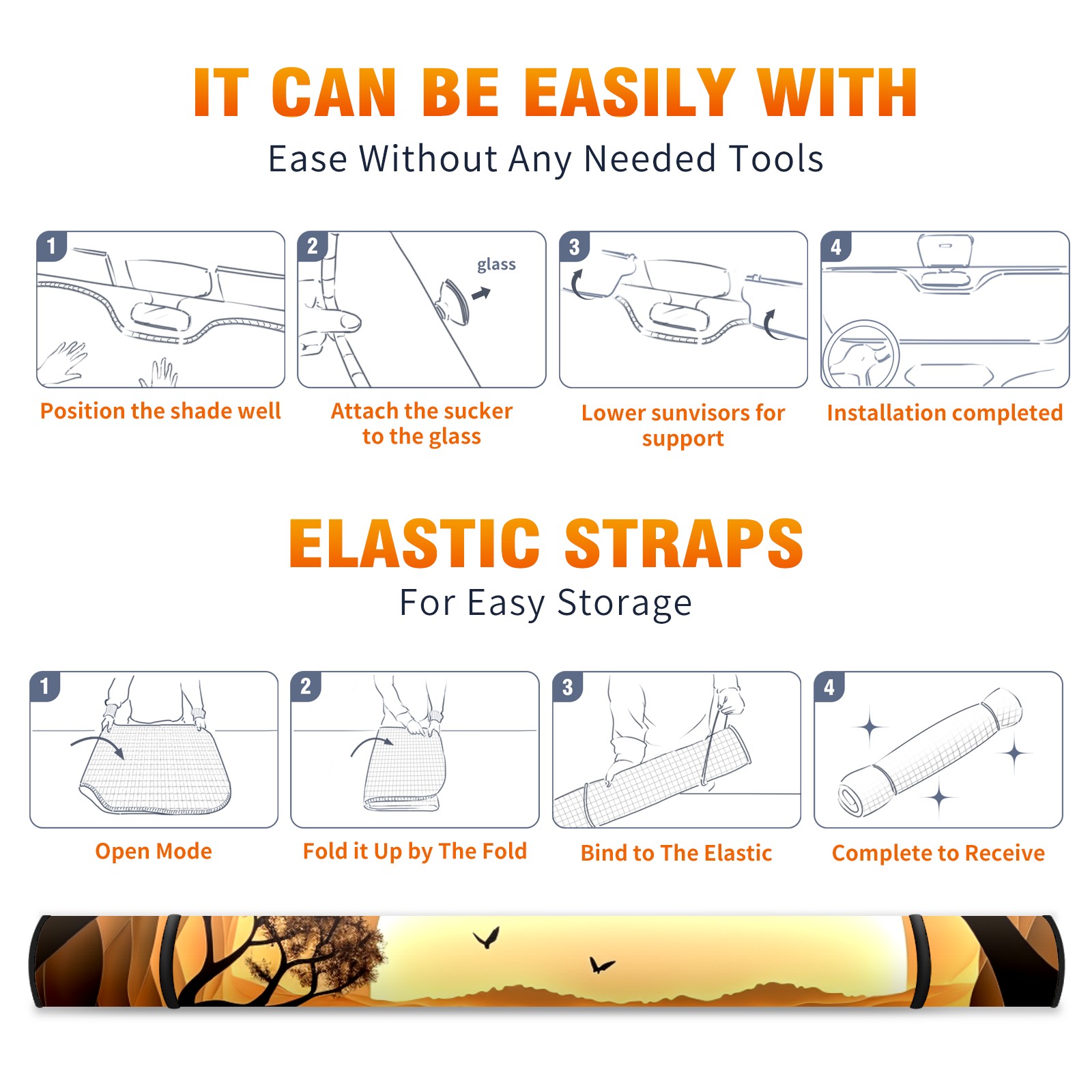 • Diameter /Size 63"L x 33.5"W Made from excellent materials which makes it sturdy and protects the car from the sun. Easy to use and pack. Makes the interior of the car cooler.You can easily stash the sunshade in the storage bag or store long term.It open and closes easy. Also the leather storage bag is durable and easy to put the umbrella back into.This windshield sunshade provides complete coverage and keeps your car interior cool under direct sun. It is easy to open and position under the windshield and around the rear-view mirror. Makes Your Car Easy To Identify, Perfect For Finding Your Car In Crowded Parking Lots And Garages.Great Choice: It Is A Great Gift For Dad, Boyfriend, Brother, Brother And Uncle, Friends, Classmates, Family And So On. Notice: Due To Difference Computer Monitors, The Color Maybe Slightly Different From Picture. As Different Measurement Methods, Measurement Data Will Float Within 2%.I Hope You Understand. If You Have Any Question About The Item Please Do Not Hesitate To Contact Us Immediately And We Will Give You A Satisfactory Reply Within 24 Hours.