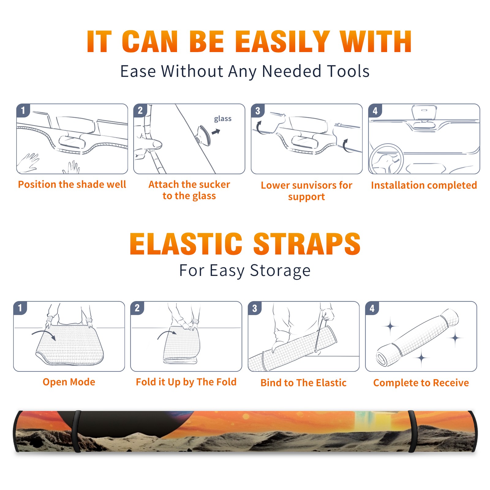 • Diameter /Size 63"L x 33.5"W Made from excellent materials which makes it sturdy and protects the car from the sun. Easy to use and pack. Makes the interior of the car cooler.You can easily stash the sunshade in the storage bag or store long term.It open and closes easy. Also the leather storage bag is durable and easy to put the umbrella back into.This windshield sunshade provides complete coverage and keeps your car interior cool under direct sun. It is easy to open and position under the windshield and around the rear-view mirror. Makes Your Car Easy To Identify, Perfect For Finding Your Car In Crowded Parking Lots And Garages.Great Choice: It Is A Great Gift For Dad, Boyfriend, Brother, Brother And Uncle, Friends, Classmates, Family And So On. Notice: Due To Difference Computer Monitors, The Color Maybe Slightly Different From Picture. As Different Measurement Methods, Measurement Data Will Float Within 2%.I Hope You Understand. If You Have Any Question About The Item Please Do Not Hesitate To Contact Us Immediately And We Will Give You A Satisfactory Reply Within 24 Hours.