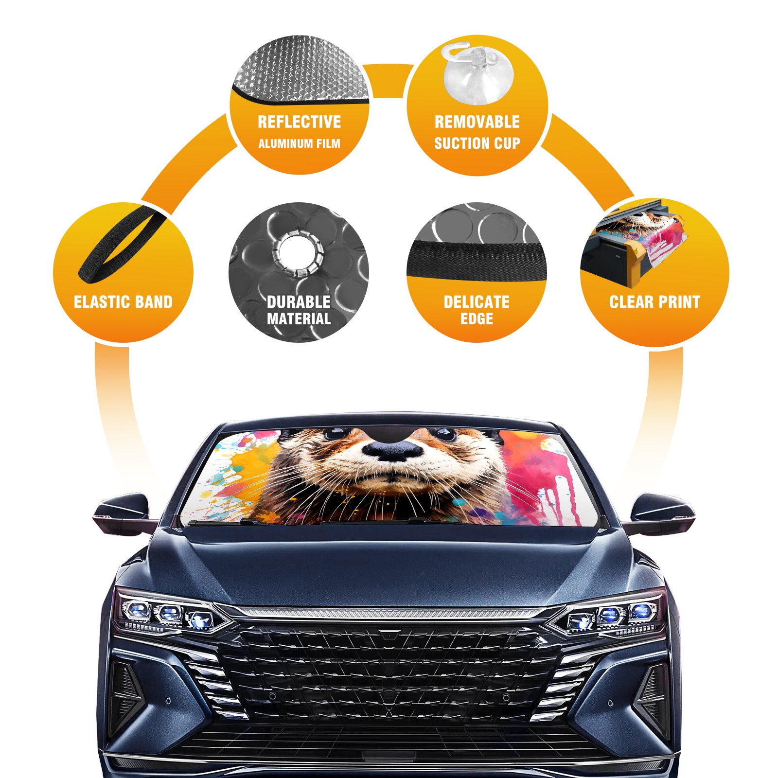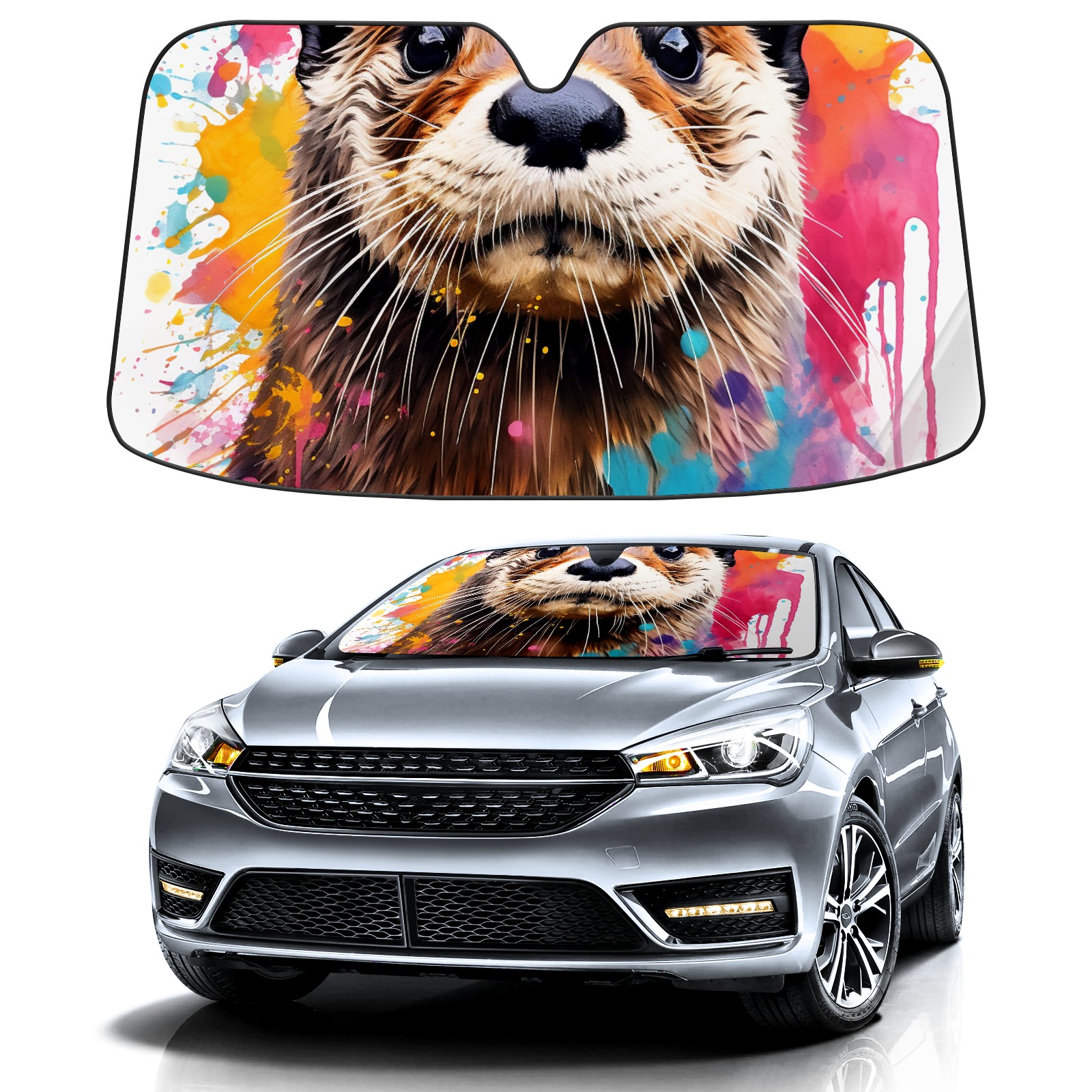 Car Windshield Sun Shade For Front Window Otter Foldable Vehicle Windshield Car Sun Visor Covers Automotive Window Protector Car Camping Privacy Sun Blocker