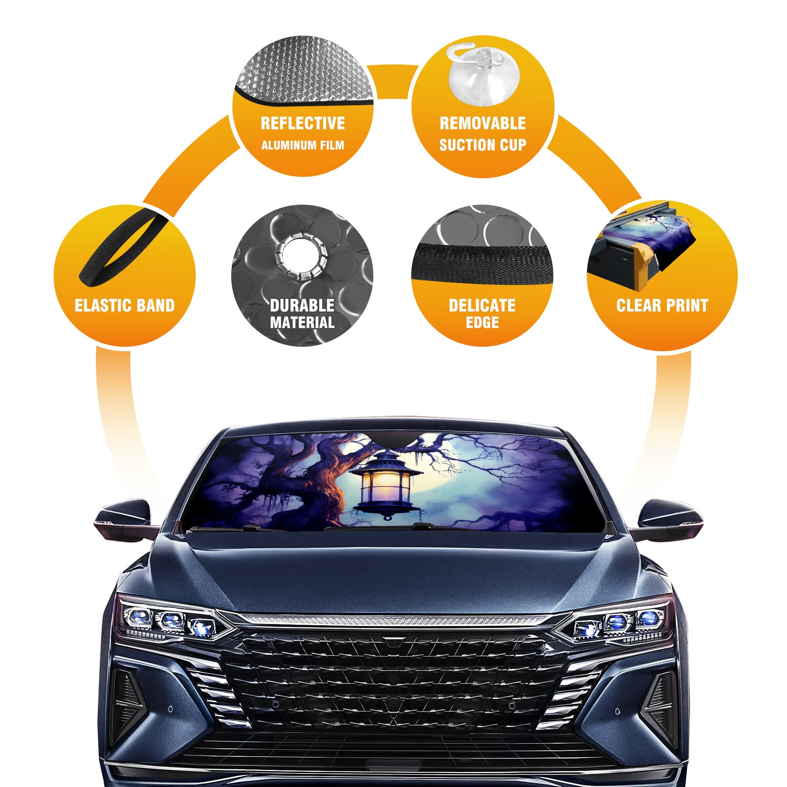• Diameter /Size 63"L x 33.5"W Made from excellent materials which makes it sturdy and protects the car from the sun. Easy to use and pack. Makes the interior of the car cooler.You can easily stash the sunshade in the storage bag or store long term.It open and closes easy. Also the leather storage bag is durable and easy to put the umbrella back into.This windshield sunshade provides complete coverage and keeps your car interior cool under direct sun. It is easy to open and position under the windshield and around the rear-view mirror. Makes Your Car Easy To Identify, Perfect For Finding Your Car In Crowded Parking Lots And Garages.Great Choice: It Is A Great Gift For Dad, Boyfriend, Brother, Brother And Uncle, Friends, Classmates, Family And So On. Notice: Due To Difference Computer Monitors, The Color Maybe Slightly Different From Picture. As Different Measurement Methods, Measurement Data Will Float Within 2%.I Hope You Understand. If You Have Any Question About The Item Please Do Not Hesitate To Contact Us Immediately And We Will Give You A Satisfactory Reply Within 24 Hours.