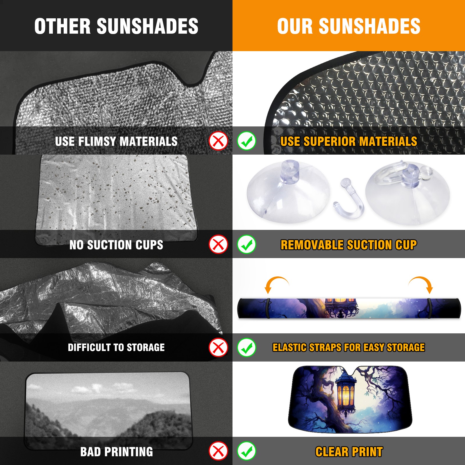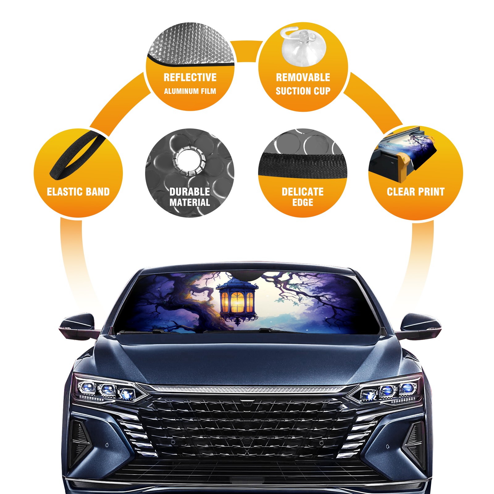 • Diameter /Size 63"L x 33.5"W Made from excellent materials which makes it sturdy and protects the car from the sun. Easy to use and pack. Makes the interior of the car cooler.You can easily stash the sunshade in the storage bag or store long term.It open and closes easy. Also the leather storage bag is durable and easy to put the umbrella back into.This windshield sunshade provides complete coverage and keeps your car interior cool under direct sun. It is easy to open and position under the windshield and around the rear-view mirror. Makes Your Car Easy To Identify, Perfect For Finding Your Car In Crowded Parking Lots And Garages.Great Choice: It Is A Great Gift For Dad, Boyfriend, Brother, Brother And Uncle, Friends, Classmates, Family And So On. Notice: Due To Difference Computer Monitors, The Color Maybe Slightly Different From Picture. As Different Measurement Methods, Measurement Data Will Float Within 2%.I Hope You Understand. If You Have Any Question About The Item Please Do Not Hesitate To Contact Us Immediately And We Will Give You A Satisfactory Reply Within 24 Hours.
