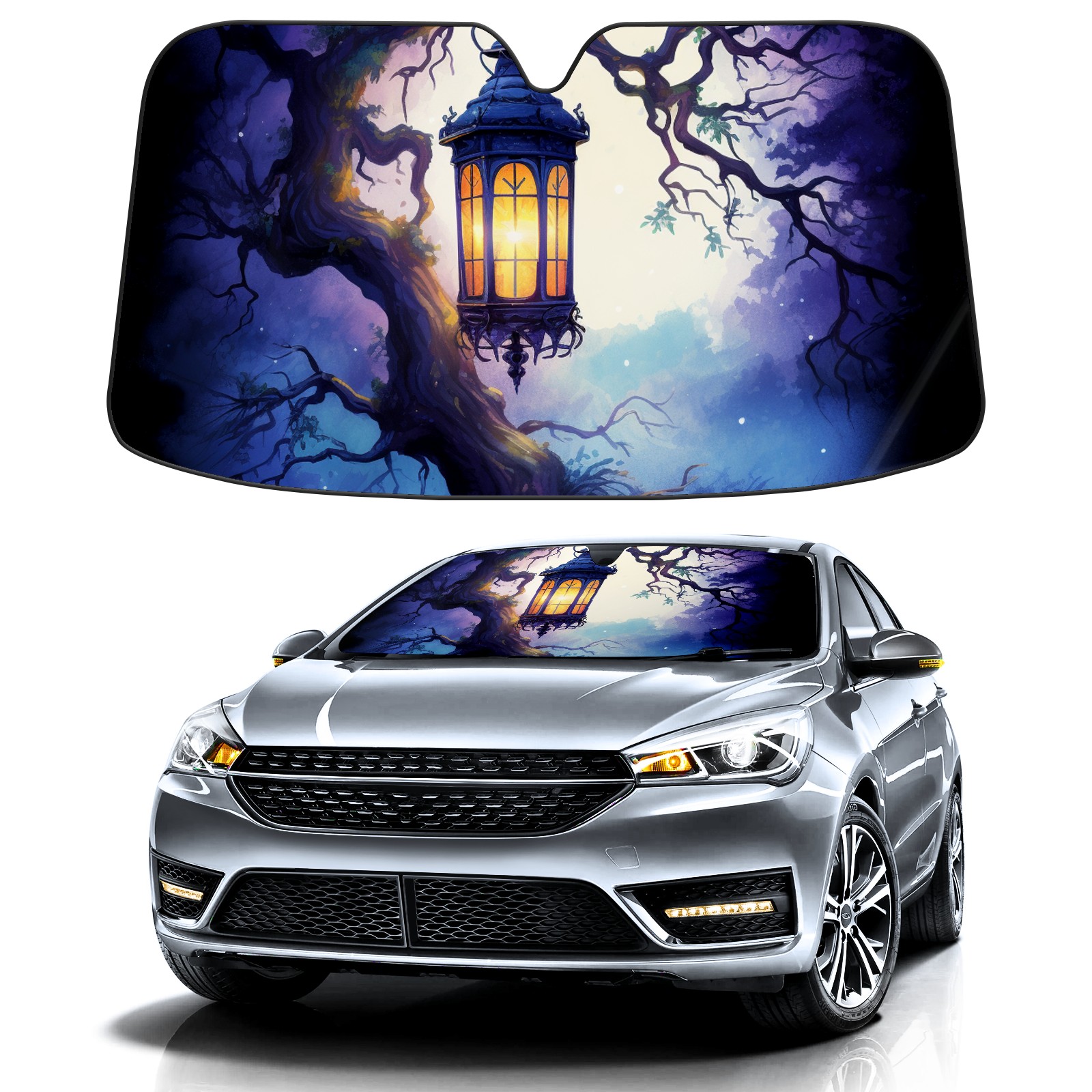 Car Windshield Sun Shade For Front Window Magic Tree 2 Foldable Vehicle Windshield Car Sun Visor Covers Automotive Window Protector Car Camping Privacy Sun Blocker