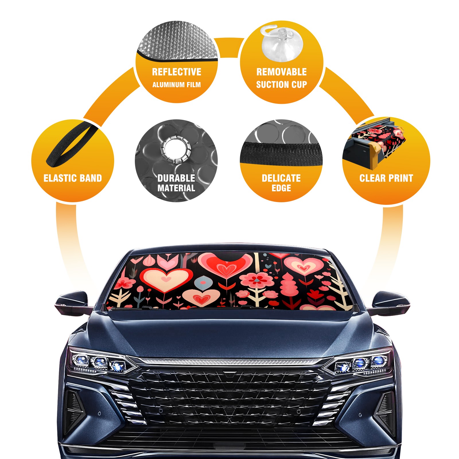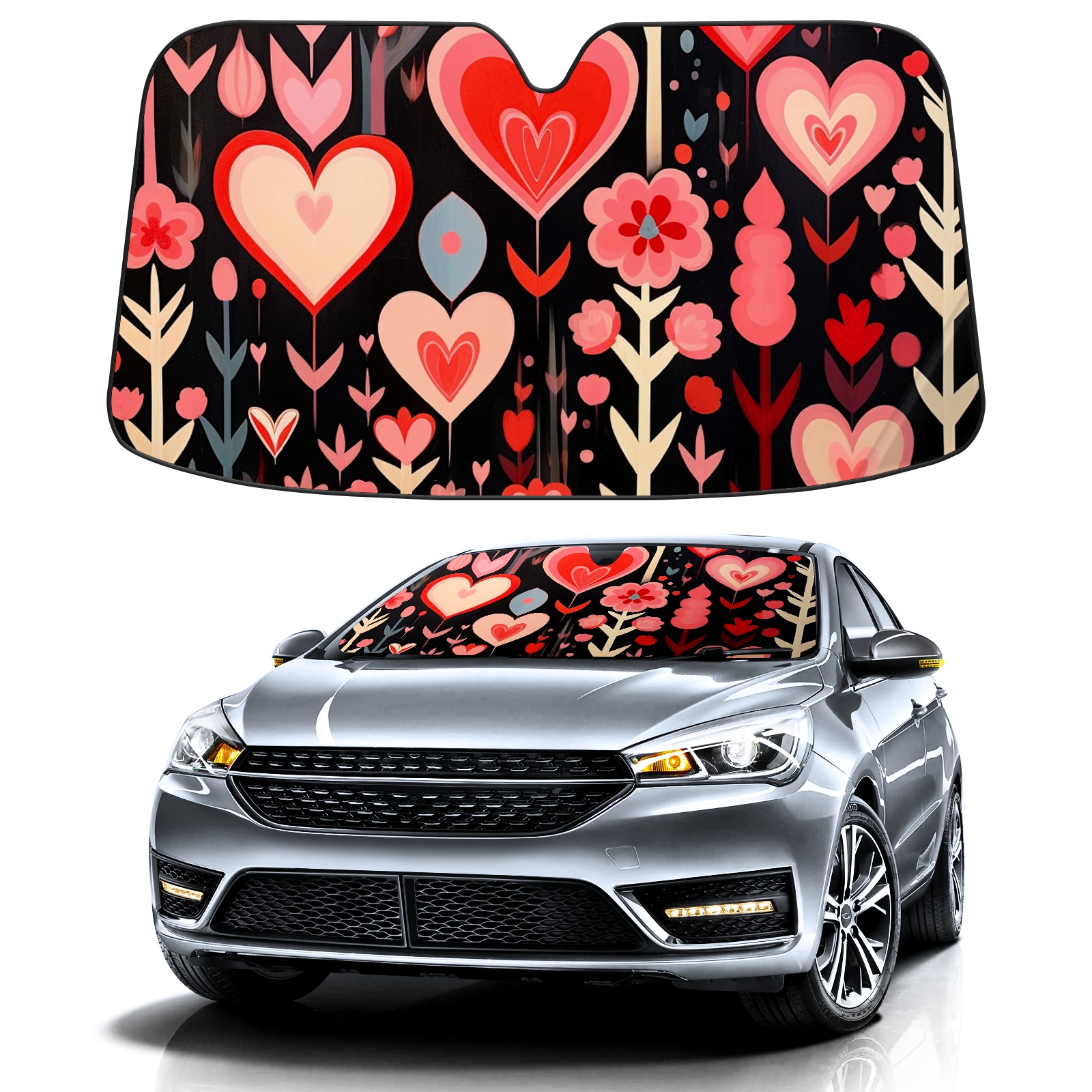 Car Windshield Sun Shade For Front Window Love Foldable Vehicle Windshield Car Sun Visor Covers Automotive Window Protector Car Camping Privacy Sun Blocker