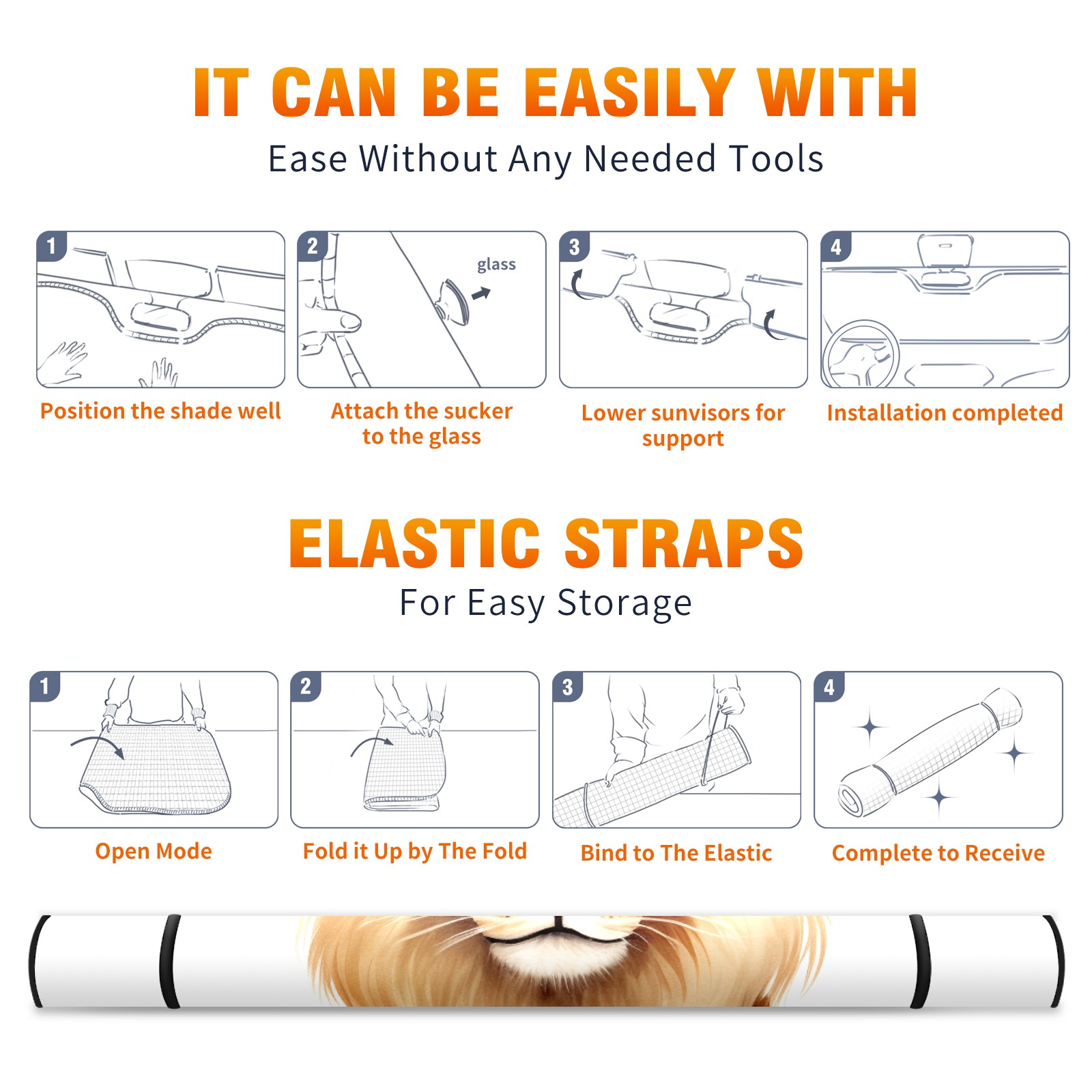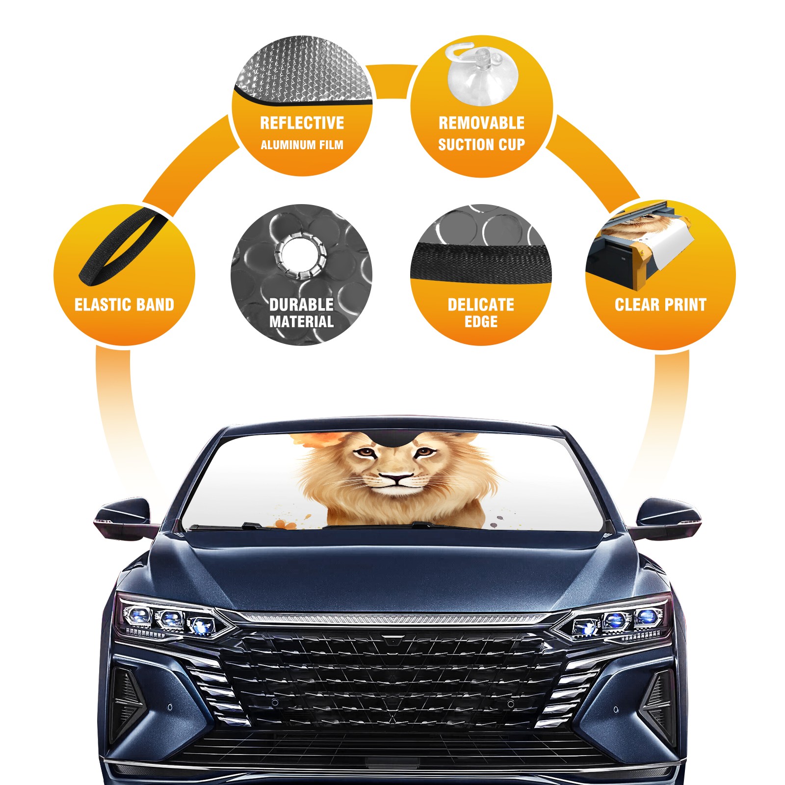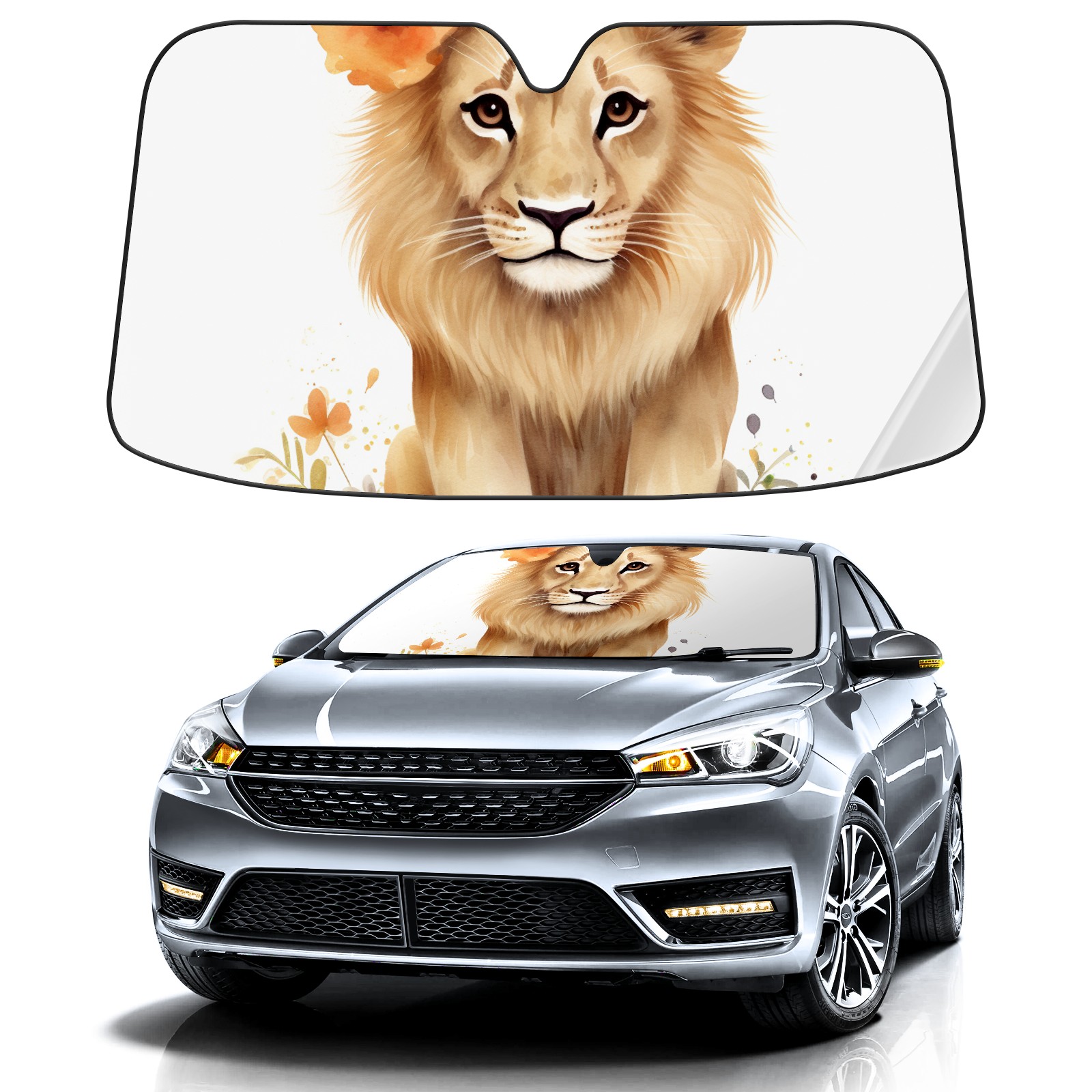Car Windshield Sun Shade For Front Window Lion 3 Foldable Vehicle Windshield Car Sun Visor Covers Automotive Window Protector Car Camping Privacy Sun Blocker