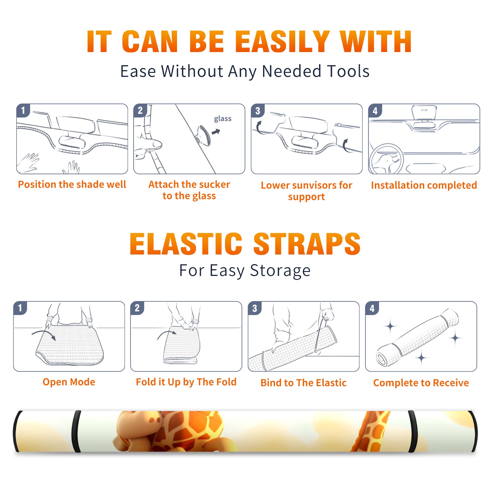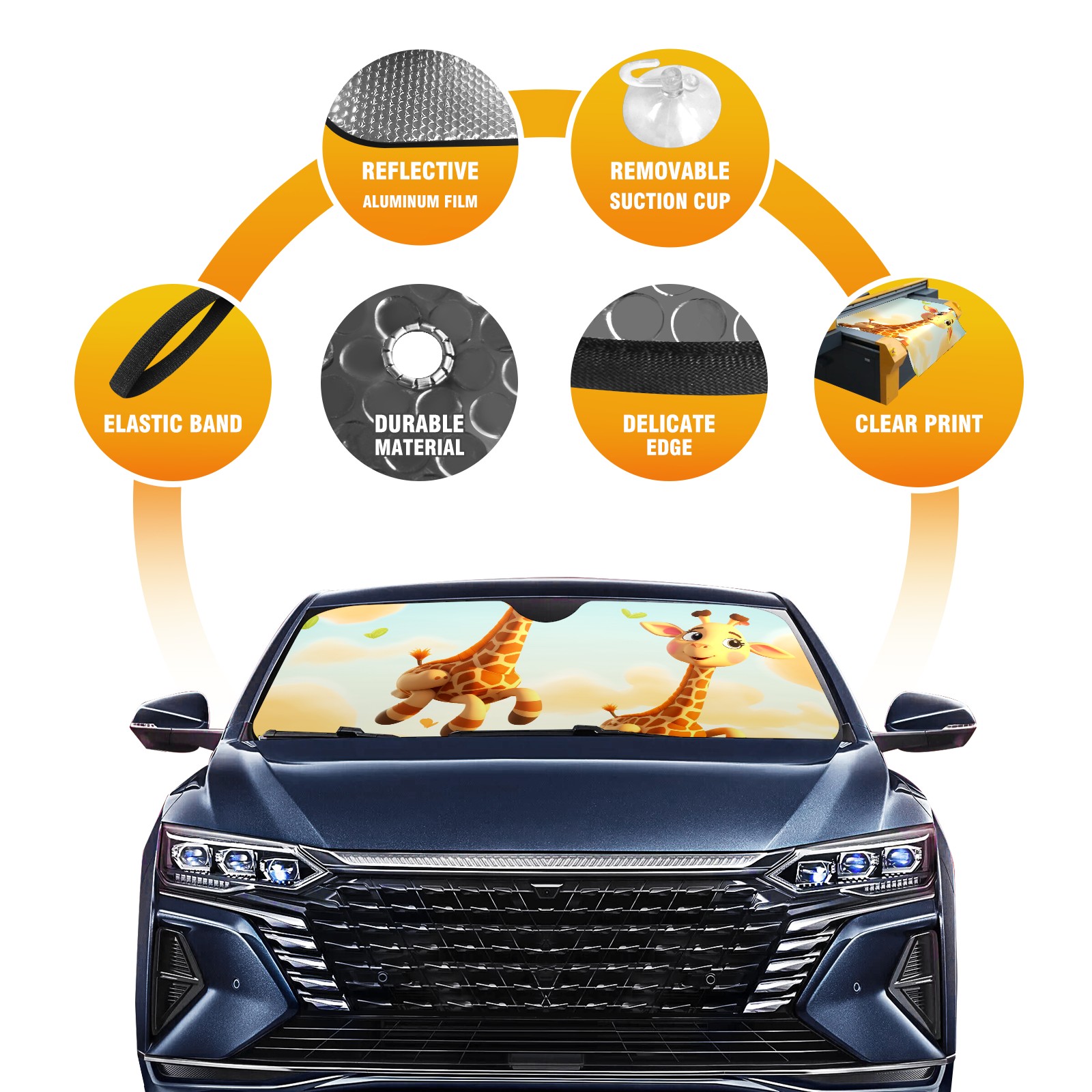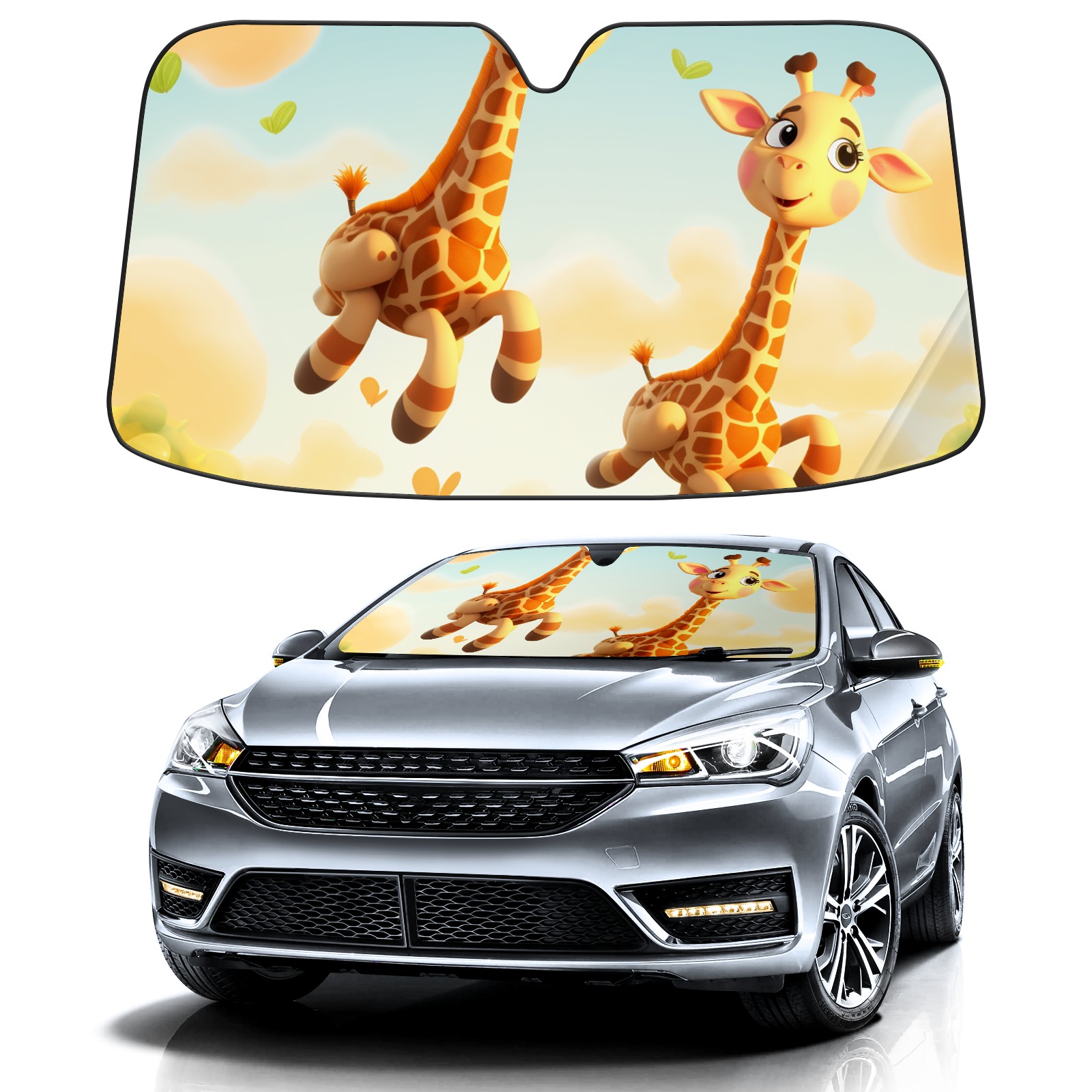 Car Windshield Sun Shade For Front Window Giraffes Foldable Vehicle Windshield Car Sun Visor Covers Automotive Window Protector Car Camping Privacy Sun Blocker