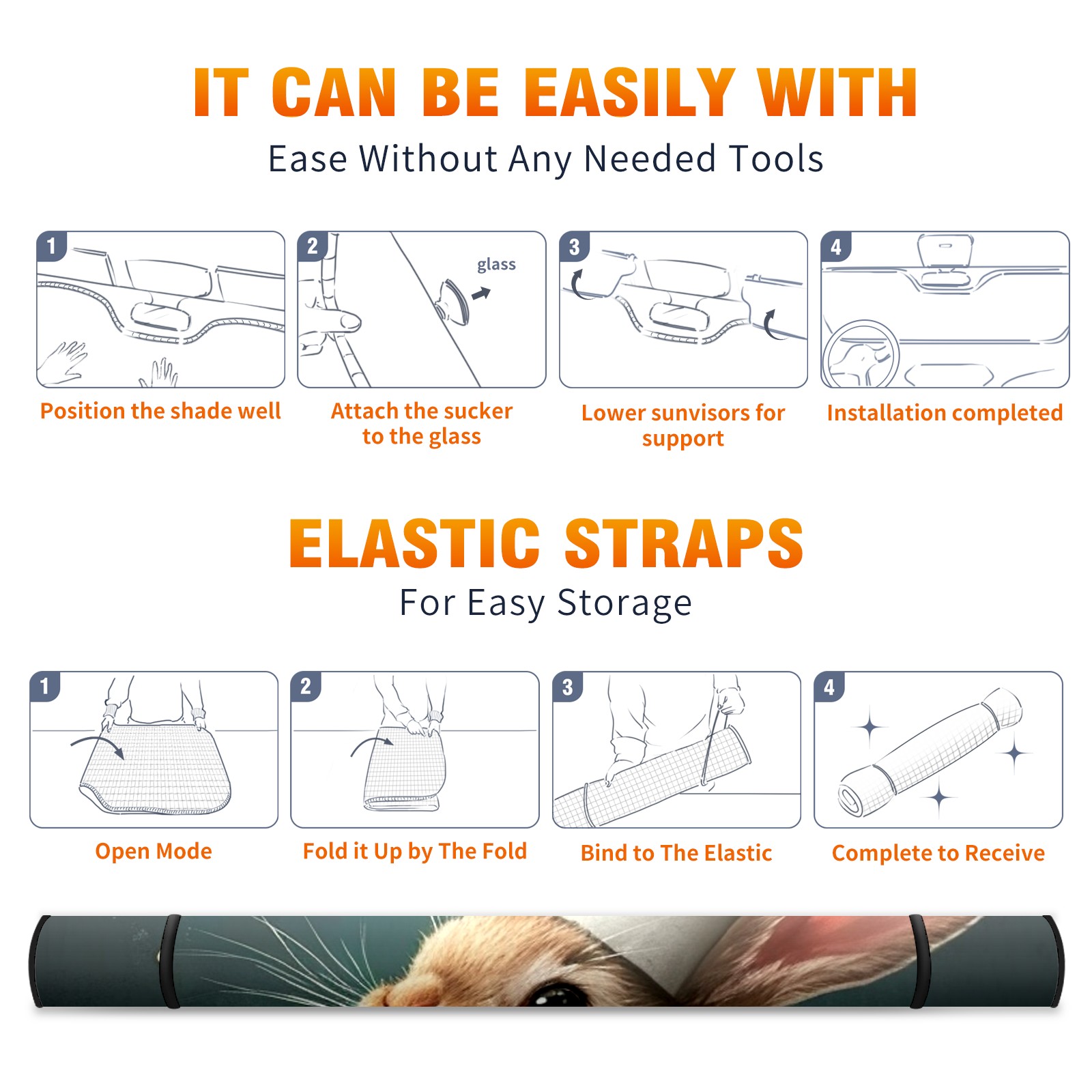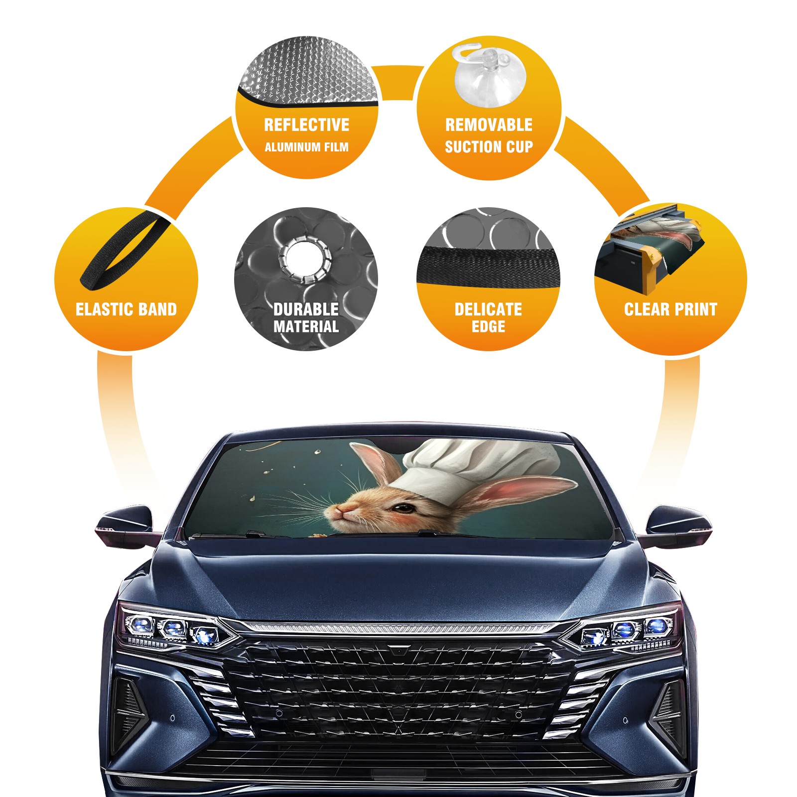 Car Windshield Sun Shade For Front Window Rabbit Foldable Vehicle Windshield Car Sun Visor Covers Automotive Window Protector Car Camping Privacy Sun Blocker