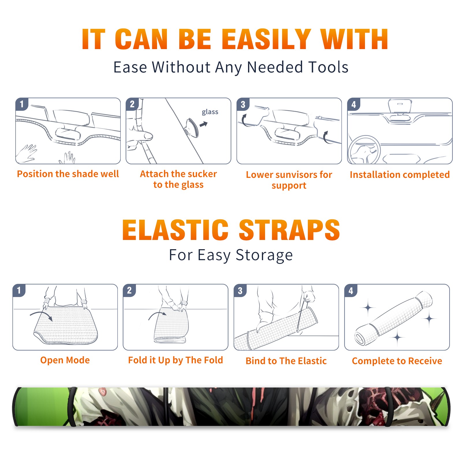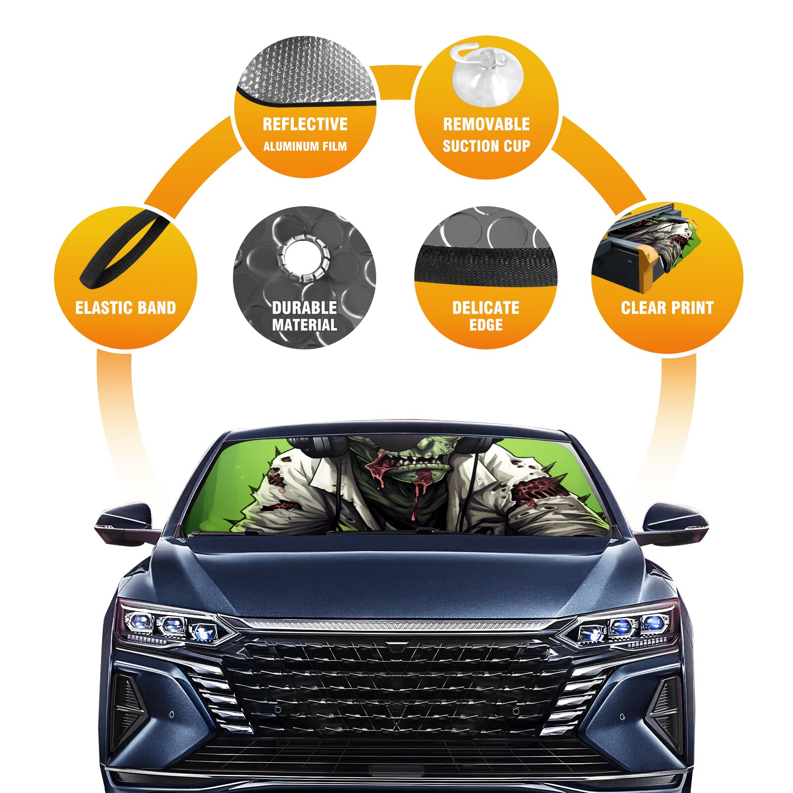 Car Windshield Sun Shade For Front Window Zombie Foldable Vehicle Windshield Car Sun Visor Covers Automotive Window Protector Car Camping Privacy Sun Blocker