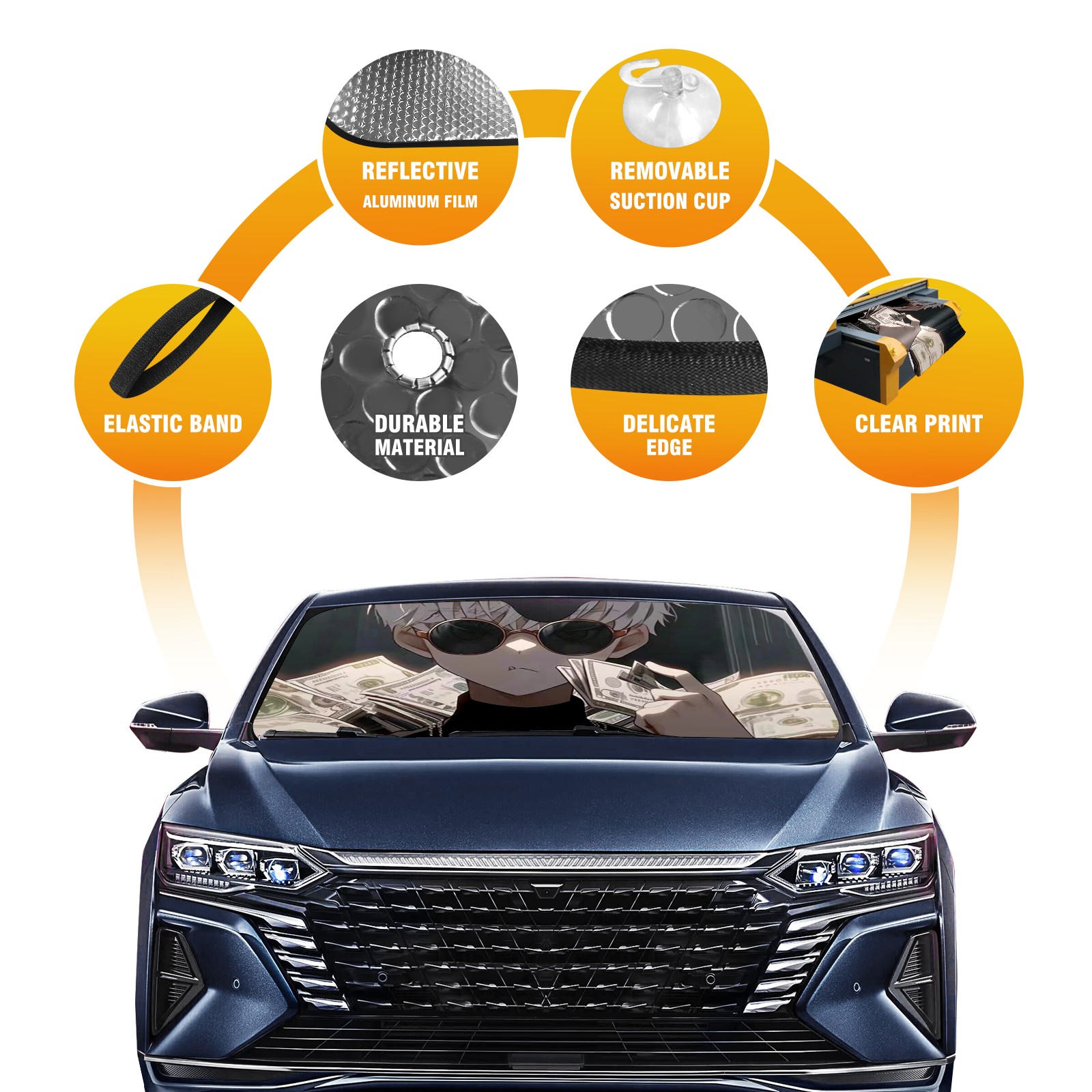 Car Windshield Sun Shade For Front Window Cartoon Boy Foldable Vehicle Windshield Car Sun Visor Covers Automotive Window Protector Car Camping Privacy Sun Blocker