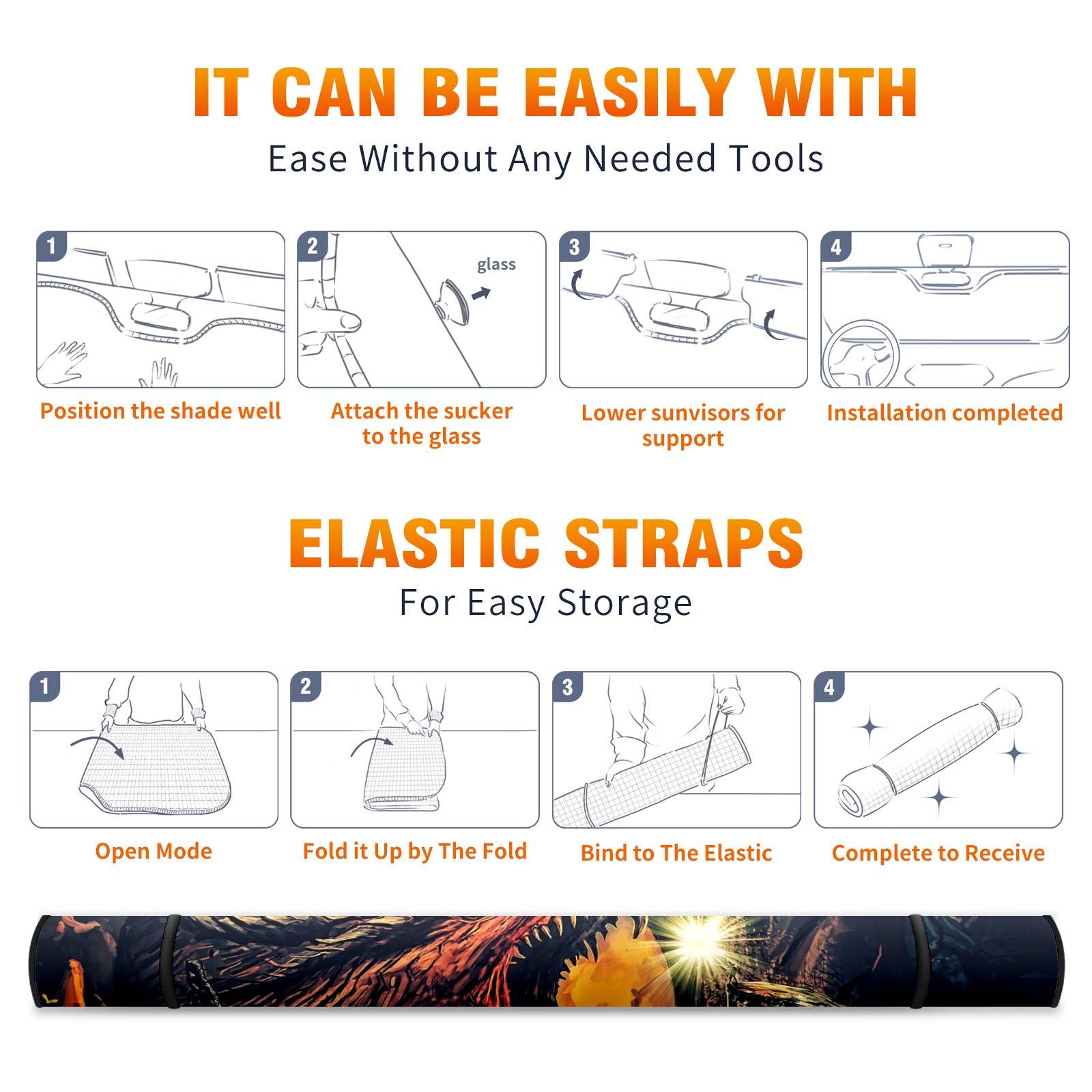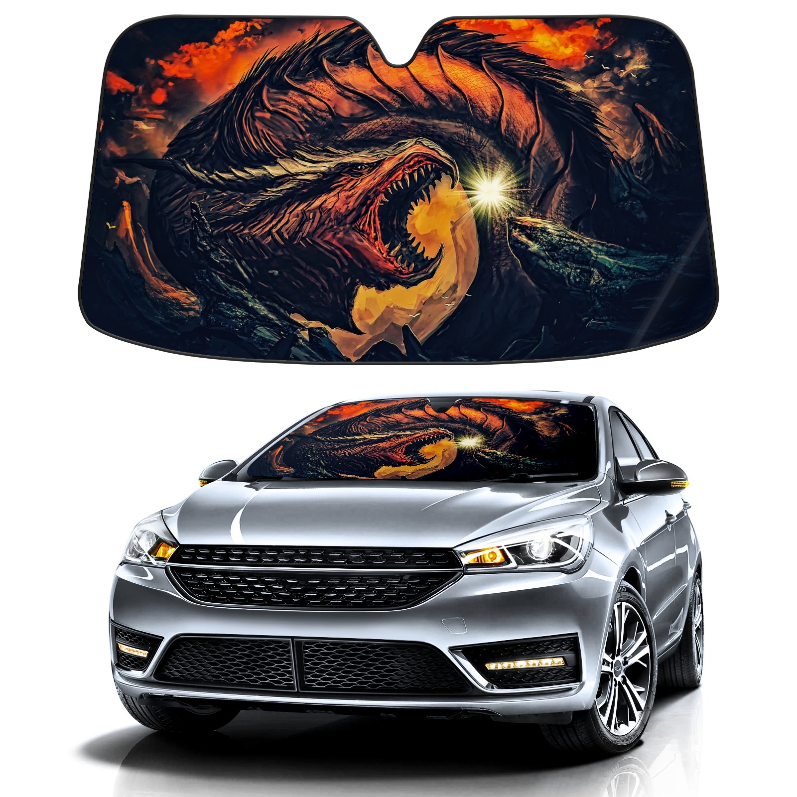Car Windshield Sun Shade For Front Window Dragons Foldable Vehicle Windshield Car Sun Visor Covers Automotive Window Protector Car Camping Privacy Sun Blocker