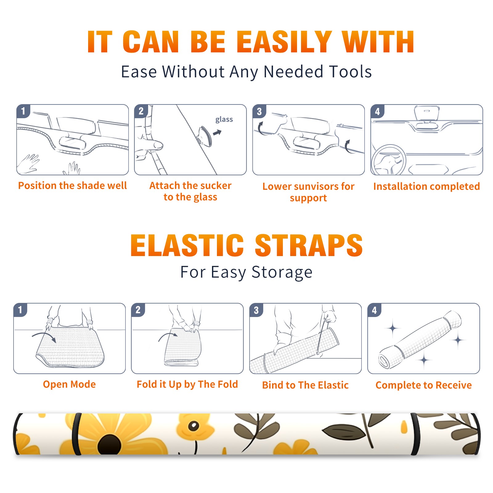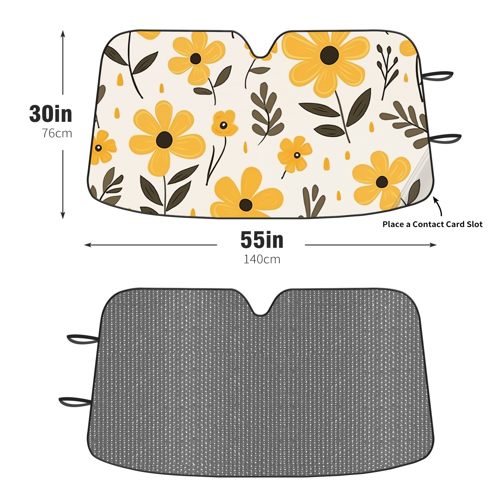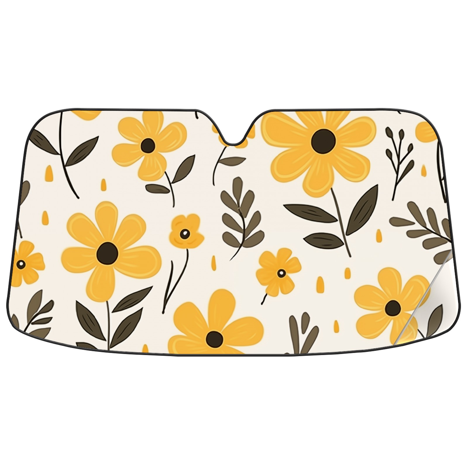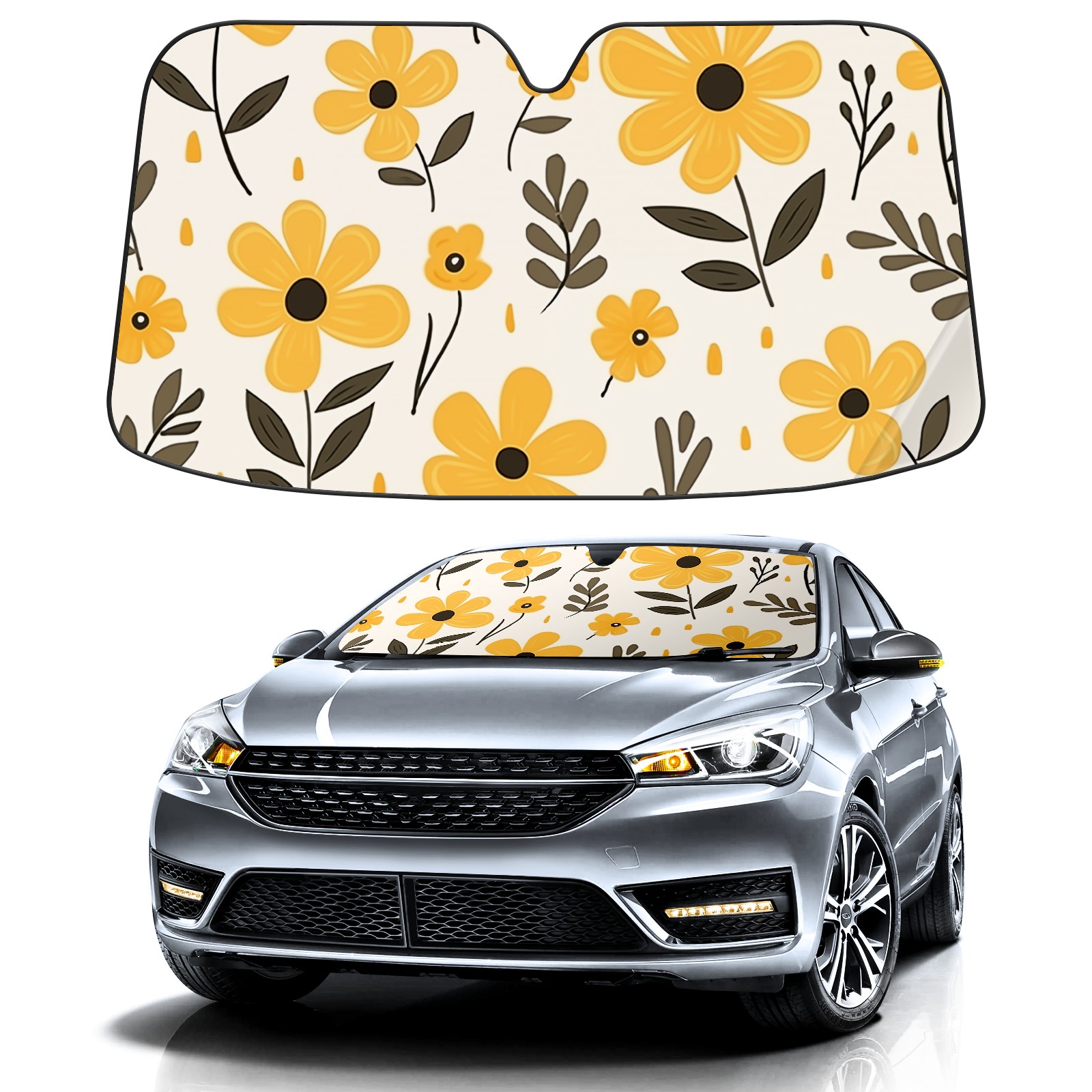 Car Windshield Sun Shade For Front Window Yellow Flowers Foldable Vehicle Windshield Car Sun Visor Covers Automotive Window Protector Car Camping Privacy Sun Blocker