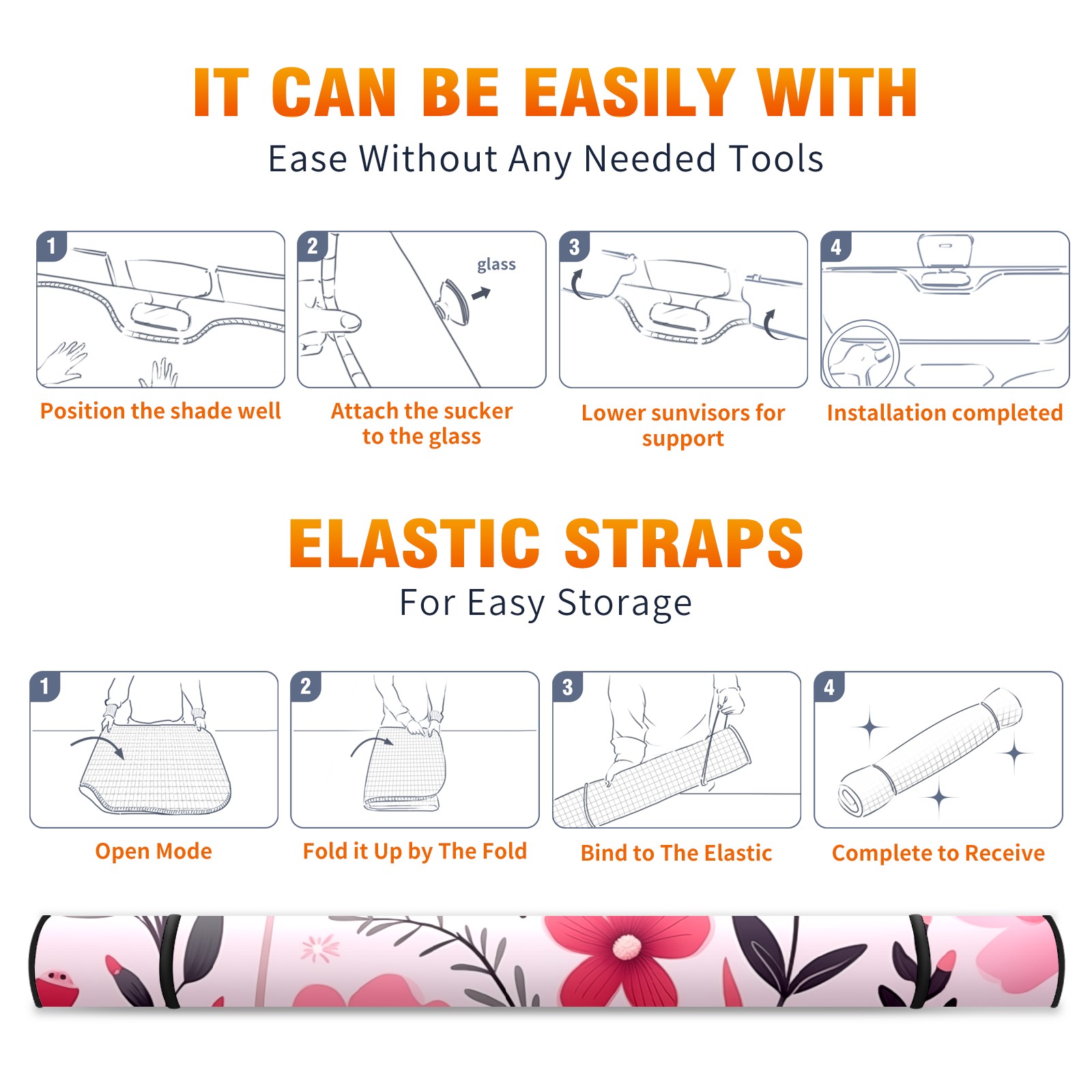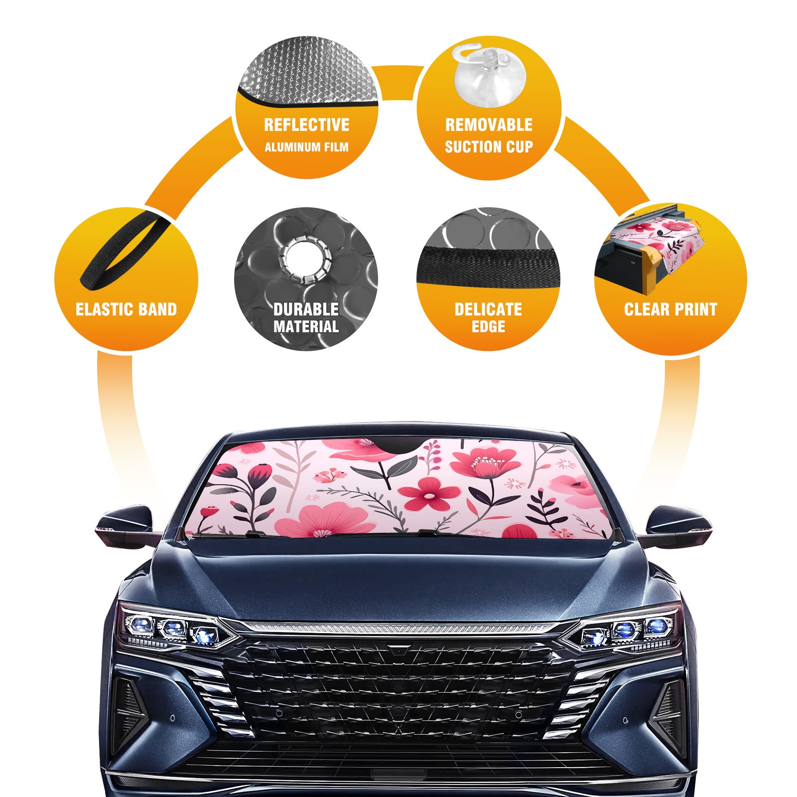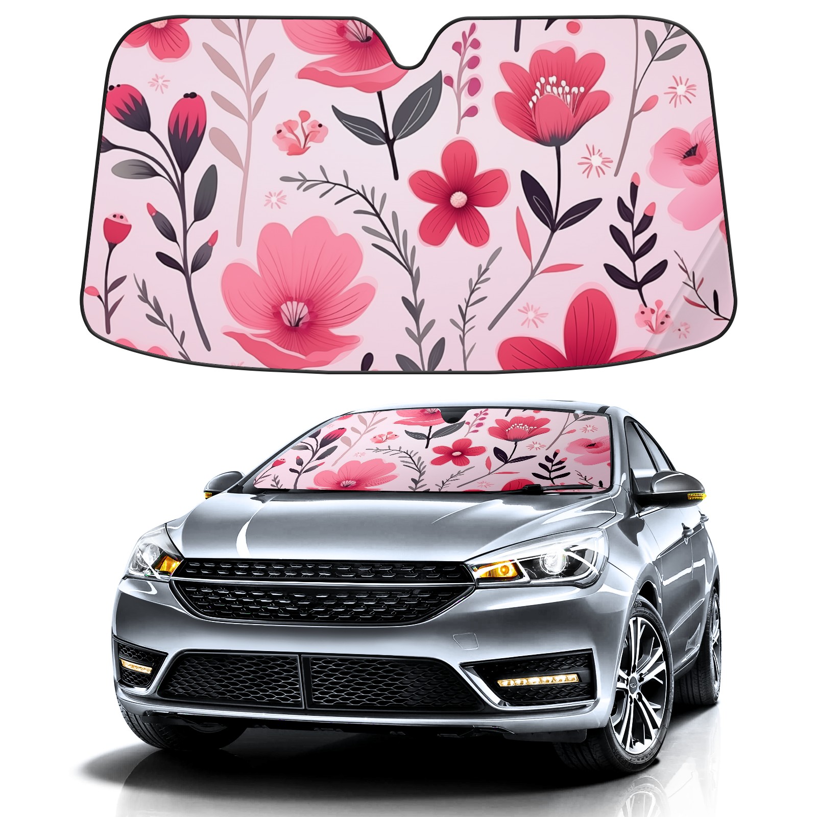 Car Windshield Sun Shade For Front Window Pink Flower Foldable Vehicle Windshield Car Sun Visor Covers Automotive Window Protector Car Camping Privacy Sun Blocker