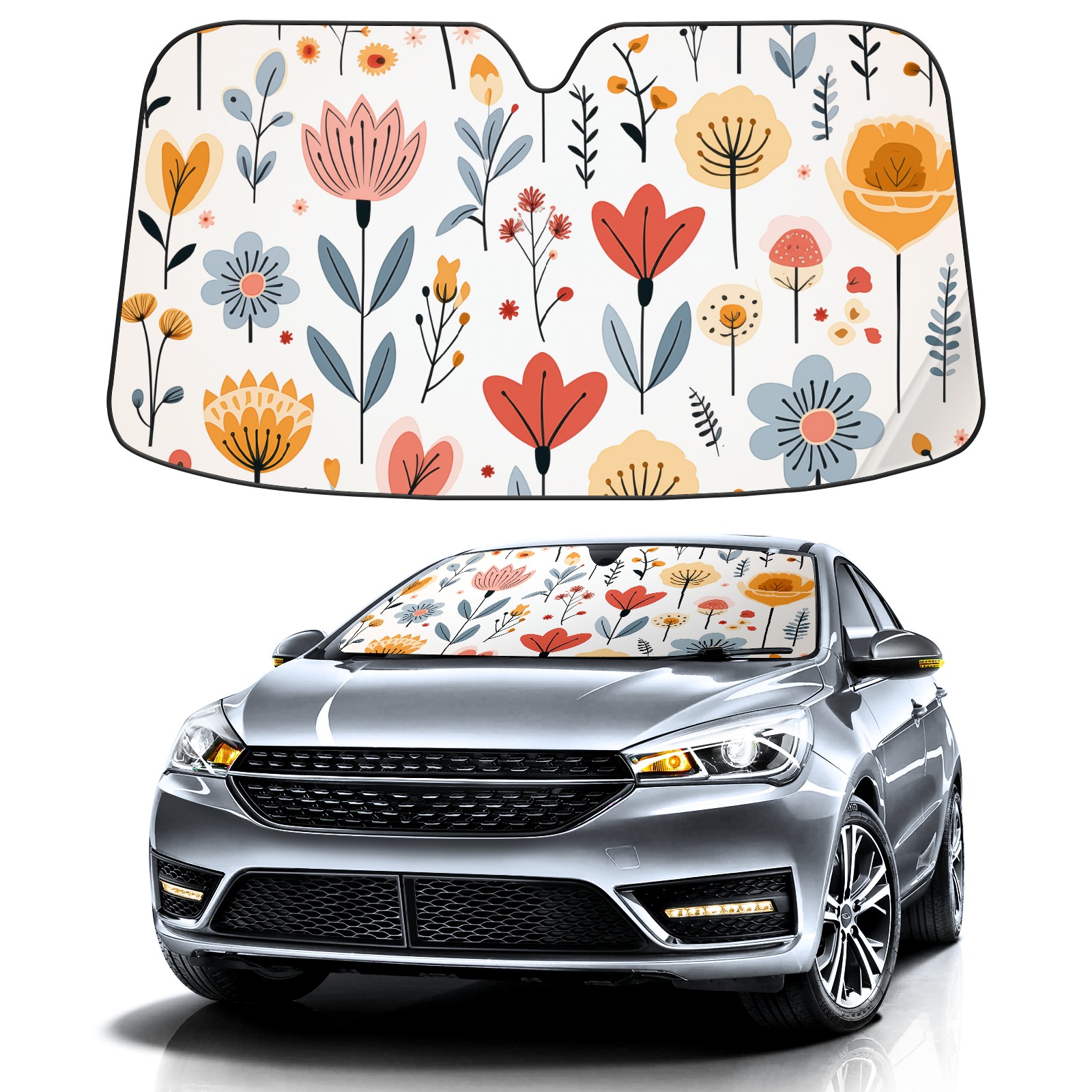 Car Windshield Sun Shade For Front Window Colorful Flowers Foldable Vehicle Windshield Car Sun Visor Covers Automotive Window Protector Car Camping Privacy Sun Blocker
