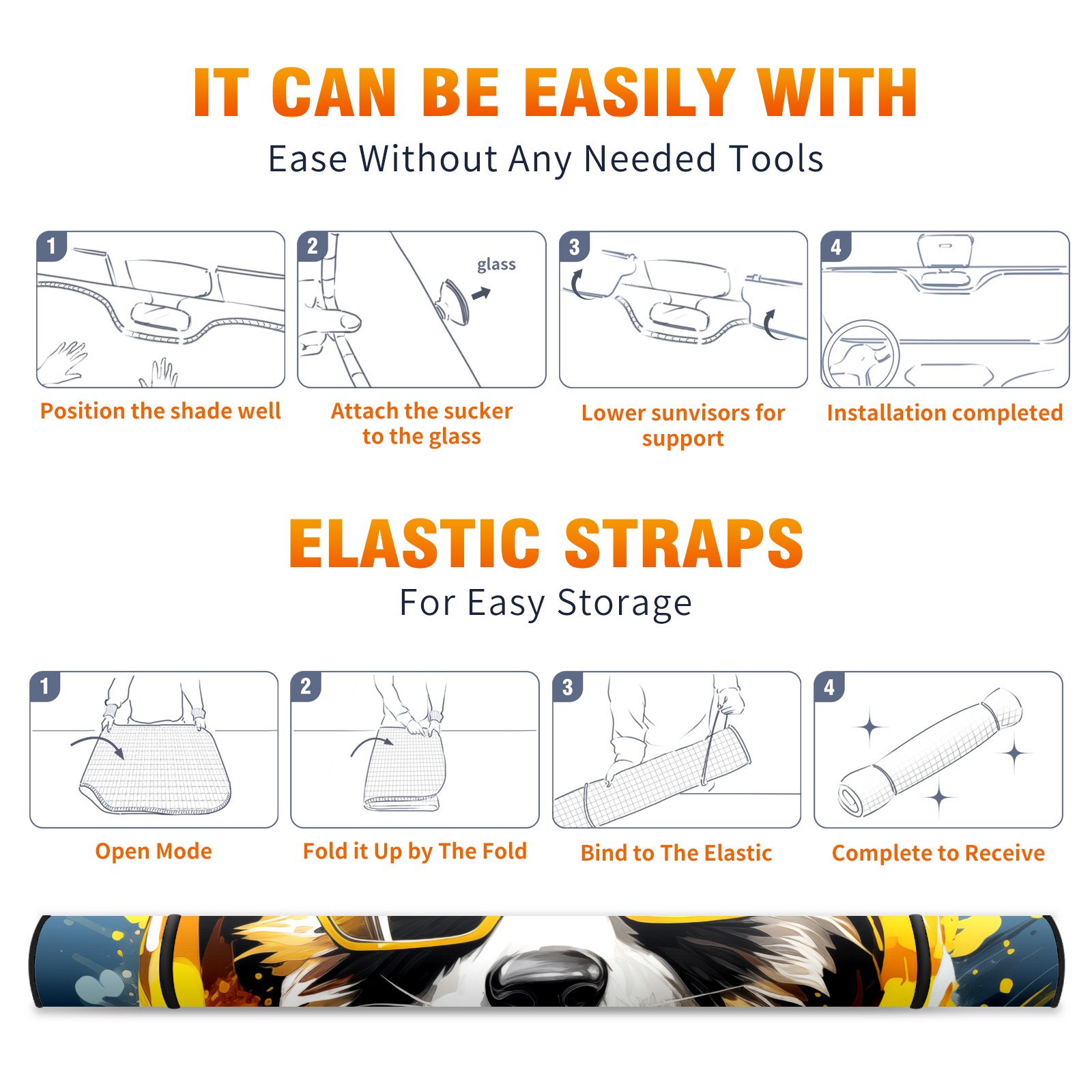 • Diameter /Size 63"L x 33.5"W Made from excellent materials which makes it sturdy and protects the car from the sun. Easy to use and pack. Makes the interior of the car cooler.You can easily stash the sunshade in the storage bag or store long term.It open and closes easy. Also the leather storage bag is durable and easy to put the umbrella back into.This windshield sunshade provides complete coverage and keeps your car interior cool under direct sun. It is easy to open and position under the windshield and around the rear-view mirror. Makes Your Car Easy To Identify, Perfect For Finding Your Car In Crowded Parking Lots And Garages.Great Choice: It Is A Great Gift For Dad, Boyfriend, Brother, Brother And Uncle, Friends, Classmates, Family And So On. Notice: Due To Difference Computer Monitors, The Color Maybe Slightly Different From Picture. As Different Measurement Methods, Measurement Data Will Float Within 2%.I Hope You Understand. If You Have Any Question About The Item Please Do Not Hesitate To Contact Us Immediately And We Will Give You A Satisfactory Reply Within 24 Hours.