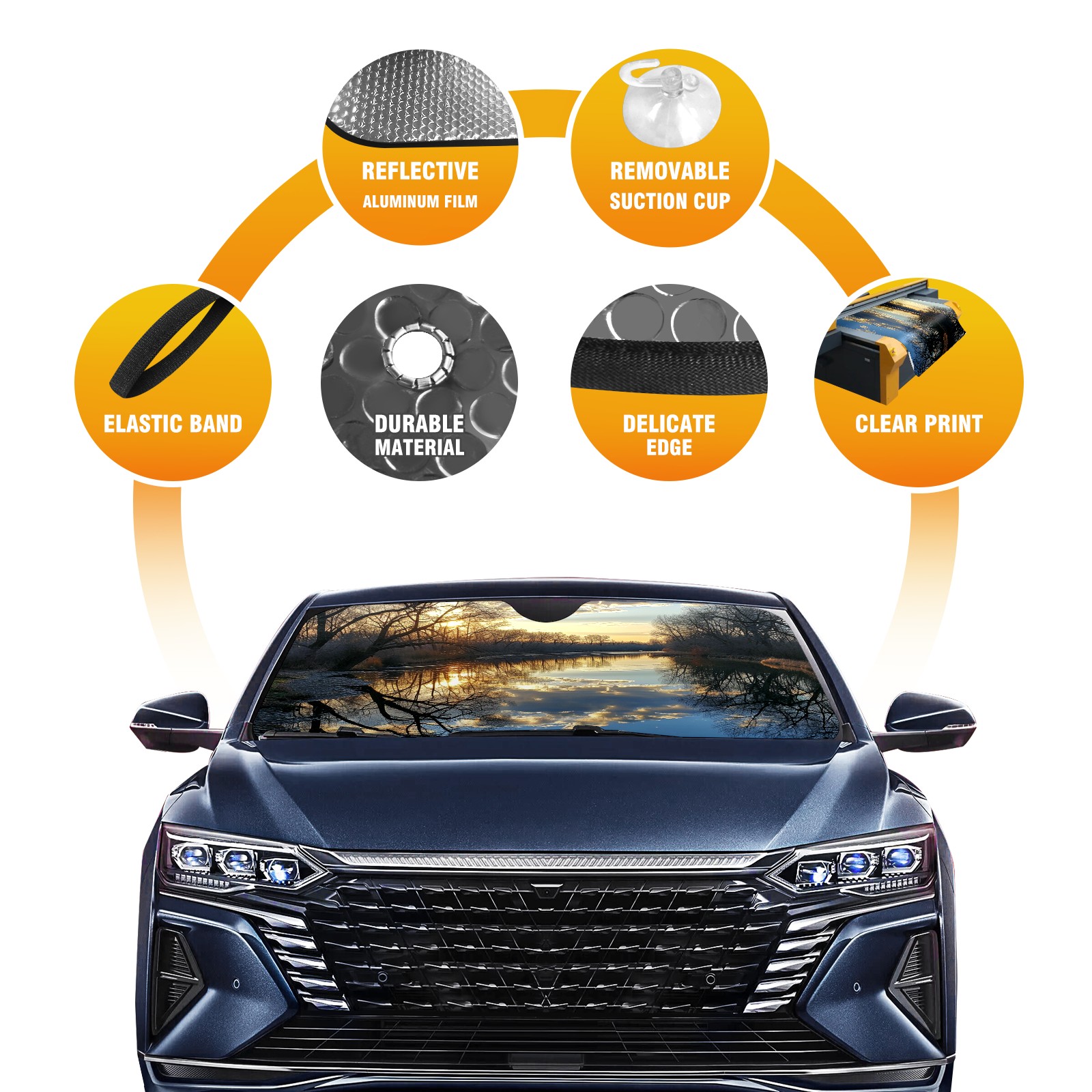 Car Windshield Sun Shade For Front Window Landscape Foldable Vehicle Windshield Car Sun Visor Covers Automotive Window Protector Car Camping Privacy Sun Blocker