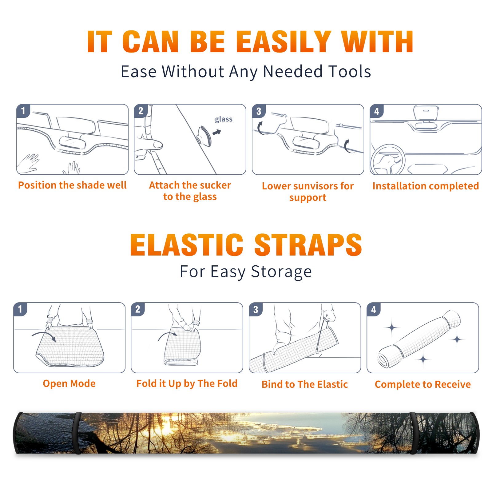 • Diameter /Size 63"L x 33.5"W Made from excellent materials which makes it sturdy and protects the car from the sun. Easy to use and pack. Makes the interior of the car cooler.You can easily stash the sunshade in the storage bag or store long term.It open and closes easy. Also the leather storage bag is durable and easy to put the umbrella back into.This windshield sunshade provides complete coverage and keeps your car interior cool under direct sun. It is easy to open and position under the windshield and around the rear-view mirror. Makes Your Car Easy To Identify, Perfect For Finding Your Car In Crowded Parking Lots And Garages.Great Choice: It Is A Great Gift For Dad, Boyfriend, Brother, Brother And Uncle, Friends, Classmates, Family And So On. Notice: Due To Difference Computer Monitors, The Color Maybe Slightly Different From Picture. As Different Measurement Methods, Measurement Data Will Float Within 2%.I Hope You Understand. If You Have Any Question About The Item Please Do Not Hesitate To Contact Us Immediately And We Will Give You A Satisfactory Reply Within 24 Hours.