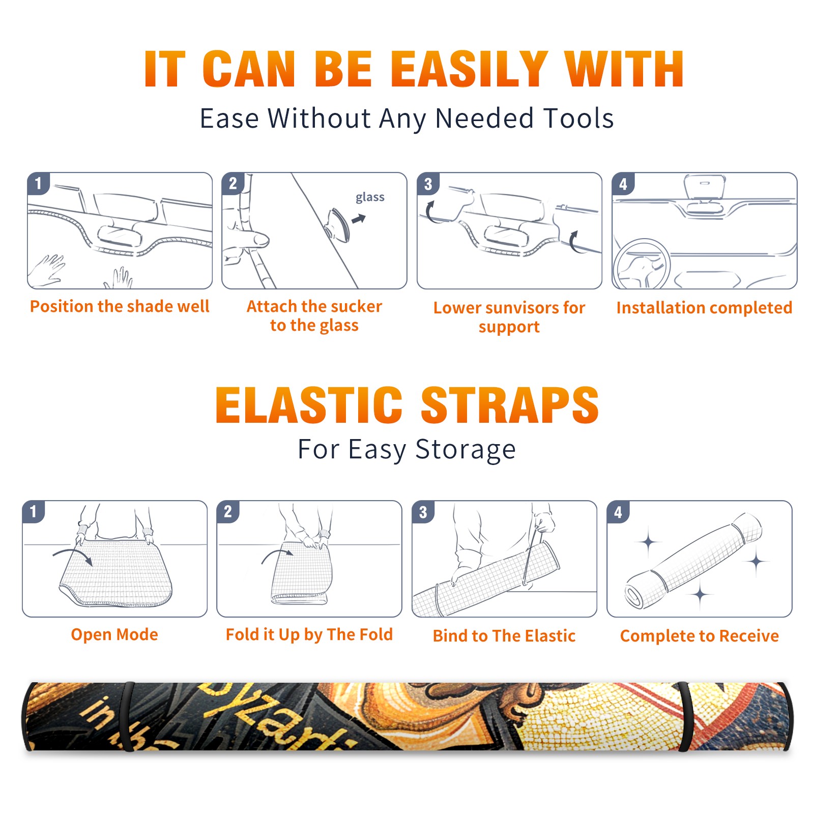 • Diameter /Size 63"L x 33.5"W Made from excellent materials which makes it sturdy and protects the car from the sun. Easy to use and pack. Makes the interior of the car cooler.You can easily stash the sunshade in the storage bag or store long term.It open and closes easy. Also the leather storage bag is durable and easy to put the umbrella back into.This windshield sunshade provides complete coverage and keeps your car interior cool under direct sun. It is easy to open and position under the windshield and around the rear-view mirror. Makes Your Car Easy To Identify, Perfect For Finding Your Car In Crowded Parking Lots And Garages.Great Choice: It Is A Great Gift For Dad, Boyfriend, Brother, Brother And Uncle, Friends, Classmates, Family And So On. Notice: Due To Difference Computer Monitors, The Color Maybe Slightly Different From Picture. As Different Measurement Methods, Measurement Data Will Float Within 2%.I Hope You Understand. If You Have Any Question About The Item Please Do Not Hesitate To Contact Us Immediately And We Will Give You A Satisfactory Reply Within 24 Hours.