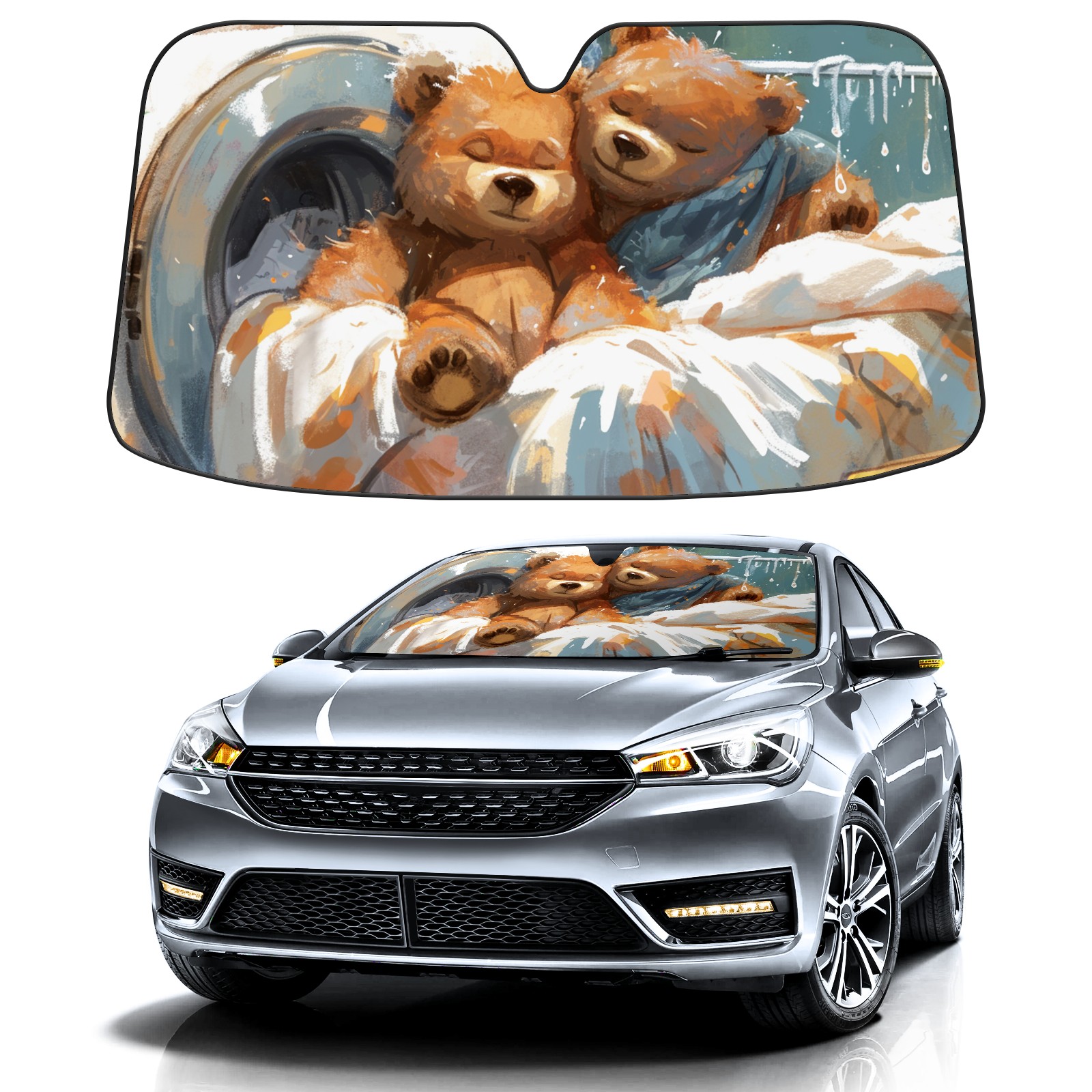 Car Windshield Sun Shade For Front Window Bear Foldable Vehicle Windshield Car Sun Visor Covers Automotive Window Protector Car Camping Privacy Sun Blocker