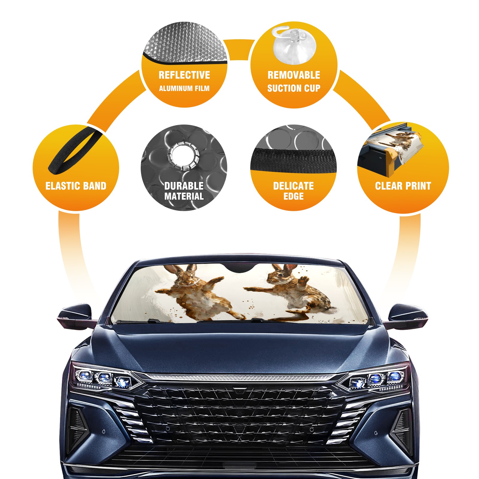 Car Windshield Sun Shade For Front Window Rabbit Foldable Vehicle Windshield Car Sun Visor Covers Automotive Window Protector Car Camping Privacy Sun Blocker