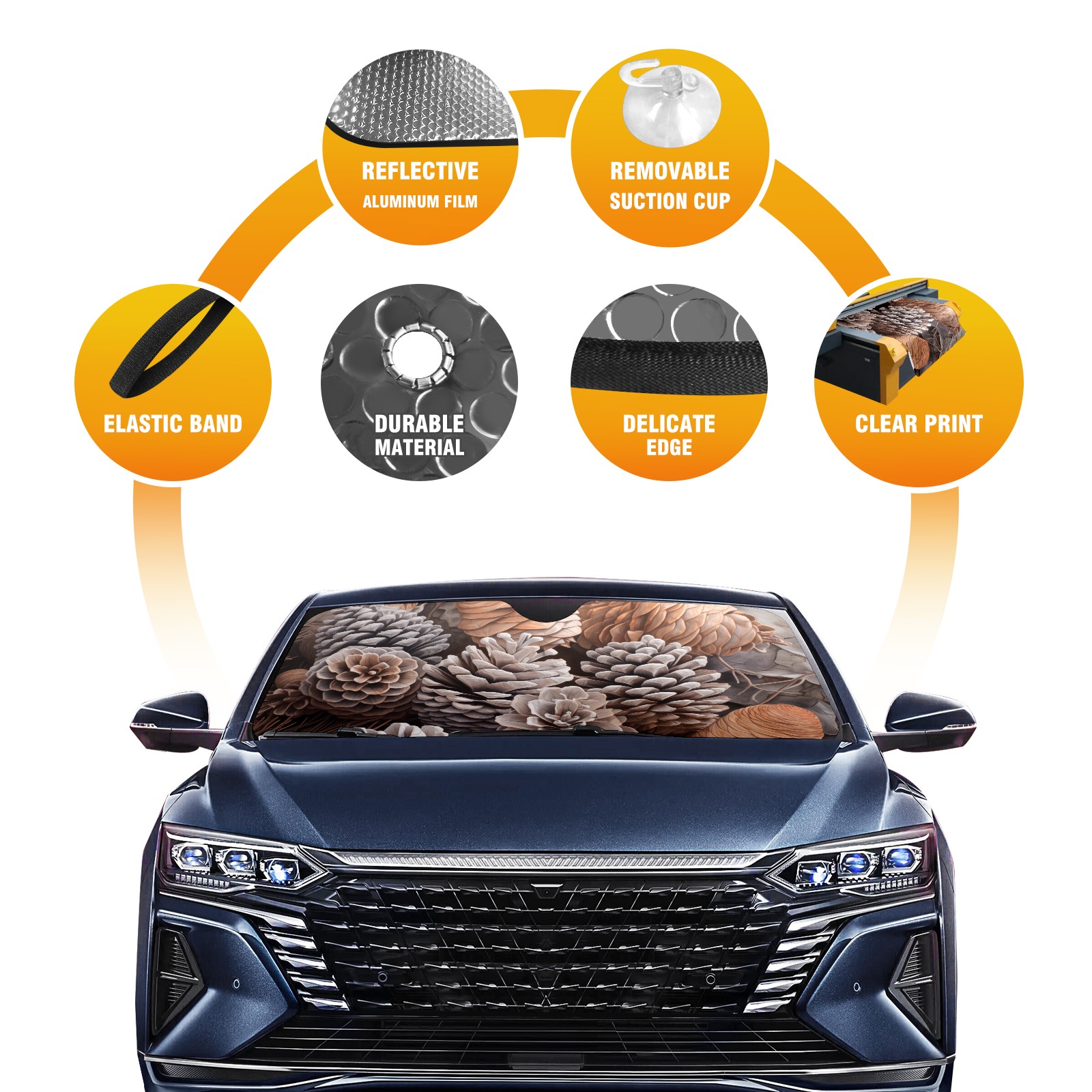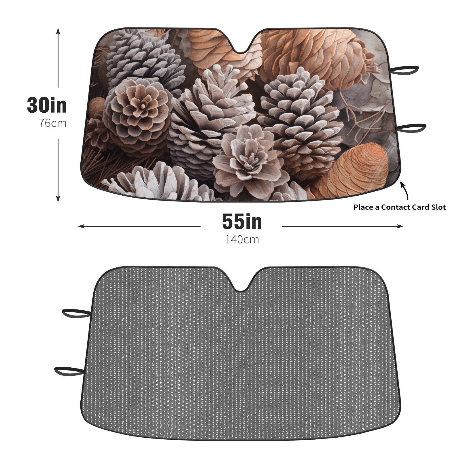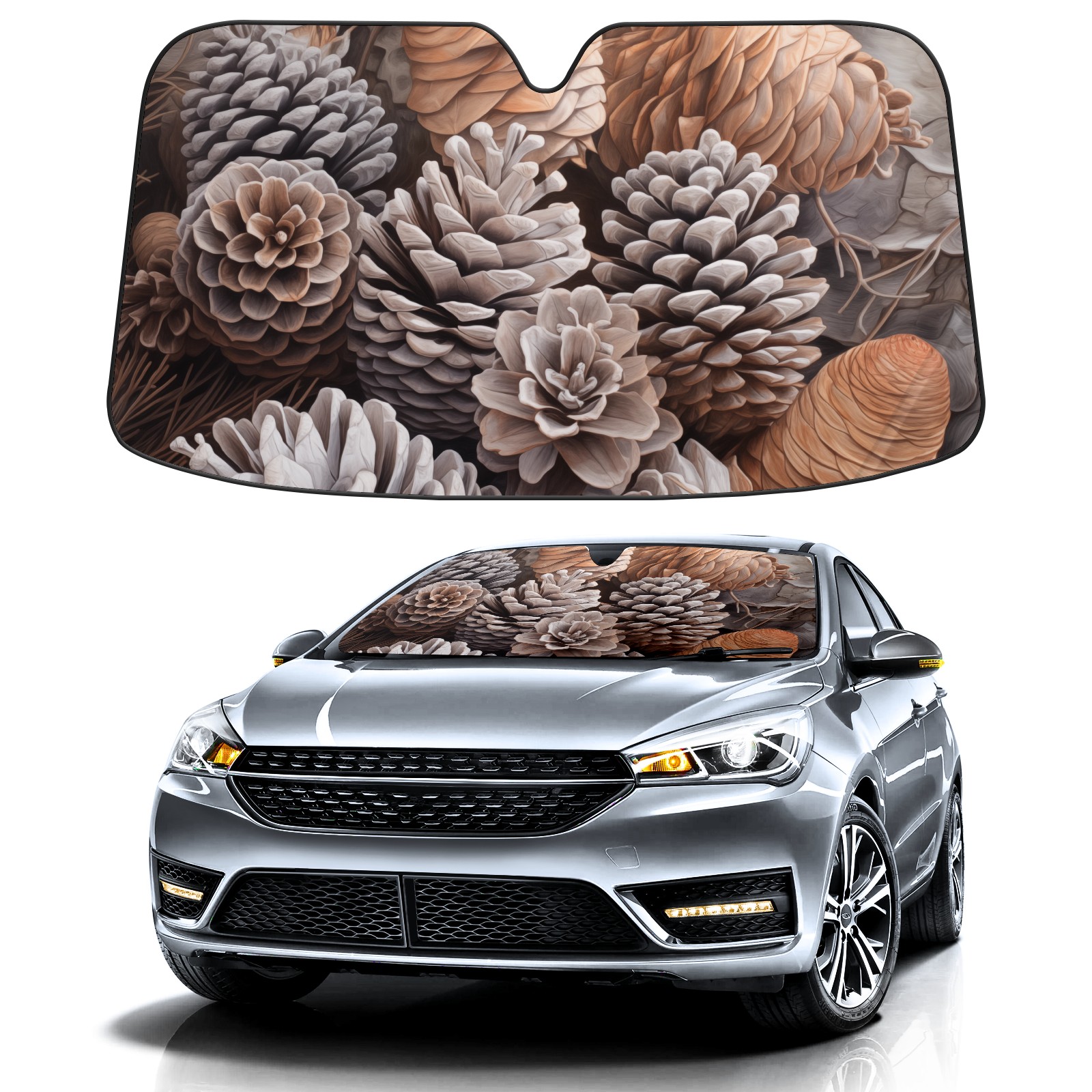 Diameter /Size 63"L x 33.5"W Made from excellent materials which makes it sturdy and protects the car from the sun. Easy to use and pack. Makes the interior of the car cooler.You can easily stash the sunshade in the storage bag or store long term.It open and closes easy. Also the leather storage bag is durable and easy to put the umbrella back into.This windshield sunshade provides complete coverage and keeps your car interior cool under direct sun. It is easy to open and position under the windshield and around the rear-view mirror. Makes Your Car Easy To Identify, Perfect For Finding Your Car In Crowded Parking Lots And Garages.Great Choice: It Is A Great Gift For Dad, Boyfriend, Brother, Brother And Uncle, Friends, Classmates, Family And So On. Notice: Due To Difference Computer Monitors, The Color Maybe Slightly Different From Picture. As Different Measurement Methods, Measurement Data Will Float Within 2%.I Hope You Understand. If You Have Any Question About The Item Please Do Not Hesitate To Contact Us Immediately And We Will Give You A Satisfactory Reply Within 24 Hours.