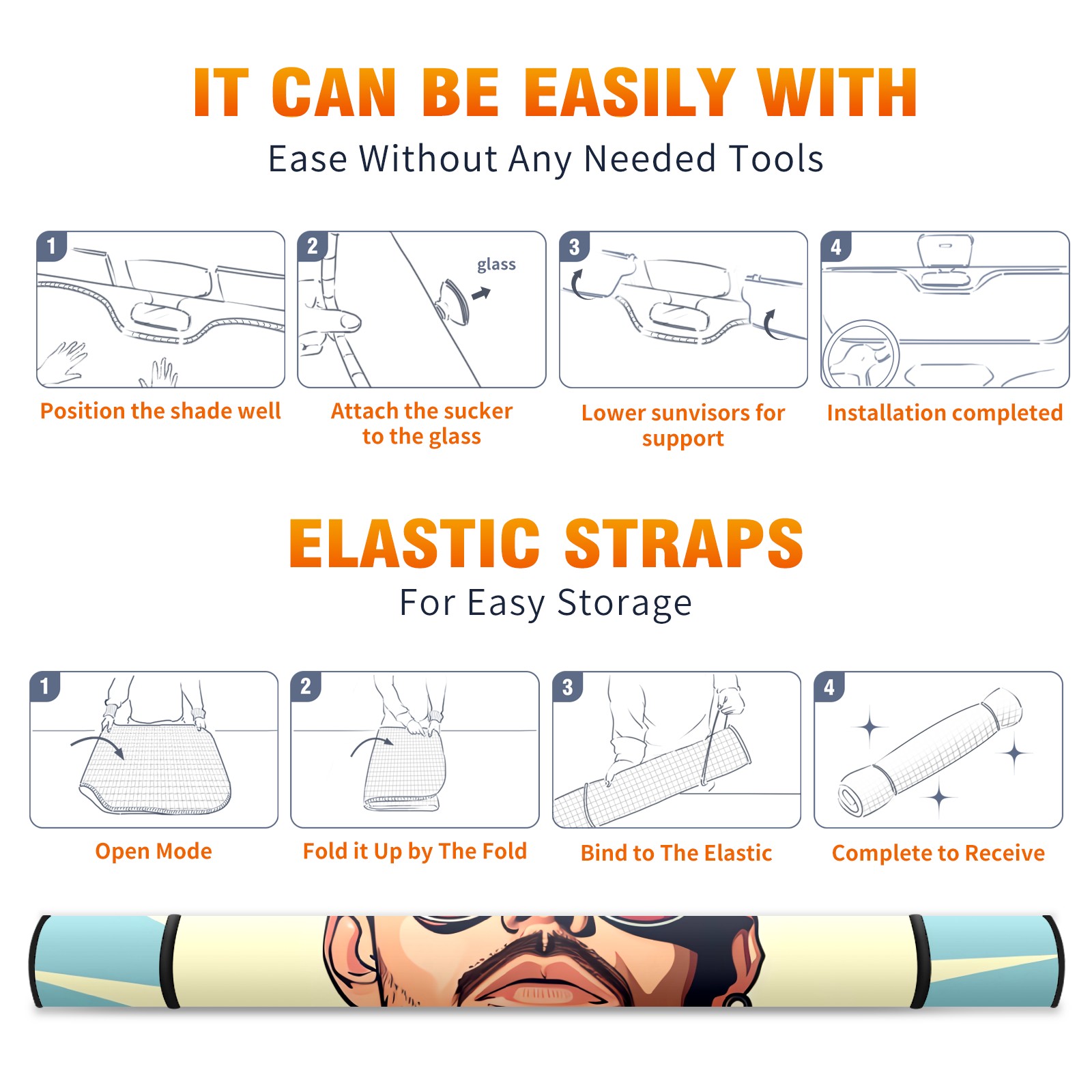 • Diameter /Size 63"L x 33.5"W Made from excellent materials which makes it sturdy and protects the car from the sun. Easy to use and pack. Makes the interior of the car cooler.You can easily stash the sunshade in the storage bag or store long term.It open and closes easy. Also the leather storage bag is durable and easy to put the umbrella back into.This windshield sunshade provides complete coverage and keeps your car interior cool under direct sun. It is easy to open and position under the windshield and around the rear-view mirror. Makes Your Car Easy To Identify, Perfect For Finding Your Car In Crowded Parking Lots And Garages.Great Choice: It Is A Great Gift For Dad, Boyfriend, Brother, Brother And Uncle, Friends, Classmates, Family And So On. Notice: Due To Difference Computer Monitors, The Color Maybe Slightly Different From Picture. As Different Measurement Methods, Measurement Data Will Float Within 2%.I Hope You Understand. If You Have Any Question About The Item Please Do Not Hesitate To Contact Us Immediately And We Will Give You A Satisfactory Reply Within 24 Hours.