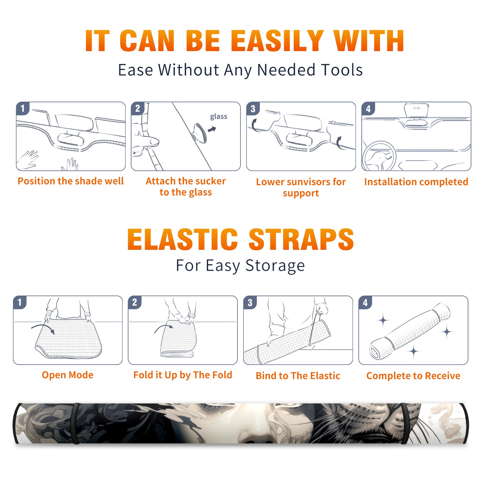 • Diameter /Size 63"L x 33.5"W Made from excellent materials which makes it sturdy and protects the car from the sun. Easy to use and pack. Makes the interior of the car cooler.You can easily stash the sunshade in the storage bag or store long term.It open and closes easy. Also the leather storage bag is durable and easy to put the umbrella back into.This windshield sunshade provides complete coverage and keeps your car interior cool under direct sun. It is easy to open and position under the windshield and around the rear-view mirror. Makes Your Car Easy To Identify, Perfect For Finding Your Car In Crowded Parking Lots And Garages.Great Choice: It Is A Great Gift For Dad, Boyfriend, Brother, Brother And Uncle, Friends, Classmates, Family And So On. Notice: Due To Difference Computer Monitors, The Color Maybe Slightly Different From Picture. As Different Measurement Methods, Measurement Data Will Float Within 2%.I Hope You Understand. If You Have Any Question About The Item Please Do Not Hesitate To Contact Us Immediately And We Will Give You A Satisfactory Reply Within 24 Hours.