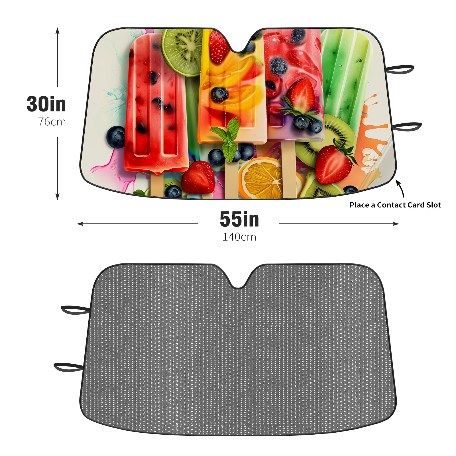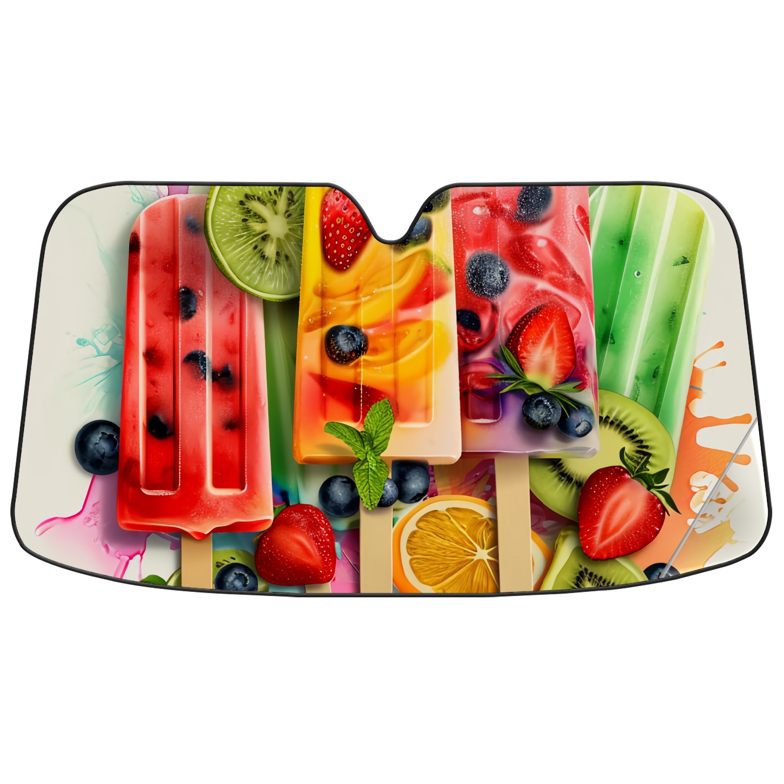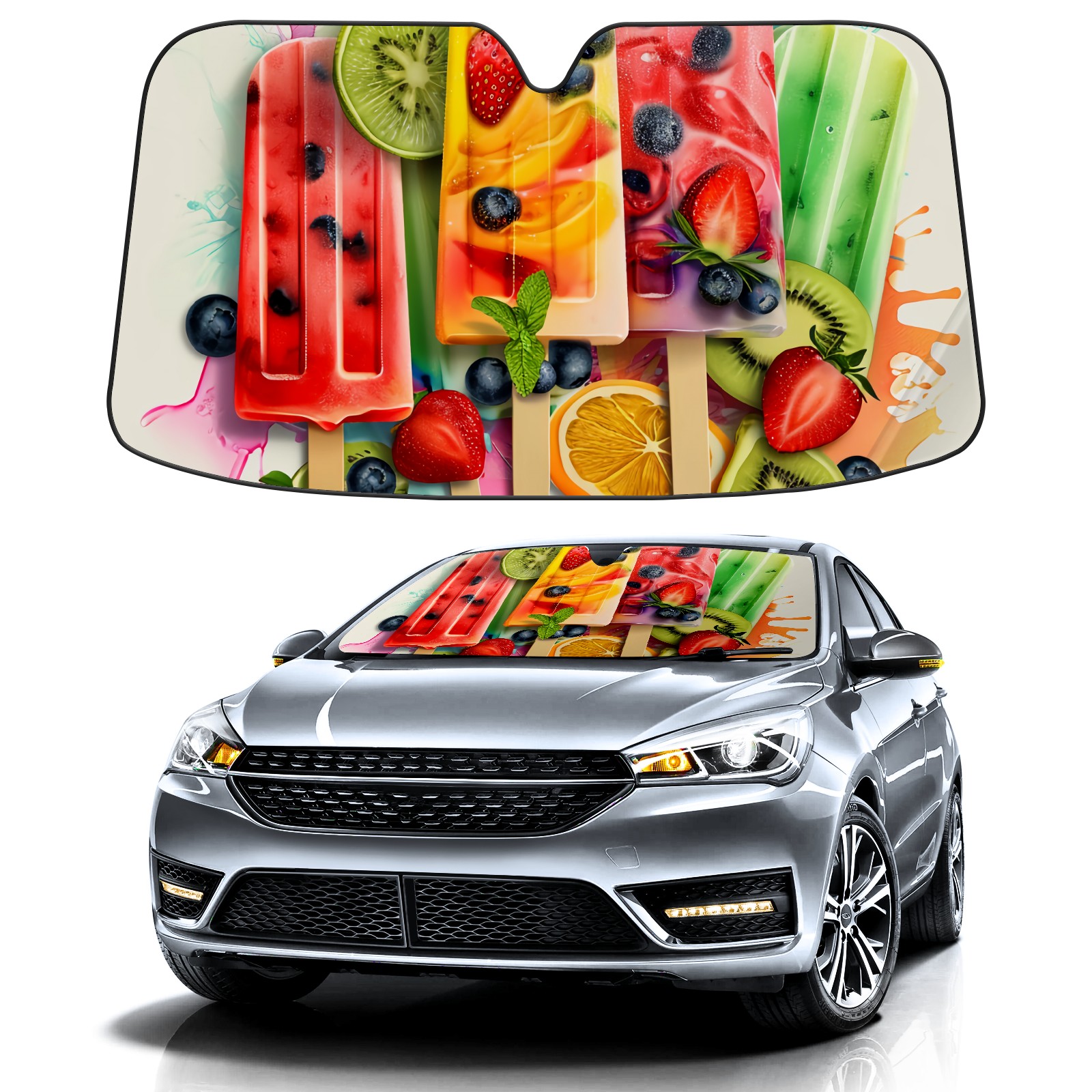 Car Windshield Sun Shade For Front Window Summer Fruit Popsicles Foldable Vehicle Windshield Car Sun Visor Covers Automotive Window Protector Car Camping Privacy Sun Blocker
