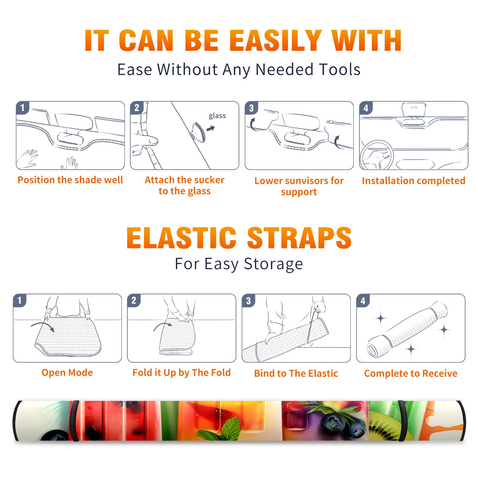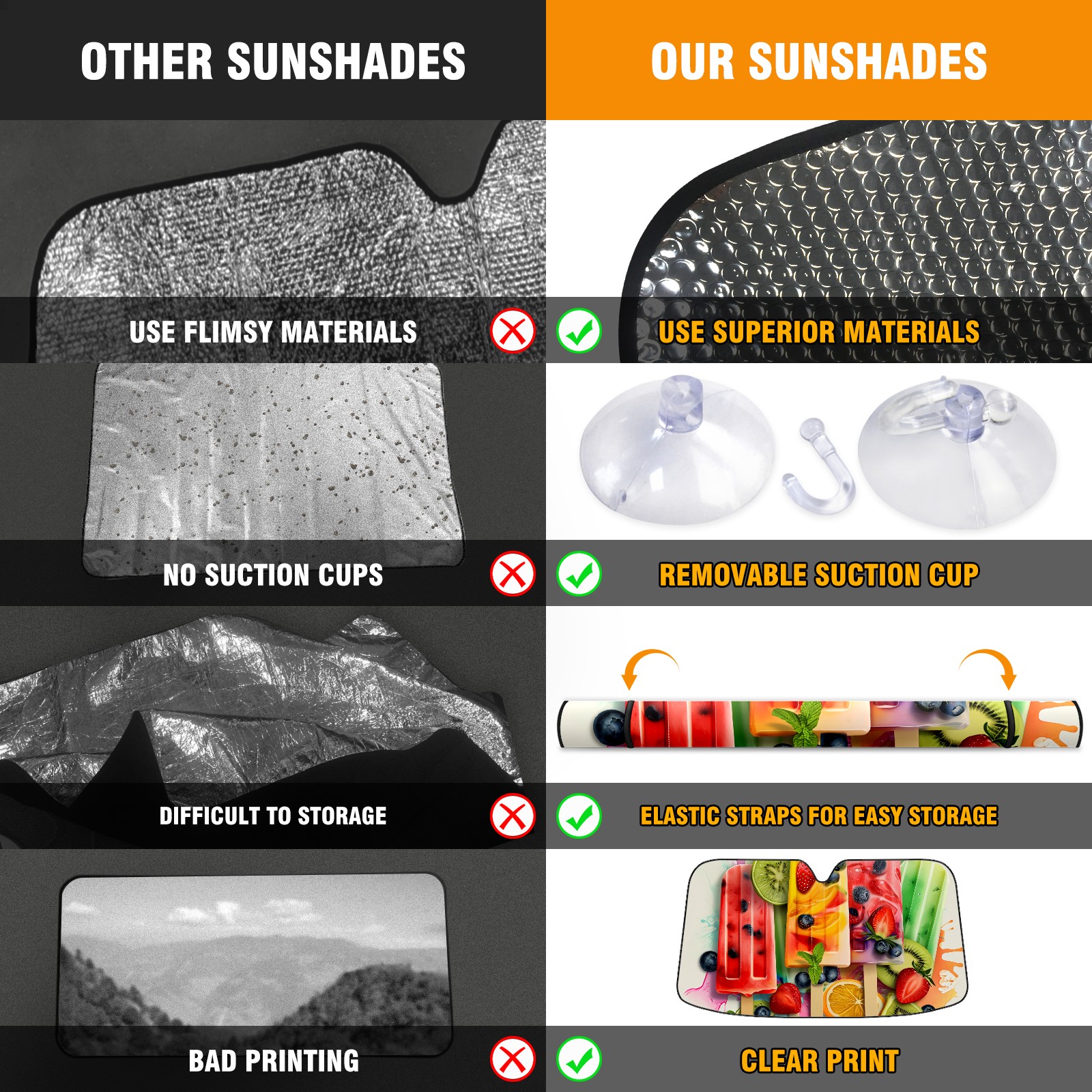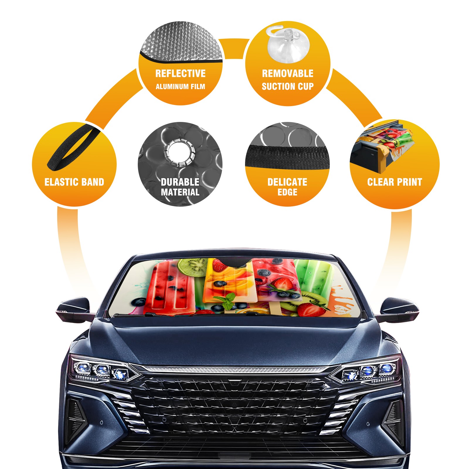 Car Windshield Sun Shade For Front Window Summer Fruit Popsicles Foldable Vehicle Windshield Car Sun Visor Covers Automotive Window Protector Car Camping Privacy Sun Blocker