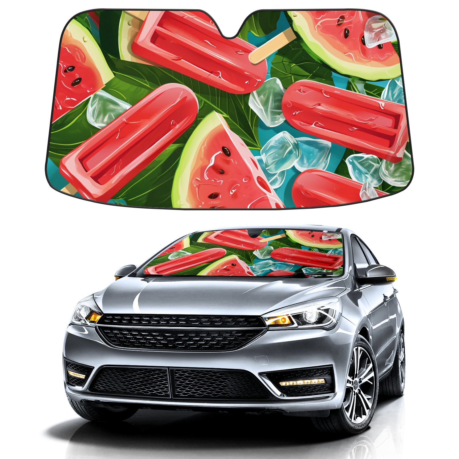 Car Windshield Sun Shade For Front Window Summer Red Popsicle Foldable Vehicle Windshield Car Sun Visor Covers Automotive Window Protector Car Camping Privacy Sun Blocker