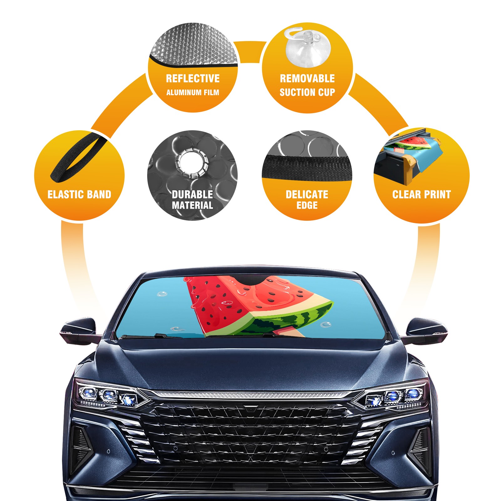 Diameter /Size 63"L x 33.5"W Made from excellent materials which makes it sturdy and protects the car from the sun. Easy to use and pack. Makes the interior of the car cooler.You can easily stash the sunshade in the storage bag or store long term.It open and closes easy. Also the leather storage bag is durable and easy to put the umbrella back into.This windshield sunshade provides complete coverage and keeps your car interior cool under direct sun. It is easy to open and position under the windshield and around the rear-view mirror. Makes Your Car Easy To Identify, Perfect For Finding Your Car In Crowded Parking Lots And Garages.Great Choice: It Is A Great Gift For Dad, Boyfriend, Brother, Brother And Uncle, Friends, Classmates, Family And So On. Notice: Due To Difference Computer Monitors, The Color Maybe Slightly Different From Picture. As Different Measurement Methods, Measurement Data Will Float Within 2%.I Hope You Understand. If You Have Any Question About The Item Please Do Not Hesitate To Contact Us Immediately And We Will Give You A Satisfactory Reply Within 24 Hours.