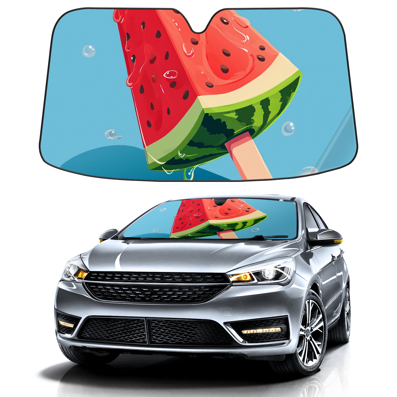Car Windshield Sun Shade For Front Window Summer Red Popsicles Foldable Vehicle Windshield Car Sun Visor Covers Automotive Window Protector Car Camping Privacy Sun Blocker