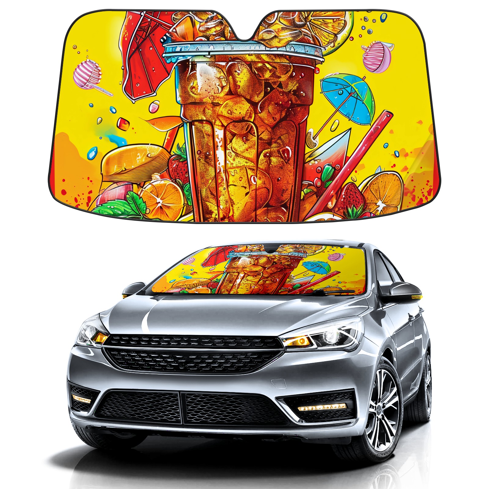 Car Windshield Sun Shade For Front Window Cold Summer Drinks Foldable Vehicle Windshield Car Sun Visor Covers Automotive Window Protector Car Camping Privacy Sun Blocker
