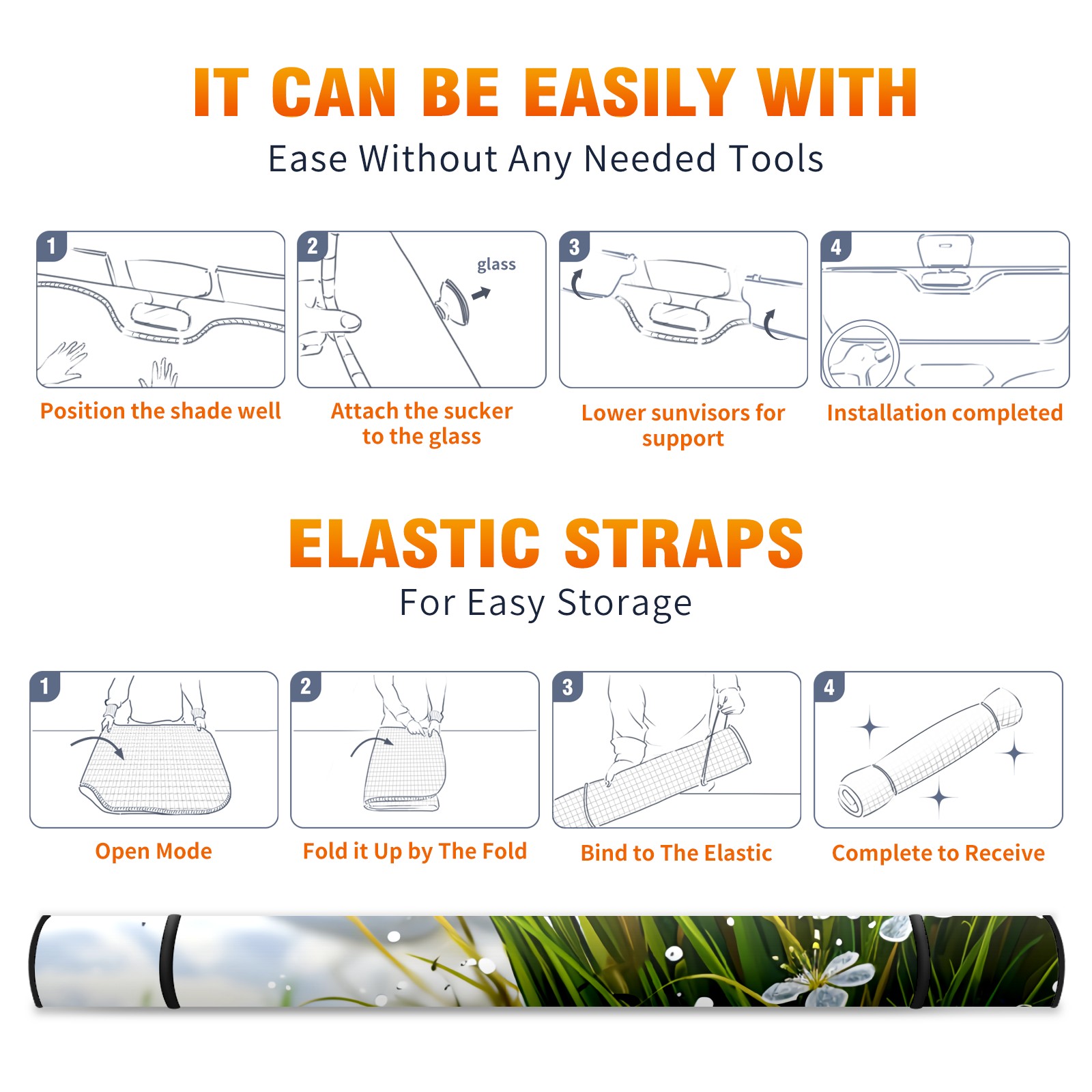 • Diameter /Size 63"L x 33.5"W Made from excellent materials which makes it sturdy and protects the car from the sun. Easy to use and pack. Makes the interior of the car cooler.You can easily stash the sunshade in the storage bag or store long term.It open and closes easy. Also the leather storage bag is durable and easy to put the umbrella back into.This windshield sunshade provides complete coverage and keeps your car interior cool under direct sun. It is easy to open and position under the windshield and around the rear-view mirror. Makes Your Car Easy To Identify, Perfect For Finding Your Car In Crowded Parking Lots And Garages.Great Choice: It Is A Great Gift For Dad, Boyfriend, Brother, Brother And Uncle, Friends, Classmates, Family And So On. Notice: Due To Difference Computer Monitors, The Color Maybe Slightly Different From Picture. As Different Measurement Methods, Measurement Data Will Float Within 2%.I Hope You Understand. If You Have Any Question About The Item Please Do Not Hesitate To Contact Us Immediately And We Will Give You A Satisfactory Reply Within 24 Hours.