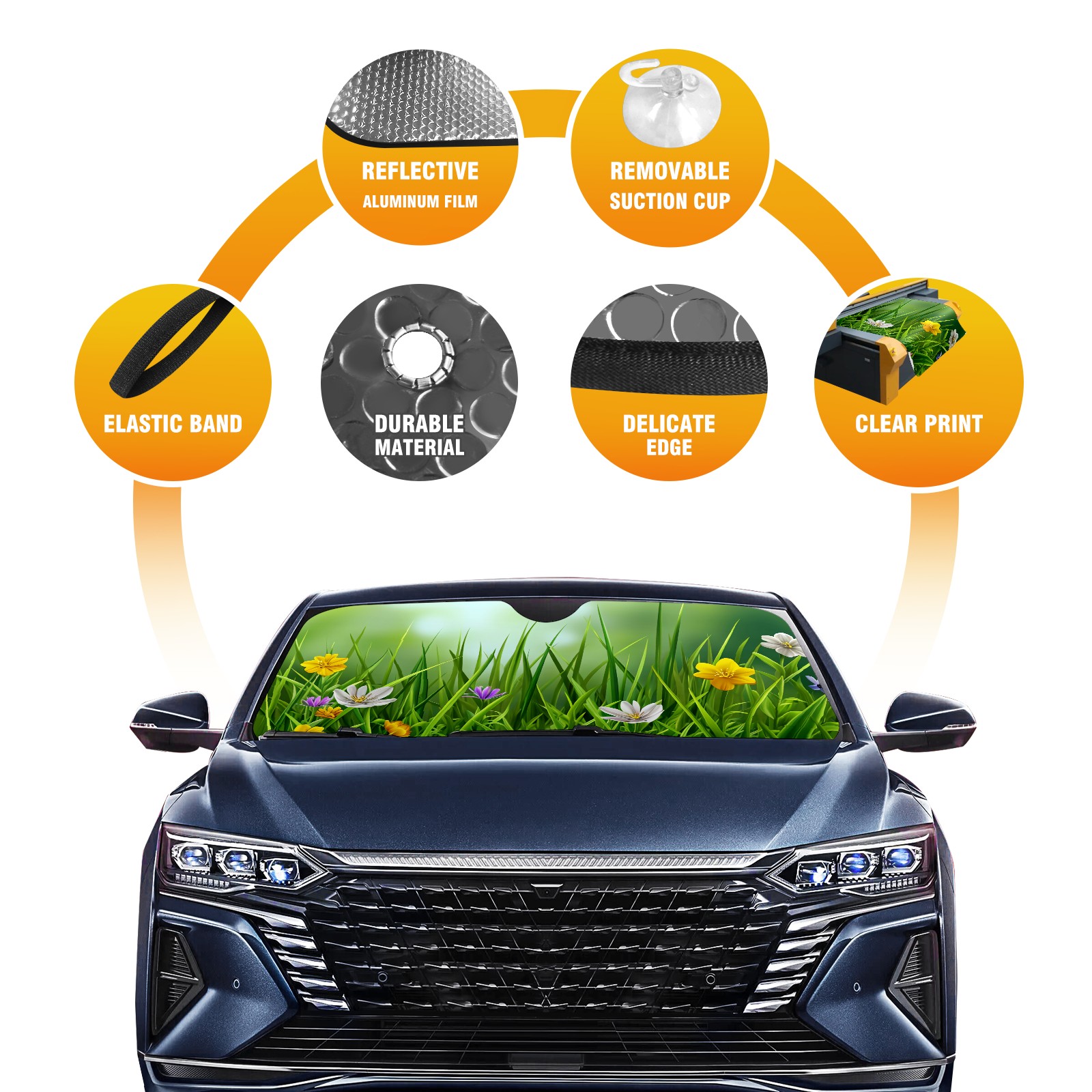 Car Windshield Sun Shade For Front Window Springtime Foldable Vehicle Windshield Car Sun Visor Covers Automotive Window Protector Car Camping Privacy Sun Blocker