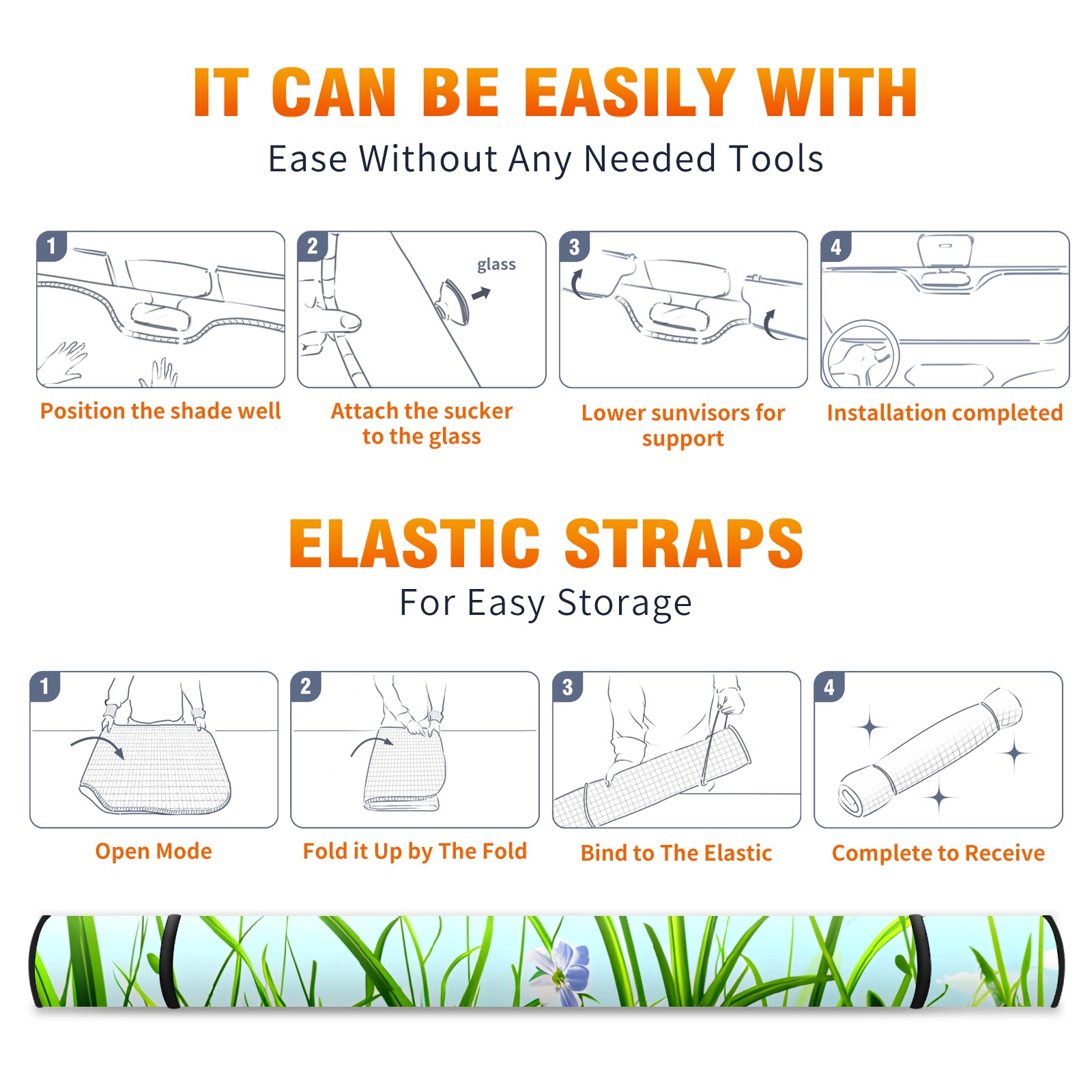 • Diameter /Size 63"L x 33.5"W Made from excellent materials which makes it sturdy and protects the car from the sun. Easy to use and pack. Makes the interior of the car cooler.You can easily stash the sunshade in the storage bag or store long term.It open and closes easy. Also the leather storage bag is durable and easy to put the umbrella back into.This windshield sunshade provides complete coverage and keeps your car interior cool under direct sun. It is easy to open and position under the windshield and around the rear-view mirror. Makes Your Car Easy To Identify, Perfect For Finding Your Car In Crowded Parking Lots And Garages.Great Choice: It Is A Great Gift For Dad, Boyfriend, Brother, Brother And Uncle, Friends, Classmates, Family And So On. Notice: Due To Difference Computer Monitors, The Color Maybe Slightly Different From Picture. As Different Measurement Methods, Measurement Data Will Float Within 2%.I Hope You Understand. If You Have Any Question About The Item Please Do Not Hesitate To Contact Us Immediately And We Will Give You A Satisfactory Reply Within 24 Hours.