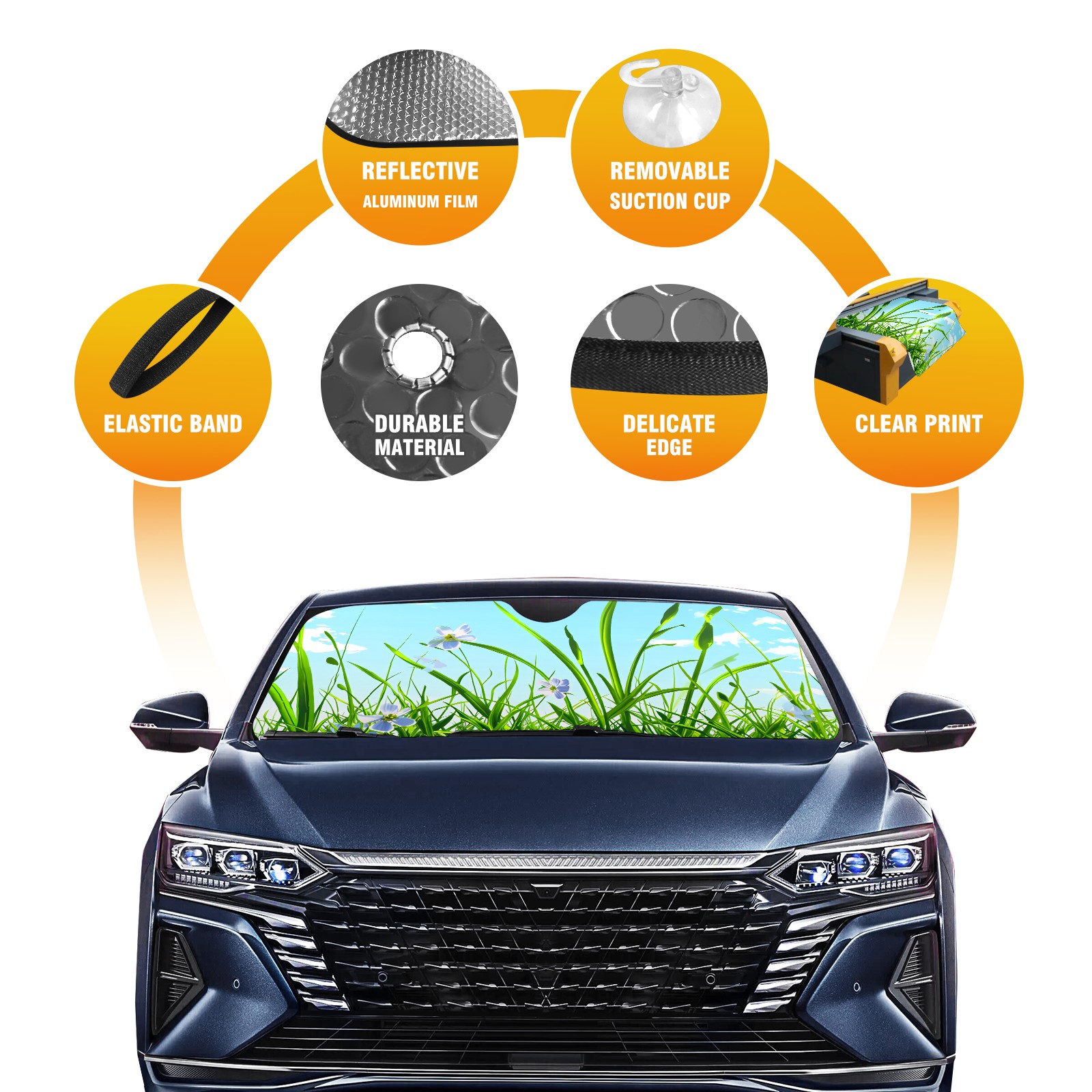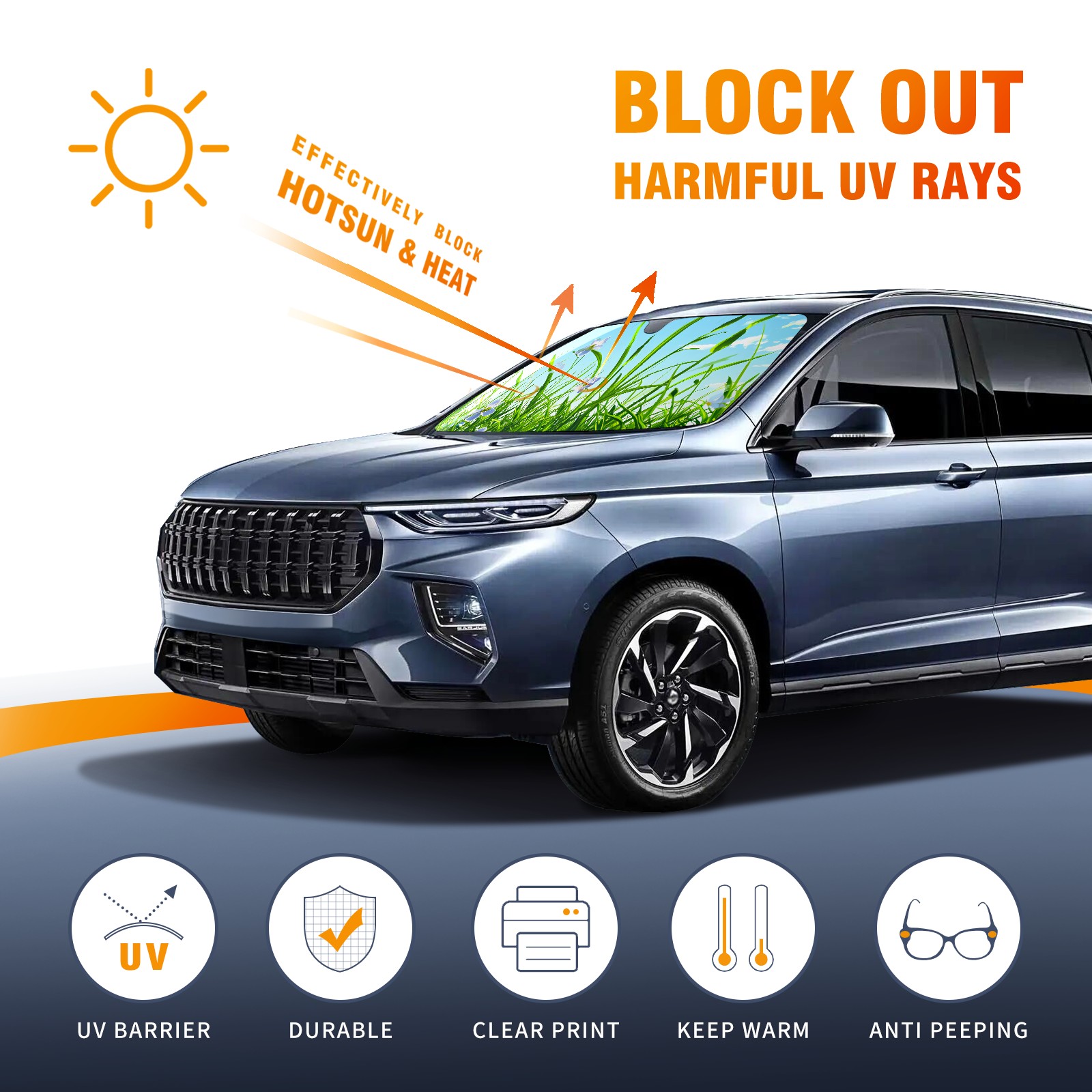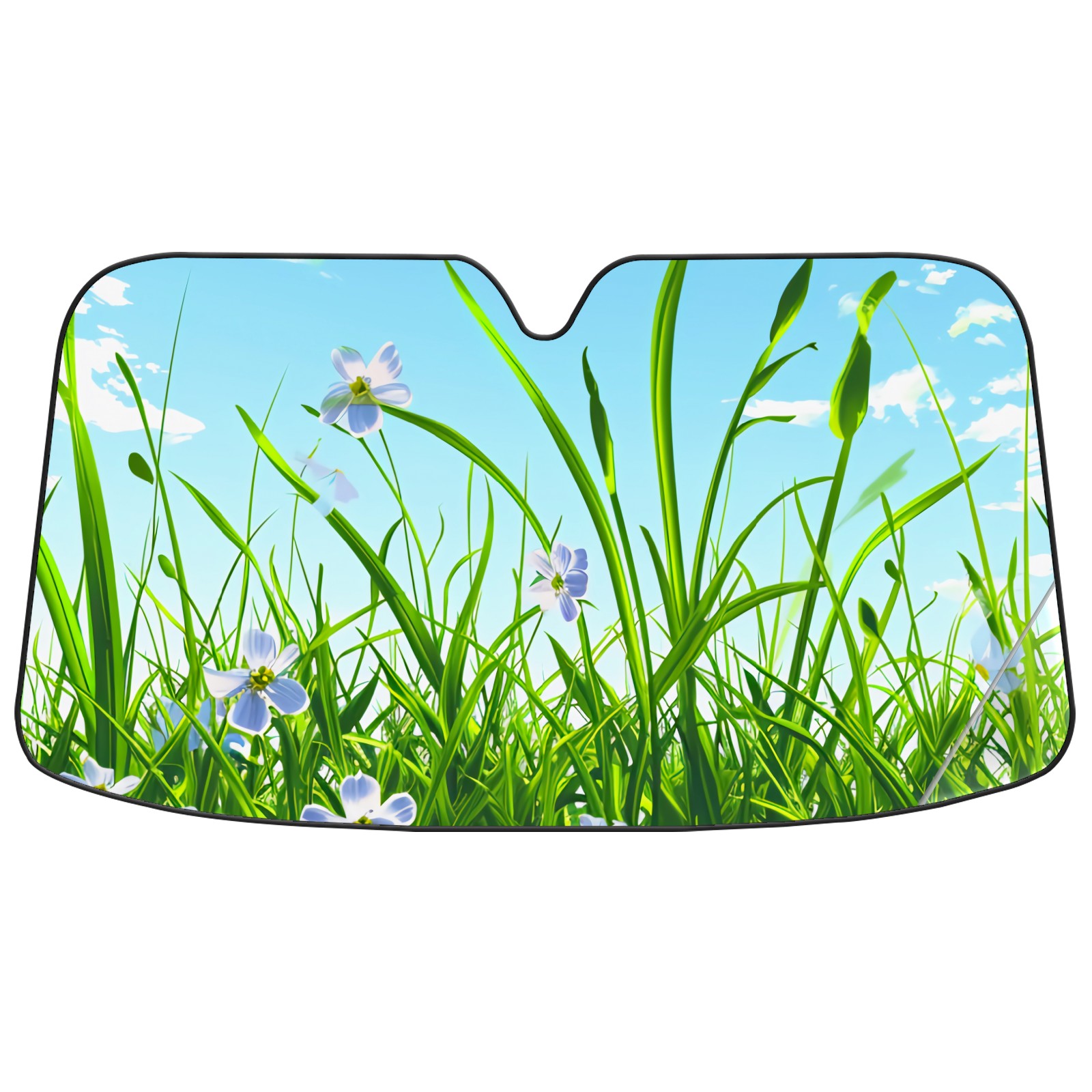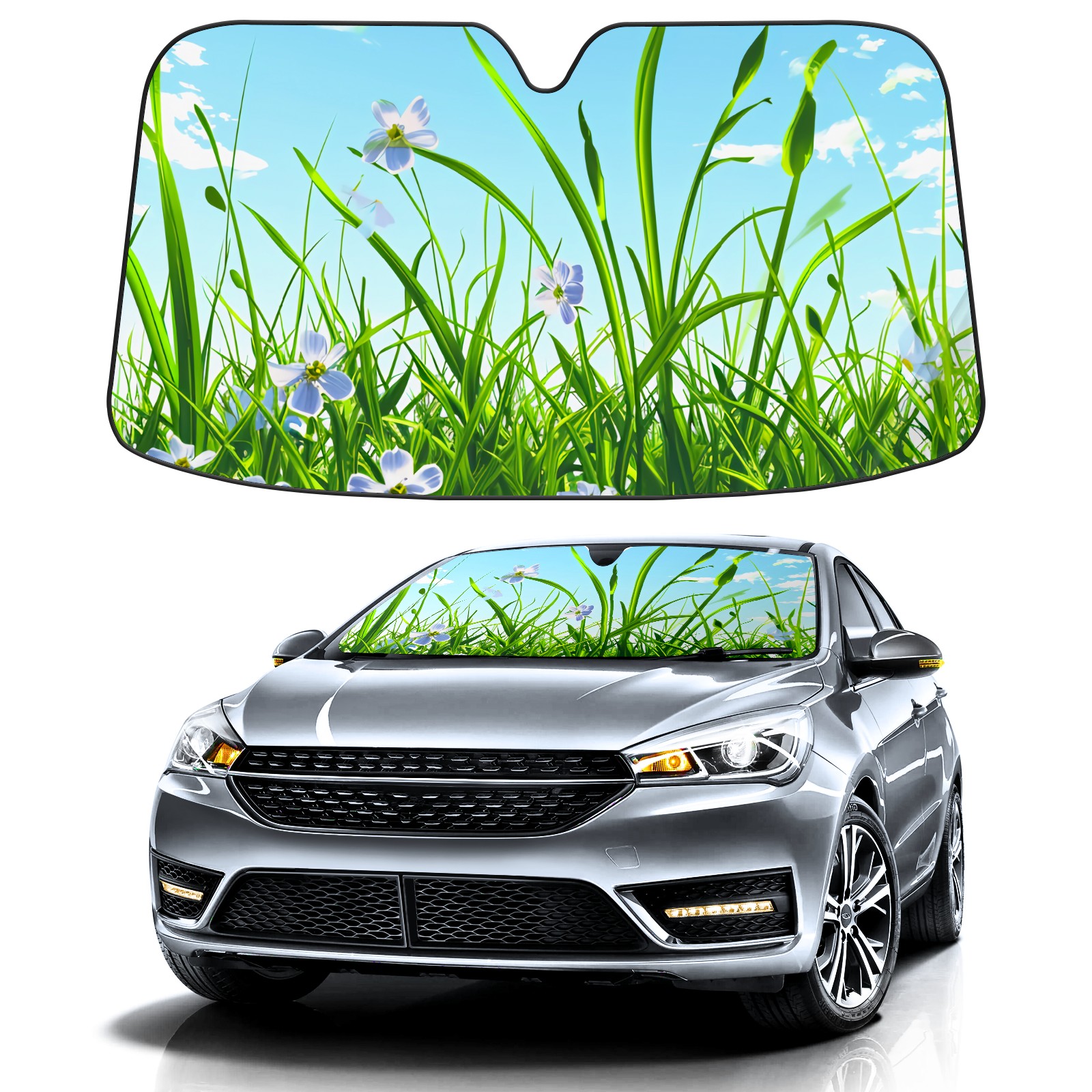 Car Windshield Sun Shade For Front Window Green In Spring Foldable Vehicle Windshield Car Sun Visor Covers Automotive Window Protector Car Camping Privacy Sun Blocker