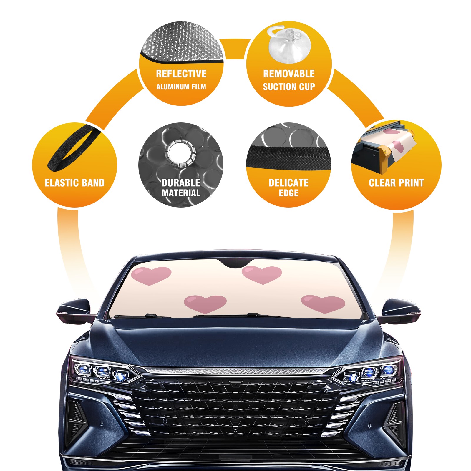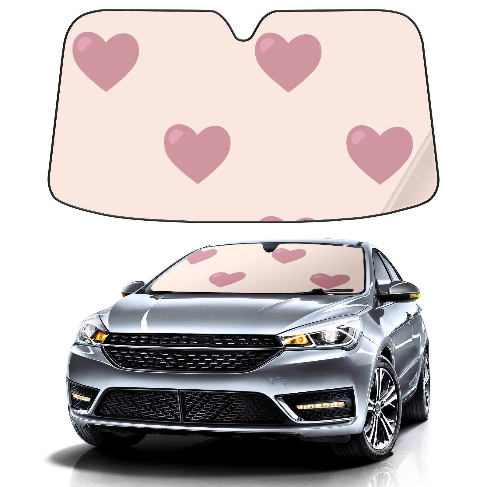 Car Windshield Sun Shade For Front Window Love Foldable Vehicle Windshield Car Sun Visor Covers Automotive Window Protector Car Camping Privacy Sun Blocker