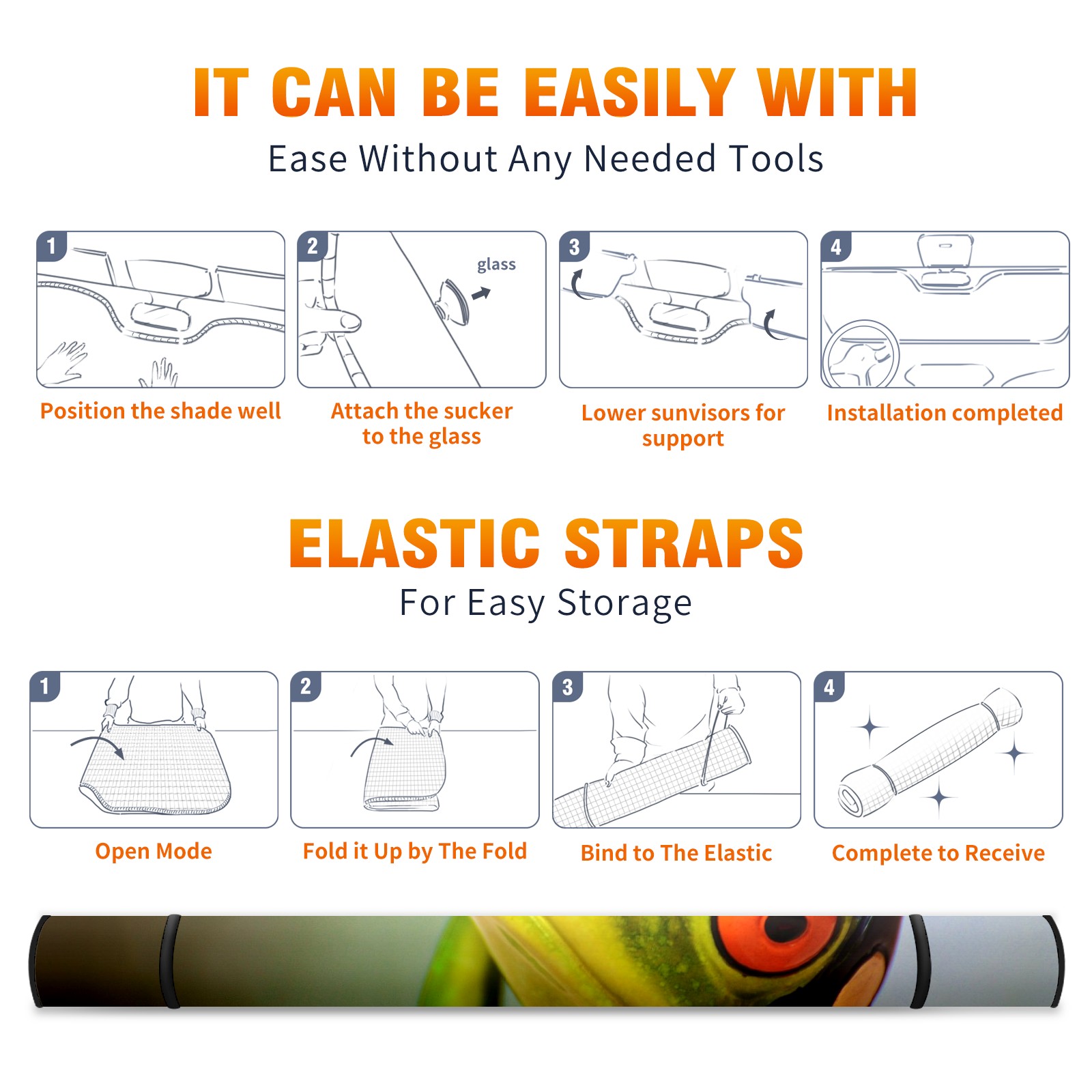 • Diameter /Size 63"L x 33.5"W Made from excellent materials which makes it sturdy and protects the car from the sun. Easy to use and pack. Makes the interior of the car cooler.You can easily stash the sunshade in the storage bag or store long term.It open and closes easy. Also the leather storage bag is durable and easy to put the umbrella back into.This windshield sunshade provides complete coverage and keeps your car interior cool under direct sun. It is easy to open and position under the windshield and around the rear-view mirror. Makes Your Car Easy To Identify, Perfect For Finding Your Car In Crowded Parking Lots And Garages.Great Choice: It Is A Great Gift For Dad, Boyfriend, Brother, Brother And Uncle, Friends, Classmates, Family And So On. Notice: Due To Difference Computer Monitors, The Color Maybe Slightly Different From Picture. As Different Measurement Methods, Measurement Data Will Float Within 2%.I Hope You Understand. If You Have Any Question About The Item Please Do Not Hesitate To Contact Us Immediately And We Will Give You A Satisfactory Reply Within 24 Hours.