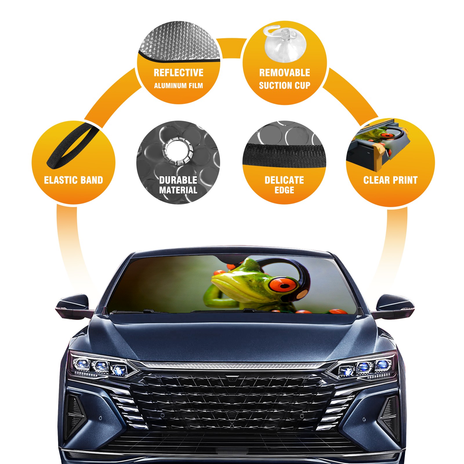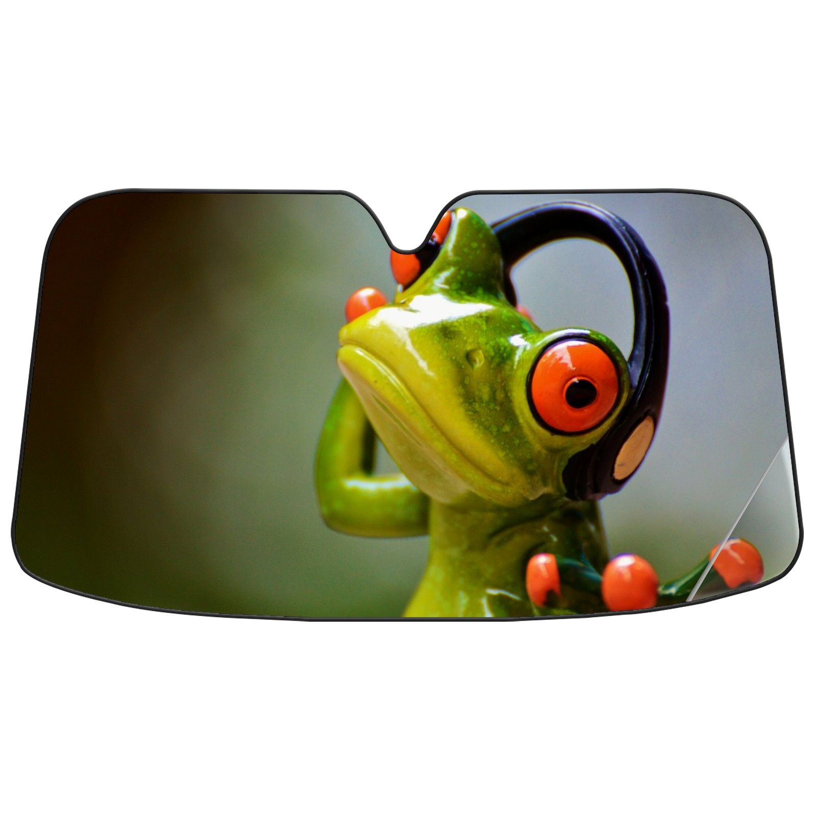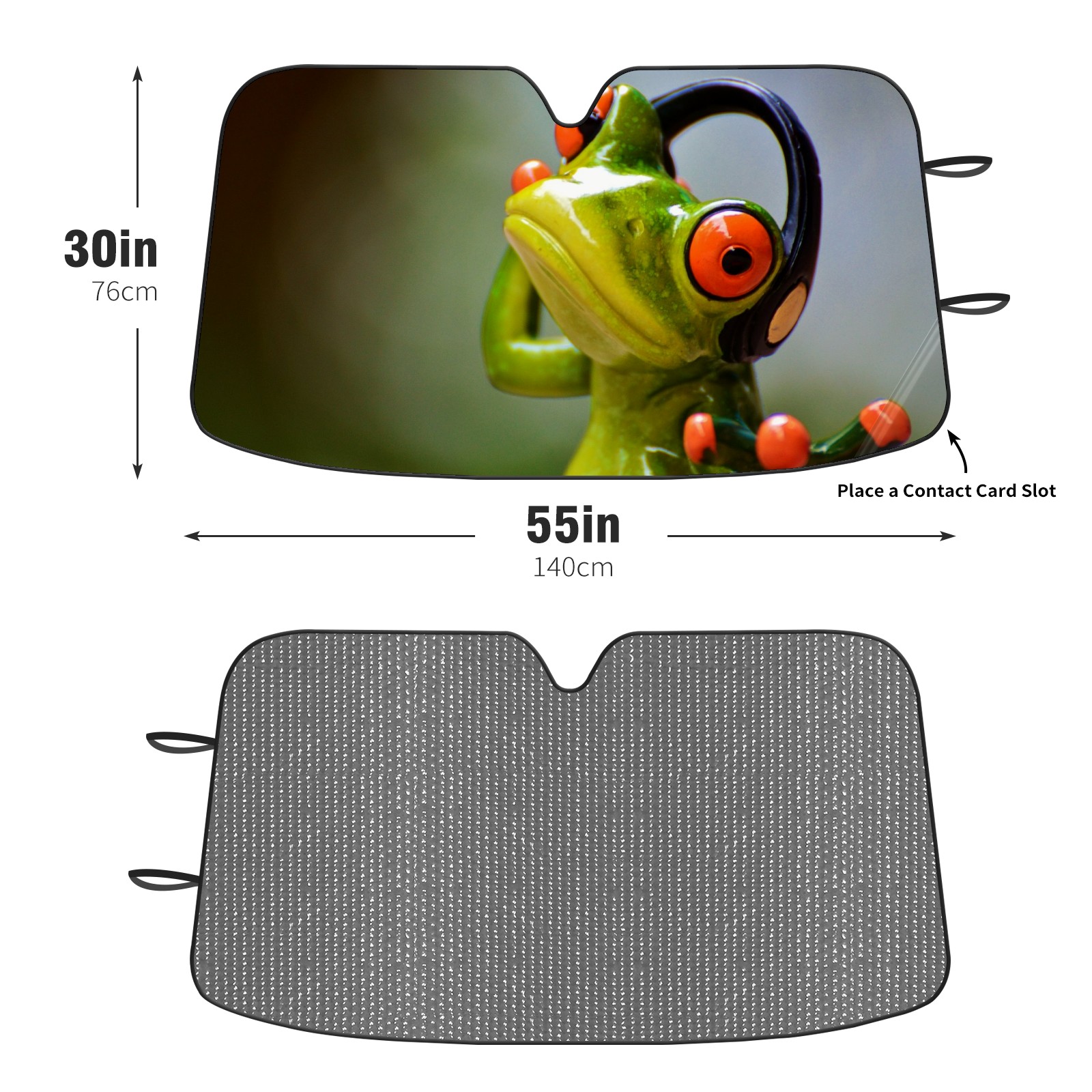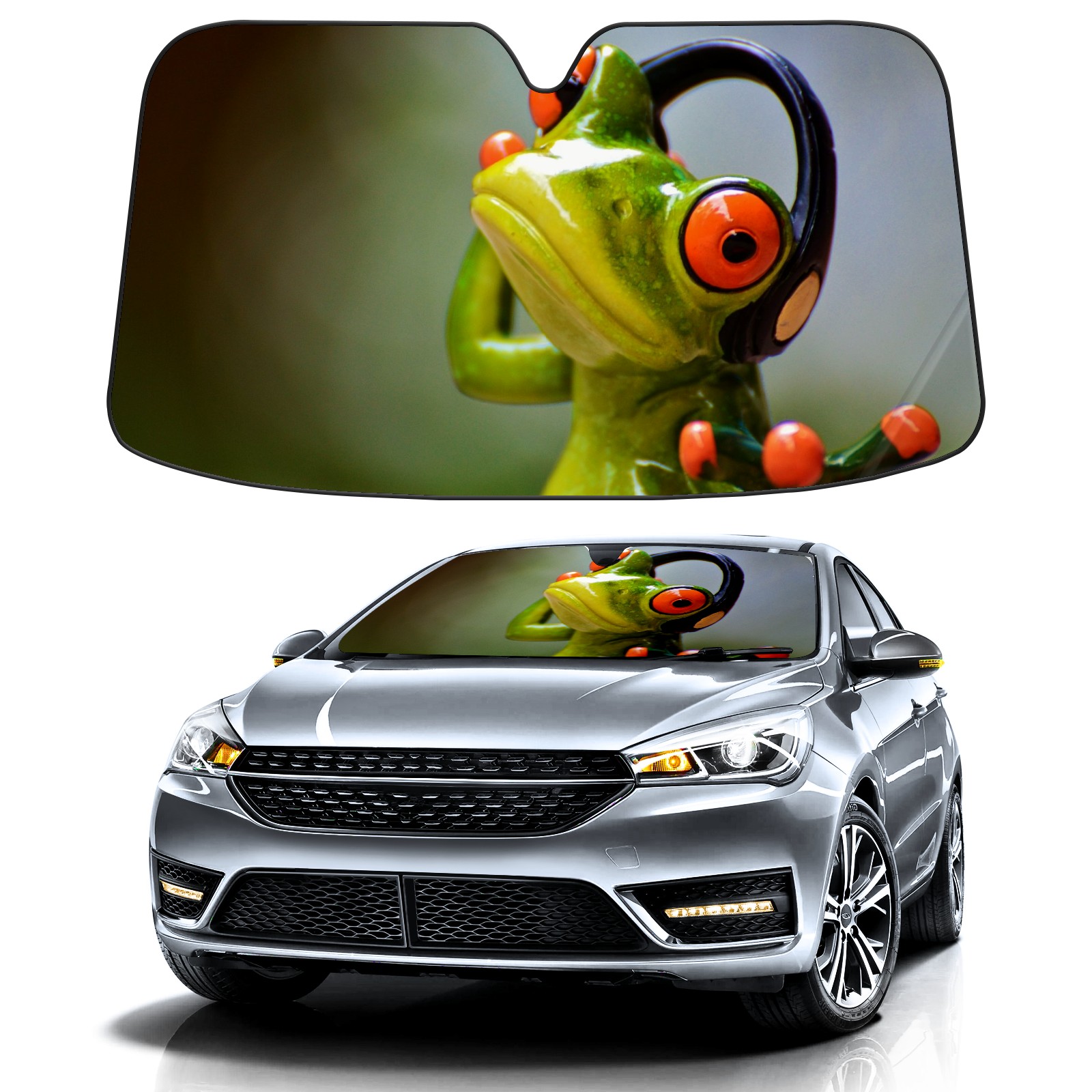 Car Windshield Sun Shade For Front Window Frog Headphones Music Foldable Vehicle Windshield Car Sun Visor Covers Automotive Window Protector Car Camping Privacy Sun Blocker