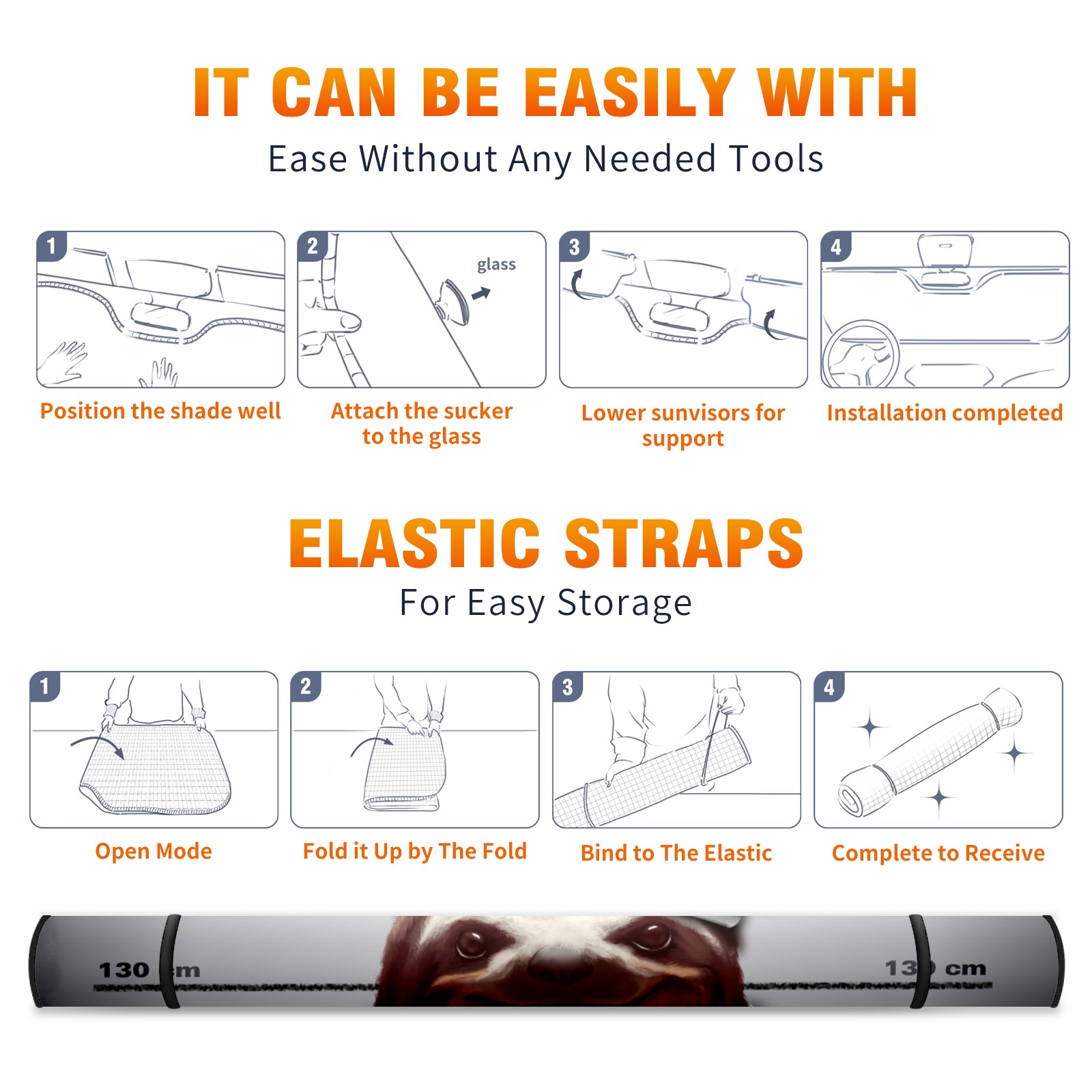 • Diameter /Size 63"L x 33.5"W Made from excellent materials which makes it sturdy and protects the car from the sun. Easy to use and pack. Makes the interior of the car cooler.You can easily stash the sunshade in the storage bag or store long term.It open and closes easy. Also the leather storage bag is durable and easy to put the umbrella back into.This windshield sunshade provides complete coverage and keeps your car interior cool under direct sun. It is easy to open and position under the windshield and around the rear-view mirror. Makes Your Car Easy To Identify, Perfect For Finding Your Car In Crowded Parking Lots And Garages.Great Choice: It Is A Great Gift For Dad, Boyfriend, Brother, Brother And Uncle, Friends, Classmates, Family And So On. Notice: Due To Difference Computer Monitors, The Color Maybe Slightly Different From Picture. As Different Measurement Methods, Measurement Data Will Float Within 2%.I Hope You Understand. If You Have Any Question About The Item Please Do Not Hesitate To Contact Us Immediately And We Will Give You A Satisfactory Reply Within 24 Hours.