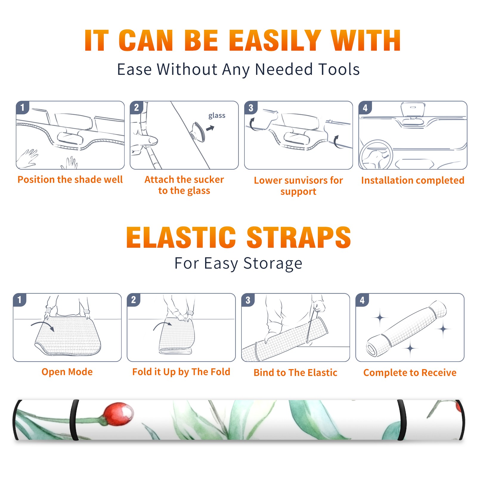 • Diameter /Size 63"L x 33.5"W Made from excellent materials which makes it sturdy and protects the car from the sun. Easy to use and pack. Makes the interior of the car cooler.You can easily stash the sunshade in the storage bag or store long term.It open and closes easy. Also the leather storage bag is durable and easy to put the umbrella back into.This windshield sunshade provides complete coverage and keeps your car interior cool under direct sun. It is easy to open and position under the windshield and around the rear-view mirror. Makes Your Car Easy To Identify, Perfect For Finding Your Car In Crowded Parking Lots And Garages.Great Choice: It Is A Great Gift For Dad, Boyfriend, Brother, Brother And Uncle, Friends, Classmates, Family And So On. Notice: Due To Difference Computer Monitors, The Color Maybe Slightly Different From Picture. As Different Measurement Methods, Measurement Data Will Float Within 2%.I Hope You Understand. If You Have Any Question About The Item Please Do Not Hesitate To Contact Us Immediately And We Will Give You A Satisfactory Reply Within 24 Hours.