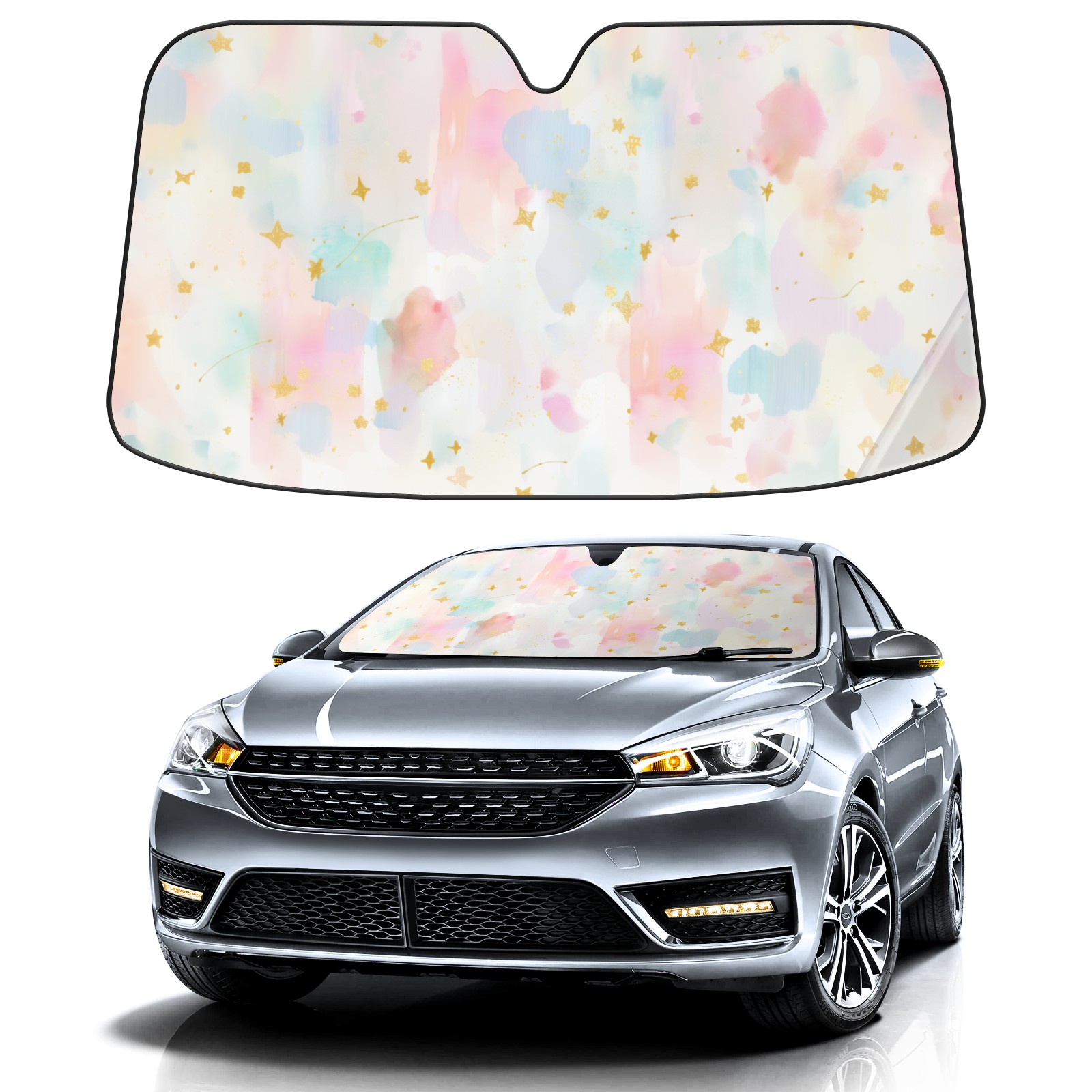 Car Windshield Sun Shade For Front Window Watercolours And Stars Foldable Vehicle Windshield Car Sun Visor Covers Automotive Window Protector Car Camping Privacy Sun Blocker