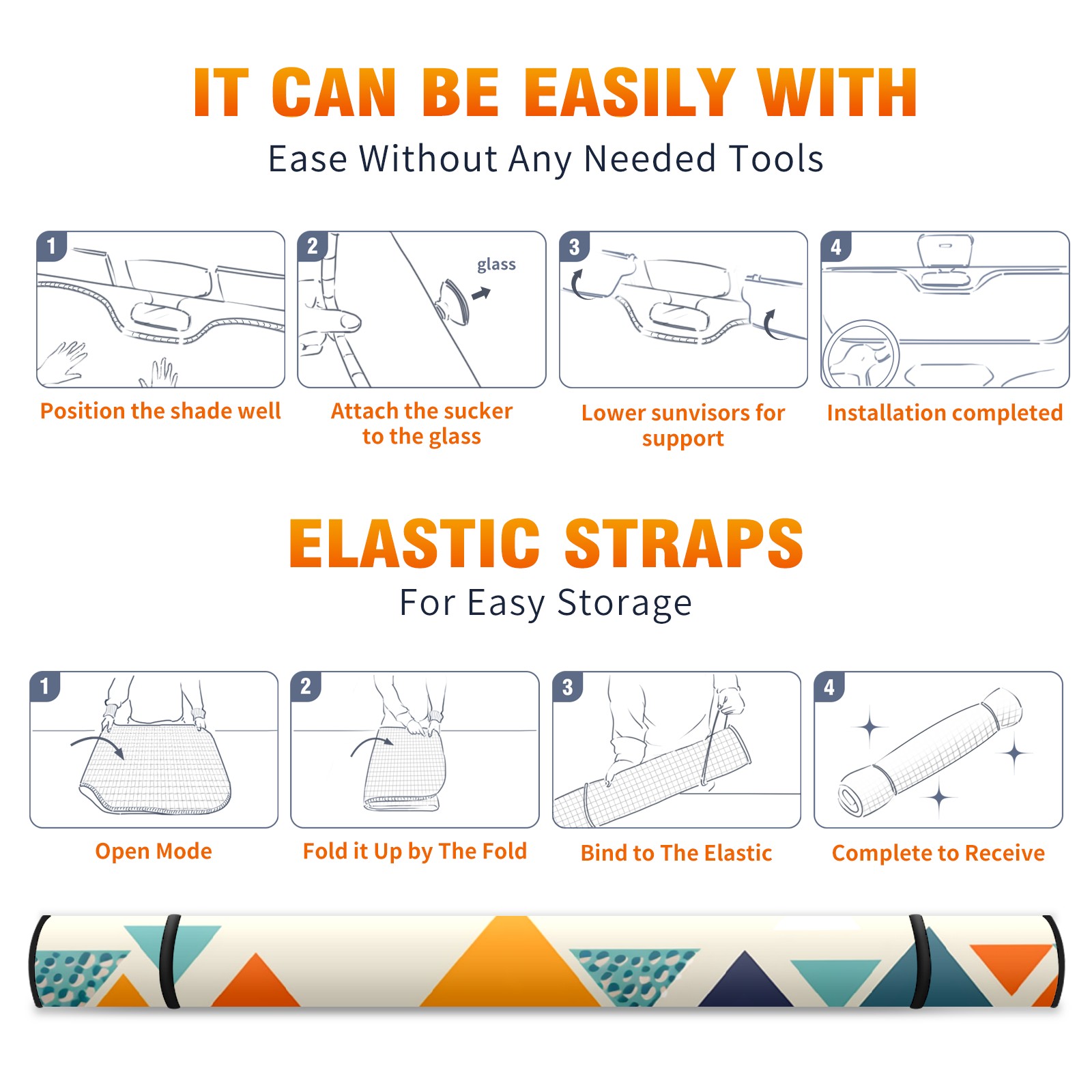 • Diameter /Size 63"L x 33.5"W Made from excellent materials which makes it sturdy and protects the car from the sun. Easy to use and pack. Makes the interior of the car cooler.You can easily stash the sunshade in the storage bag or store long term.It open and closes easy. Also the leather storage bag is durable and easy to put the umbrella back into.This windshield sunshade provides complete coverage and keeps your car interior cool under direct sun. It is easy to open and position under the windshield and around the rear-view mirror. Makes Your Car Easy To Identify, Perfect For Finding Your Car In Crowded Parking Lots And Garages.Great Choice: It Is A Great Gift For Dad, Boyfriend, Brother, Brother And Uncle, Friends, Classmates, Family And So On. Notice: Due To Difference Computer Monitors, The Color Maybe Slightly Different From Picture. As Different Measurement Methods, Measurement Data Will Float Within 2%.I Hope You Understand. If You Have Any Question About The Item Please Do Not Hesitate To Contact Us Immediately And We Will Give You A Satisfactory Reply Within 24 Hours.