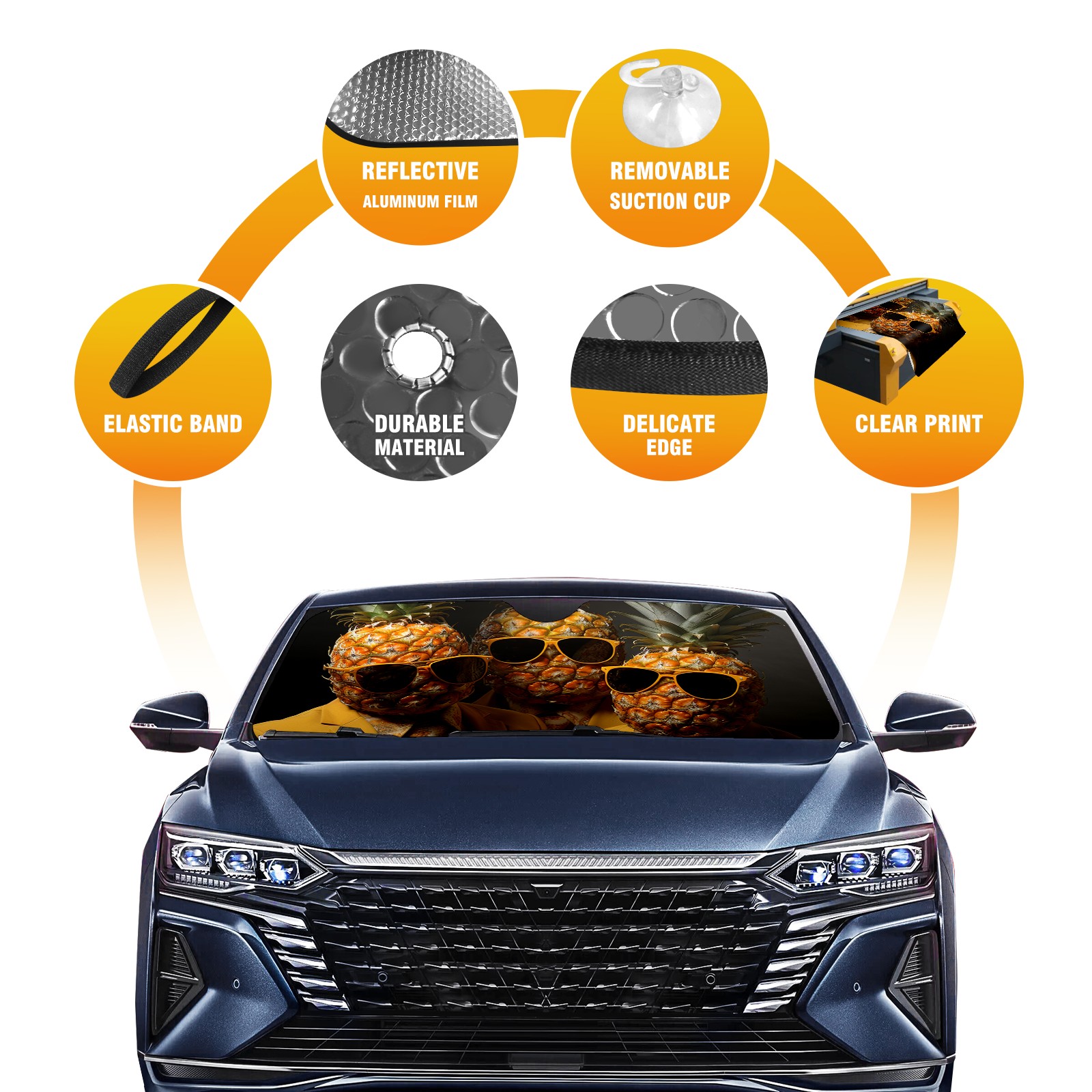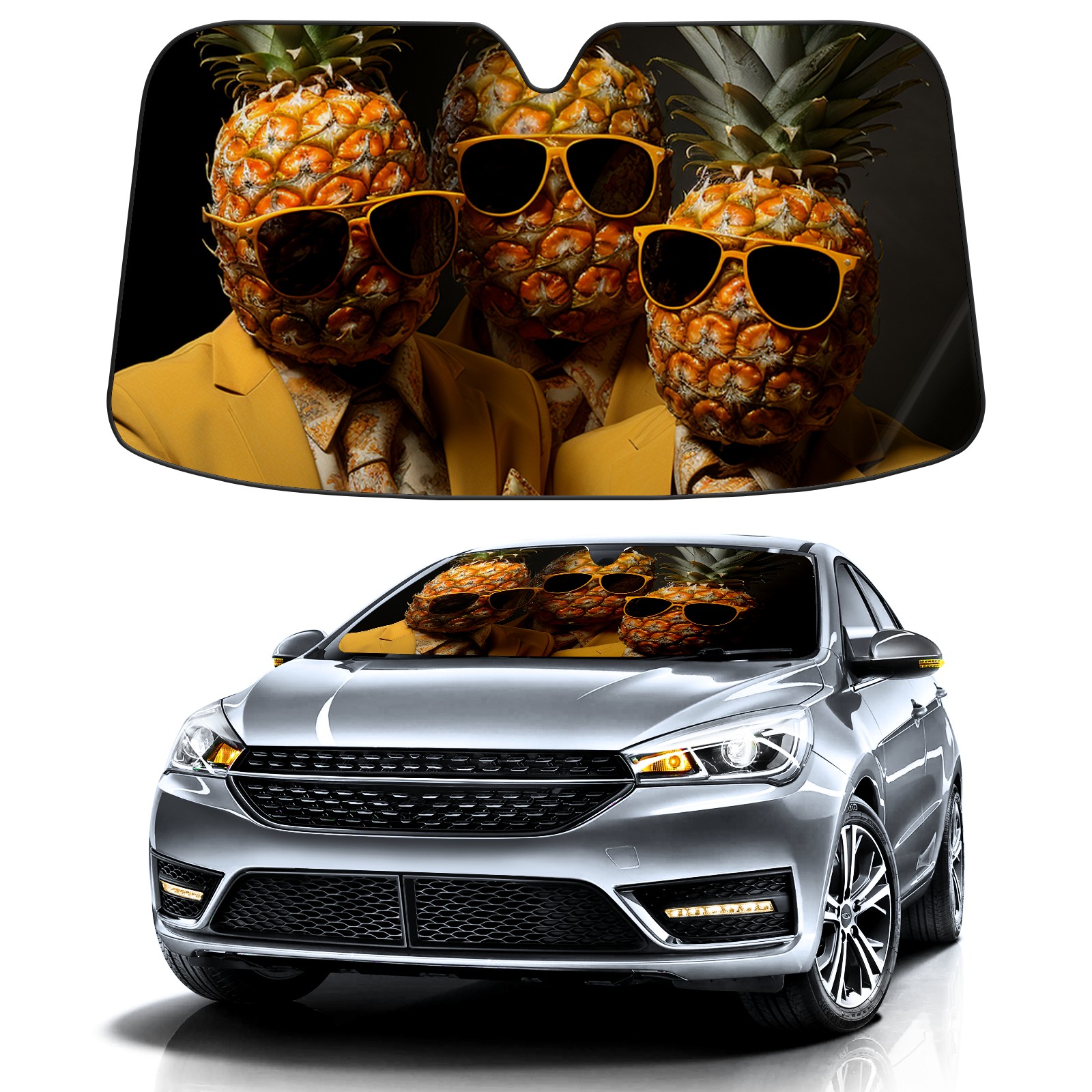Car Windshield Sun Shade For Front Window Pineapple Foldable Vehicle Windshield Car Sun Visor Covers Automotive Window Protector Car Camping Privacy Sun Blocker