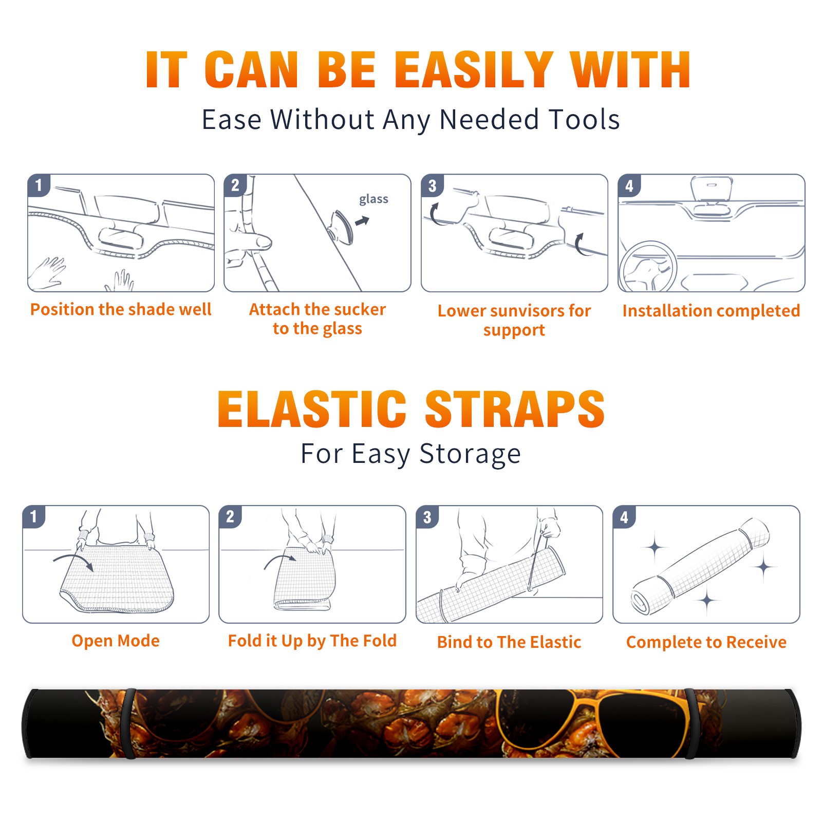 • Diameter /Size 63"L x 33.5"W Made from excellent materials which makes it sturdy and protects the car from the sun. Easy to use and pack. Makes the interior of the car cooler.You can easily stash the sunshade in the storage bag or store long term.It open and closes easy. Also the leather storage bag is durable and easy to put the umbrella back into.This windshield sunshade provides complete coverage and keeps your car interior cool under direct sun. It is easy to open and position under the windshield and around the rear-view mirror. Makes Your Car Easy To Identify, Perfect For Finding Your Car In Crowded Parking Lots And Garages.Great Choice: It Is A Great Gift For Dad, Boyfriend, Brother, Brother And Uncle, Friends, Classmates, Family And So On. Notice: Due To Difference Computer Monitors, The Color Maybe Slightly Different From Picture. As Different Measurement Methods, Measurement Data Will Float Within 2%.I Hope You Understand. If You Have Any Question About The Item Please Do Not Hesitate To Contact Us Immediately And We Will Give You A Satisfactory Reply Within 24 Hours.